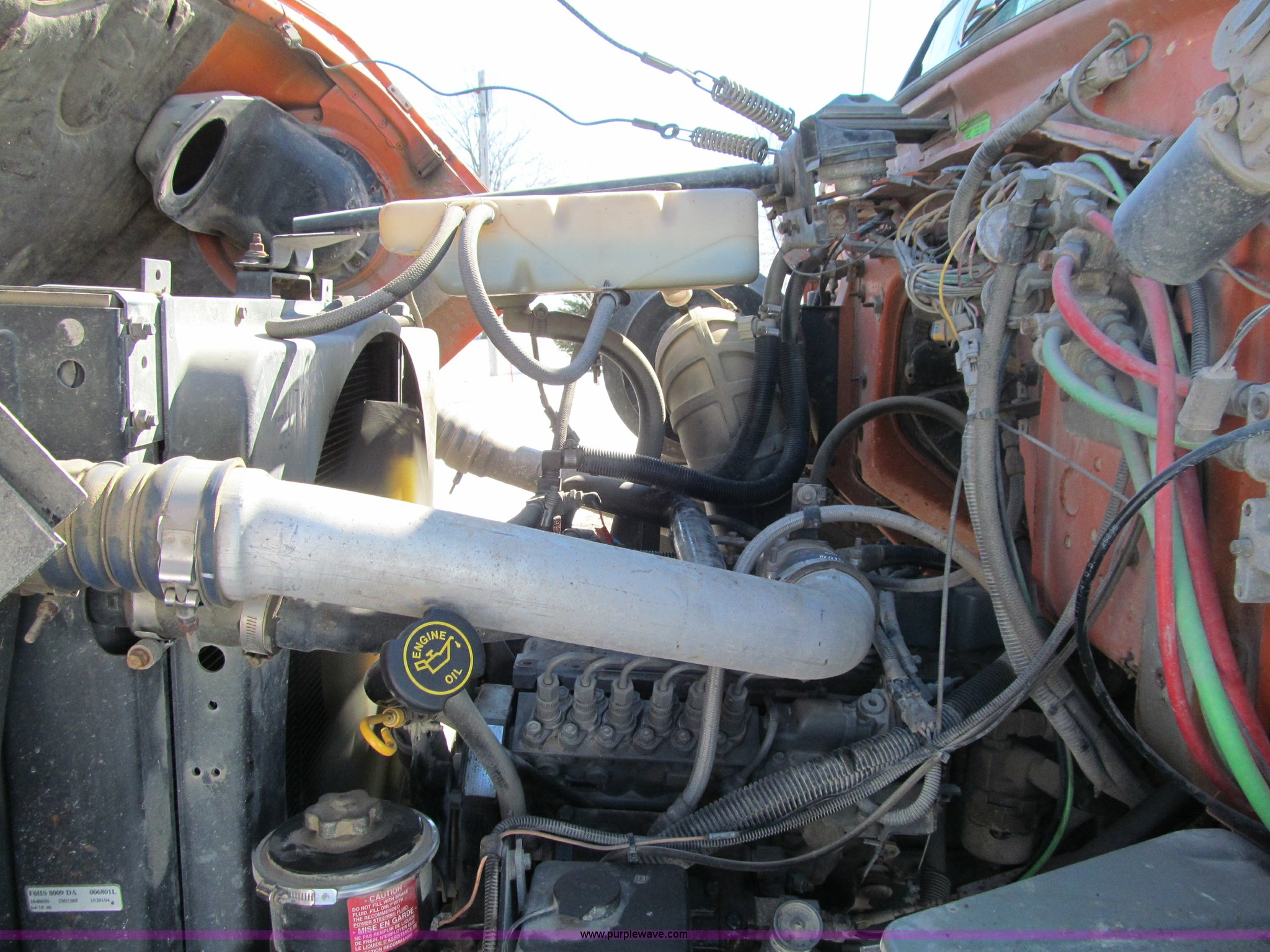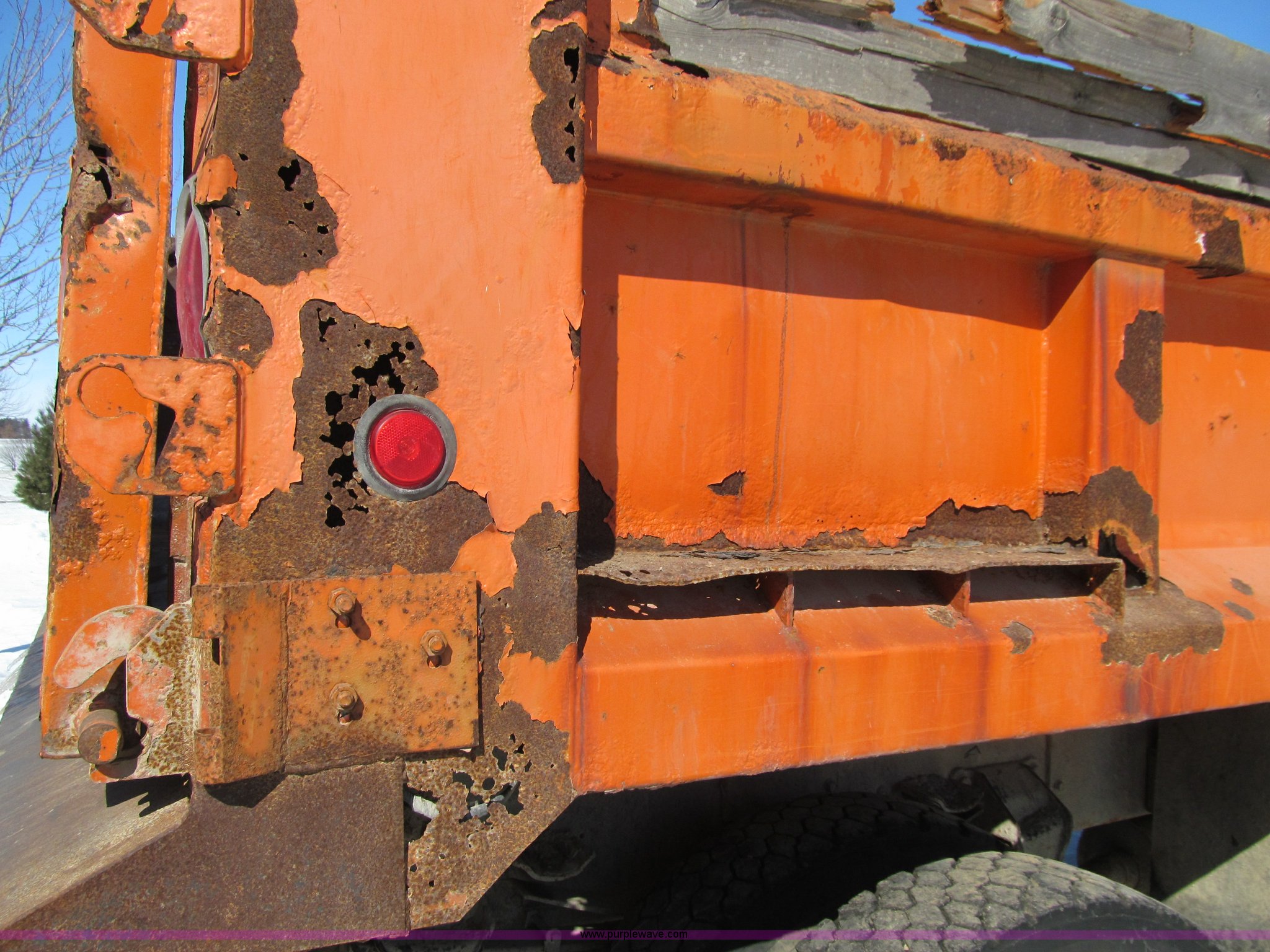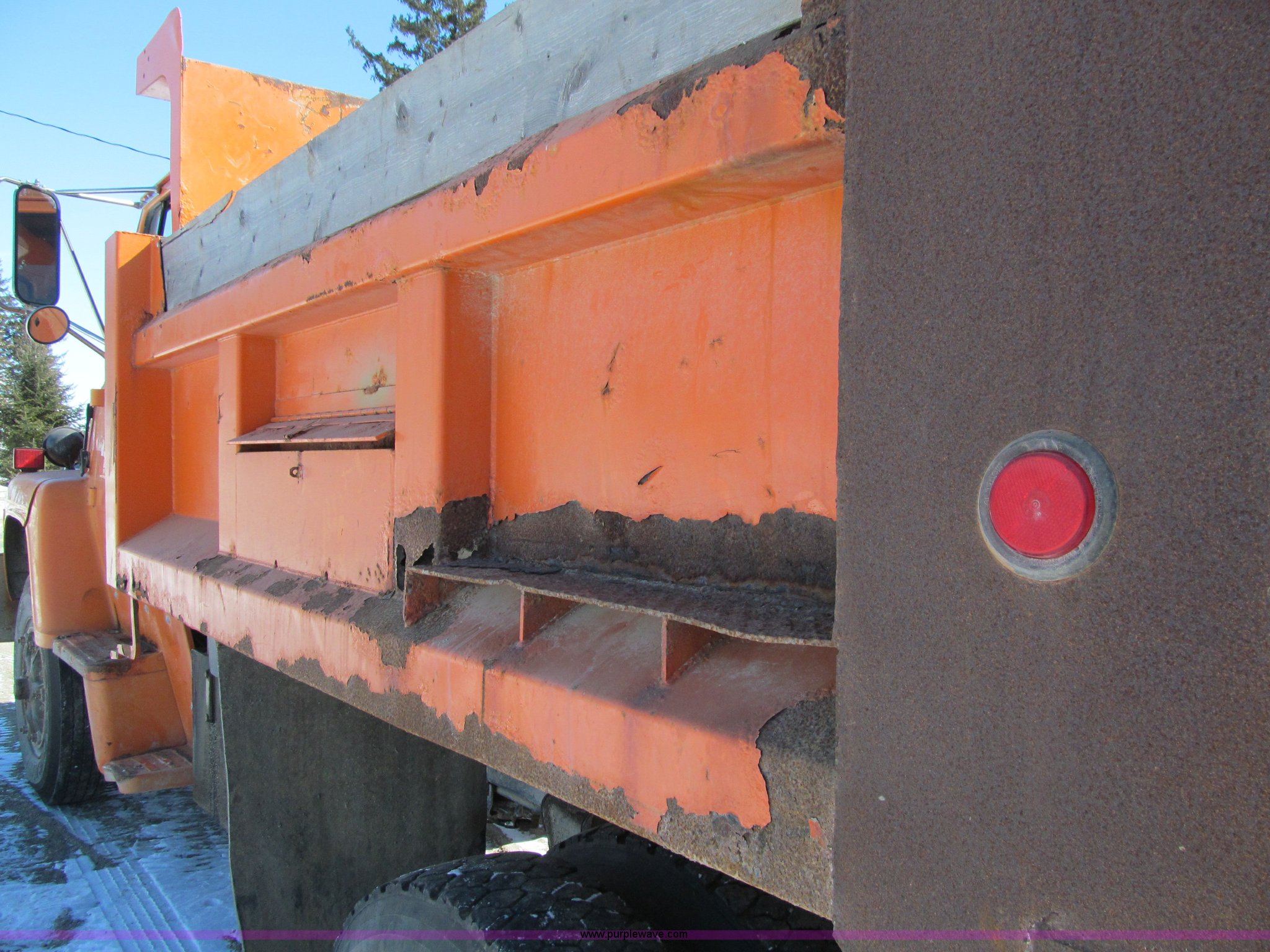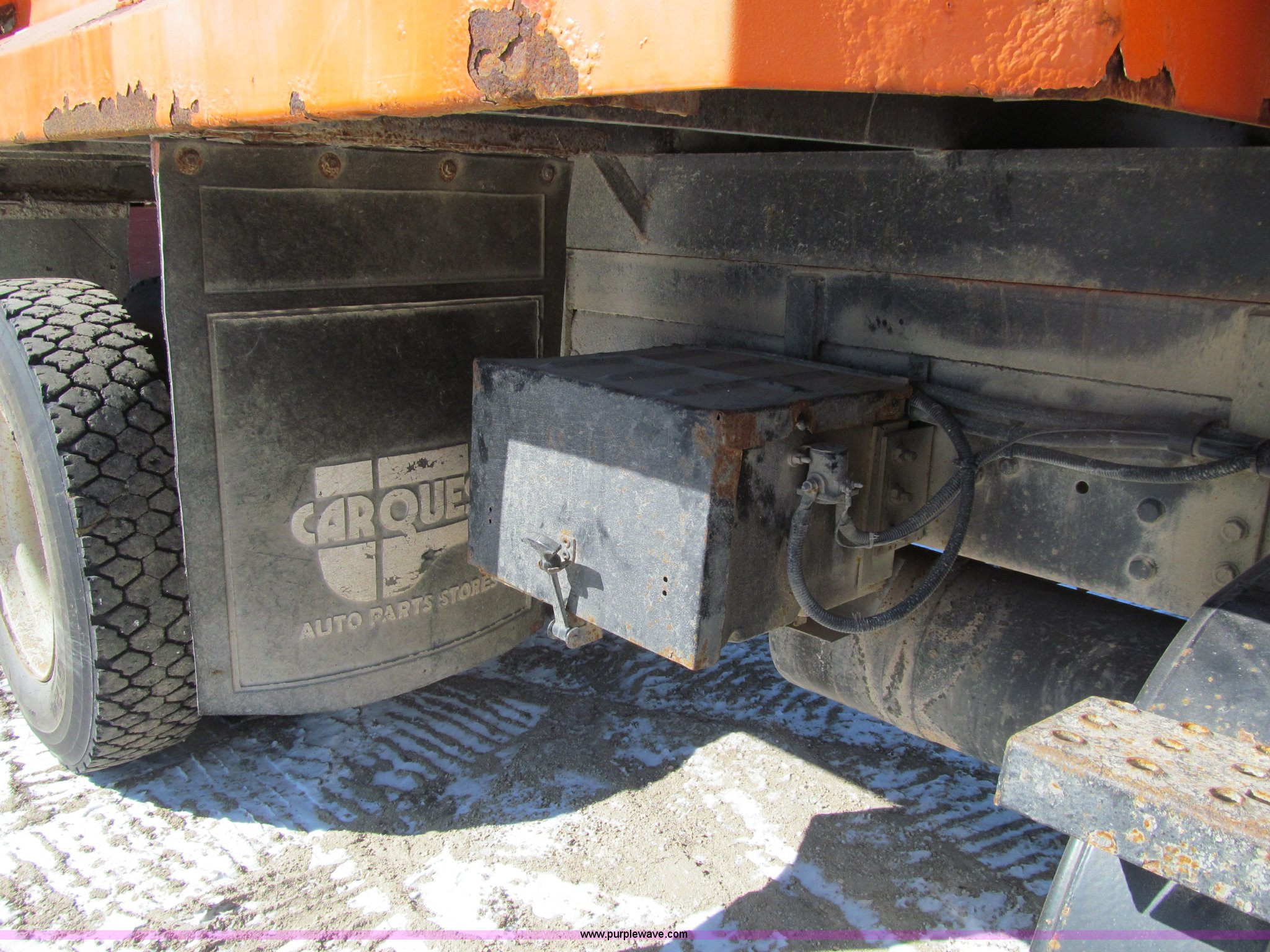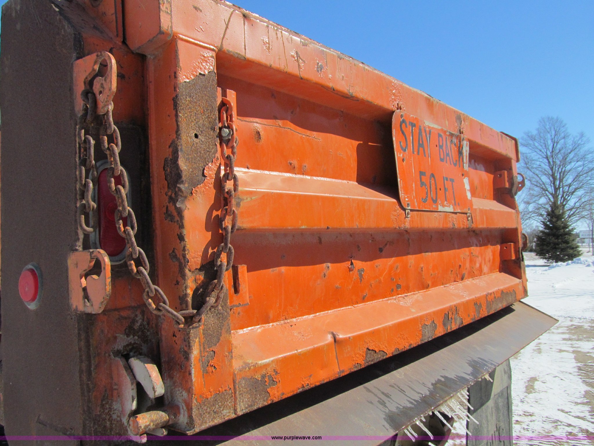 Purple Wave is selling a used Construction Dump Truck in Iowa. This item is a 1997 Ford N7000 dump truck with the following: 41,219 miles on odometer, 3,436 hours on meter, Cummins 5.9L L6 diesel engine, Five speed manual transmission, Hi-Lo axle, Heat, AM/FM, Air suspension seat, In-cab hydraulic controls for attachments, 10' box, Single ram, Wavy floor, Rust/corrosion, Chrome bumper, Block heater, Trailer wiring, Pintle hitch, Front mount PTO, Spring suspension, Air brakes, Air and hydraulic lines to rear of frame, 152" wheelbase, 10R22.5 tires, GVWR 28,500 lbs, Cab contents not included
