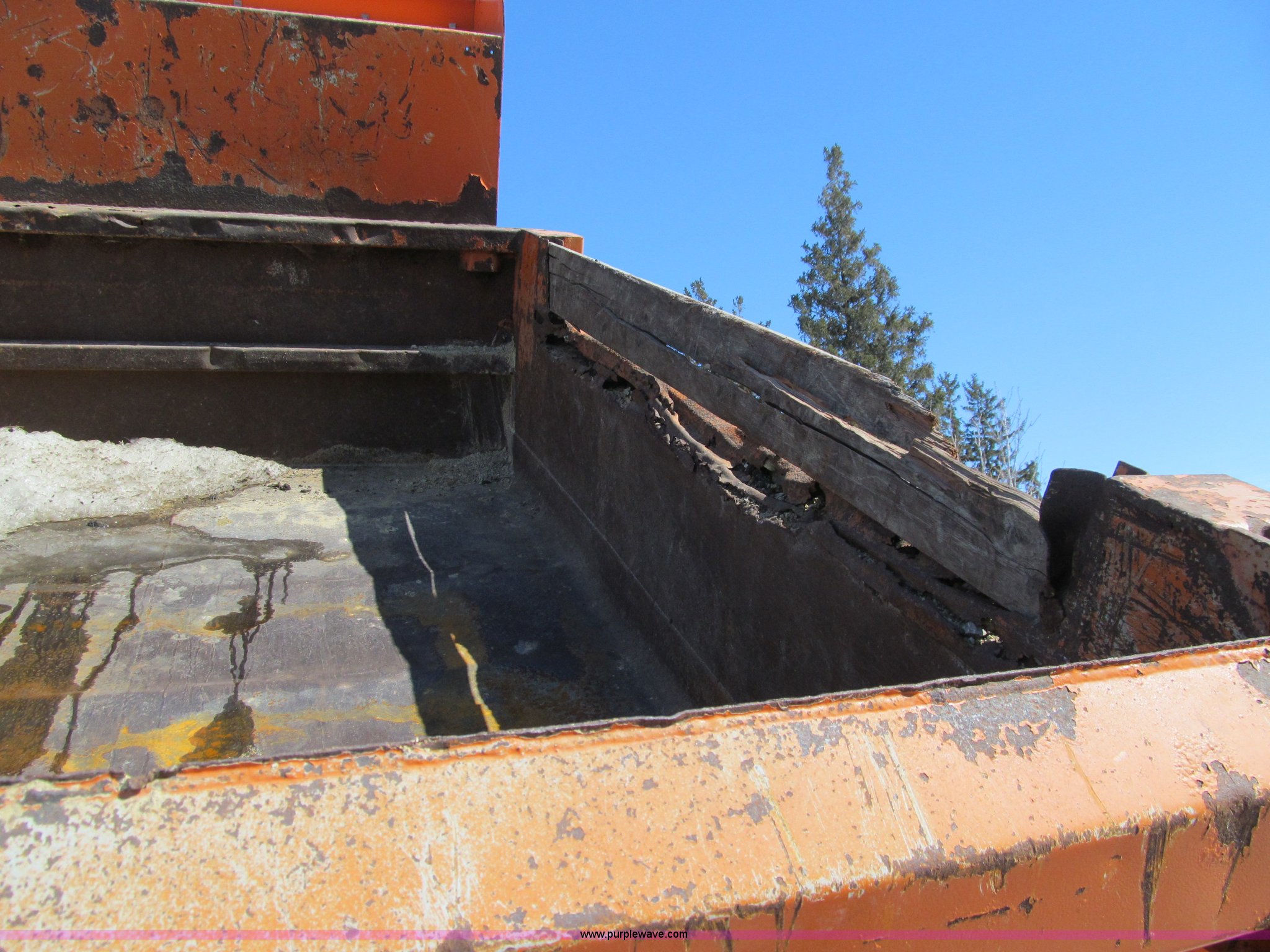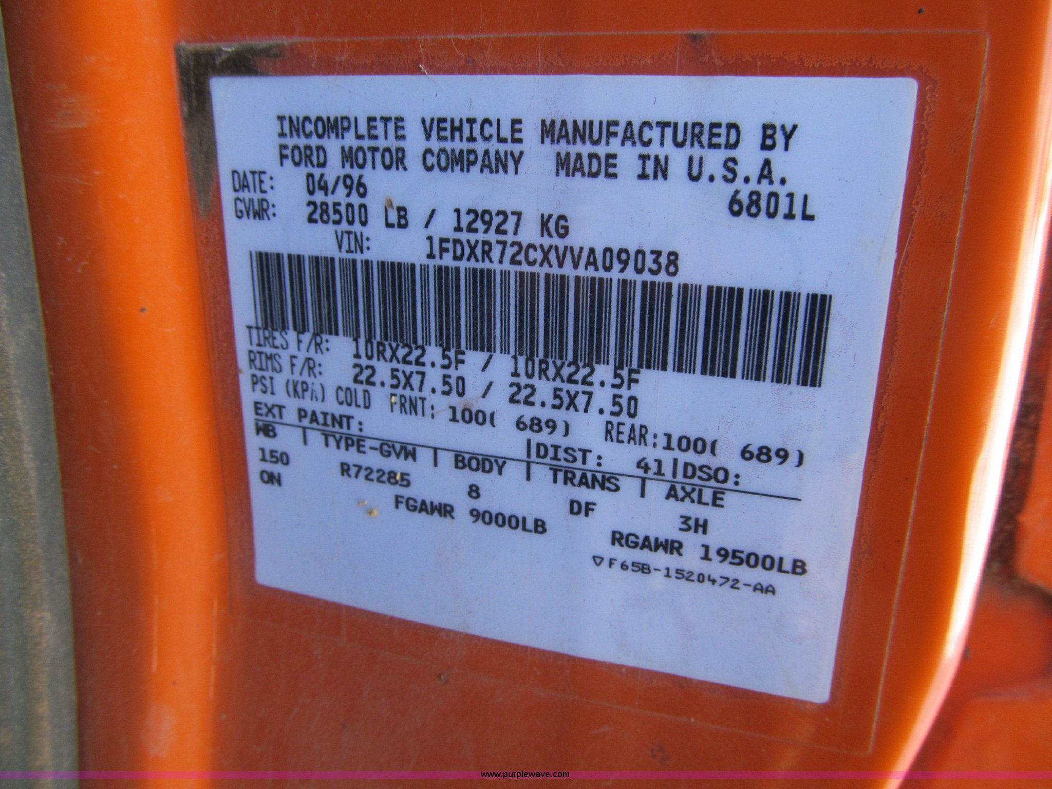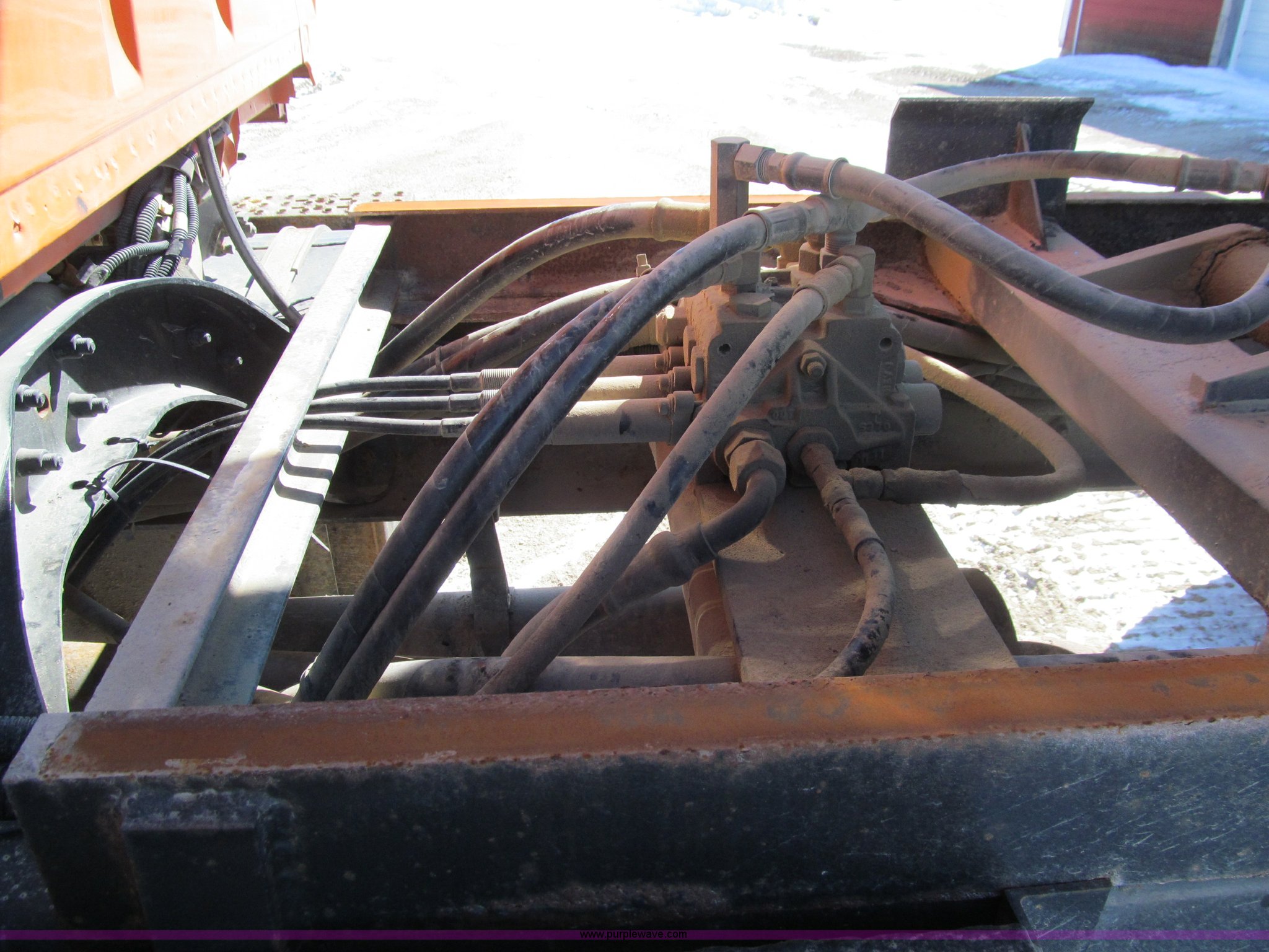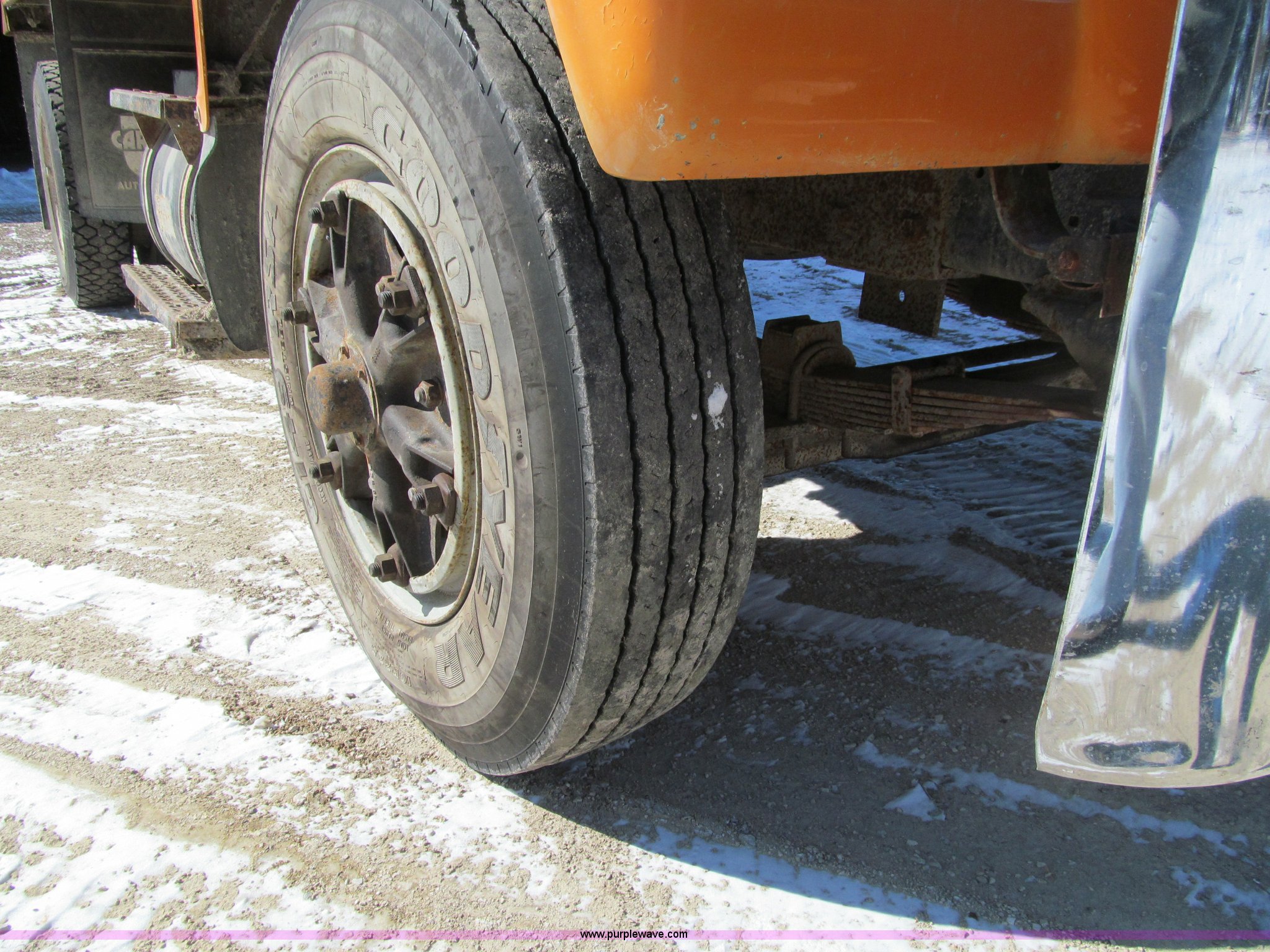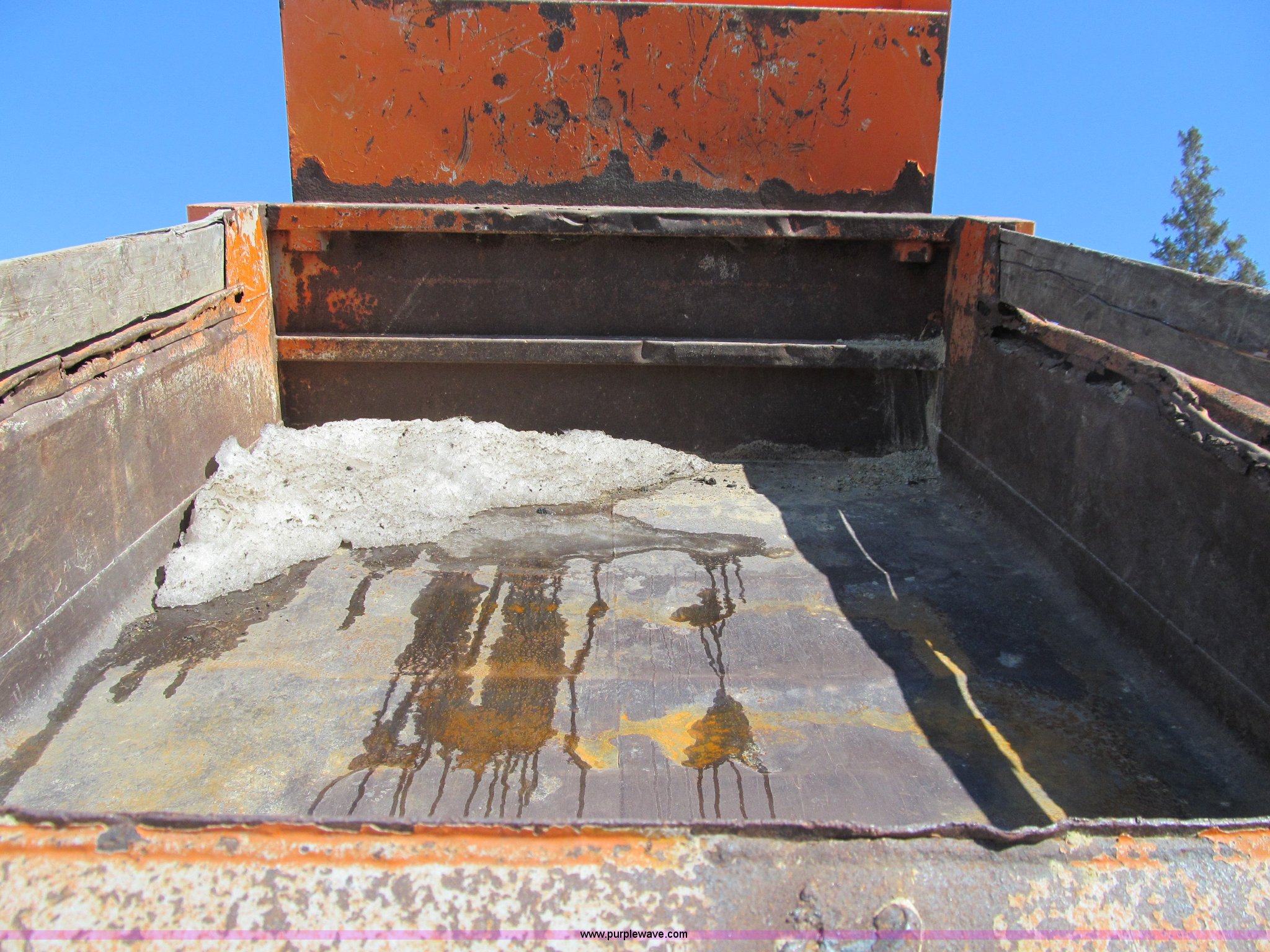 Purple Wave is selling a used Construction Dump Truck in Iowa. This item is a 1997 Ford N7000 dump truck with the following: 41,219 miles on odometer, 3,436 hours on meter, Cummins 5.9L L6 diesel engine, Five speed manual transmission, Hi-Lo axle, Heat, AM/FM, Air suspension seat, In-cab hydraulic controls for attachments, 10' box, Single ram, Wavy floor, Rust/corrosion, Chrome bumper, Block heater, Trailer wiring, Pintle hitch, Front mount PTO, Spring suspension, Air brakes, Air and hydraulic lines to rear of frame, 152" wheelbase, 10R22.5 tires, GVWR 28,500 lbs, Cab contents not included