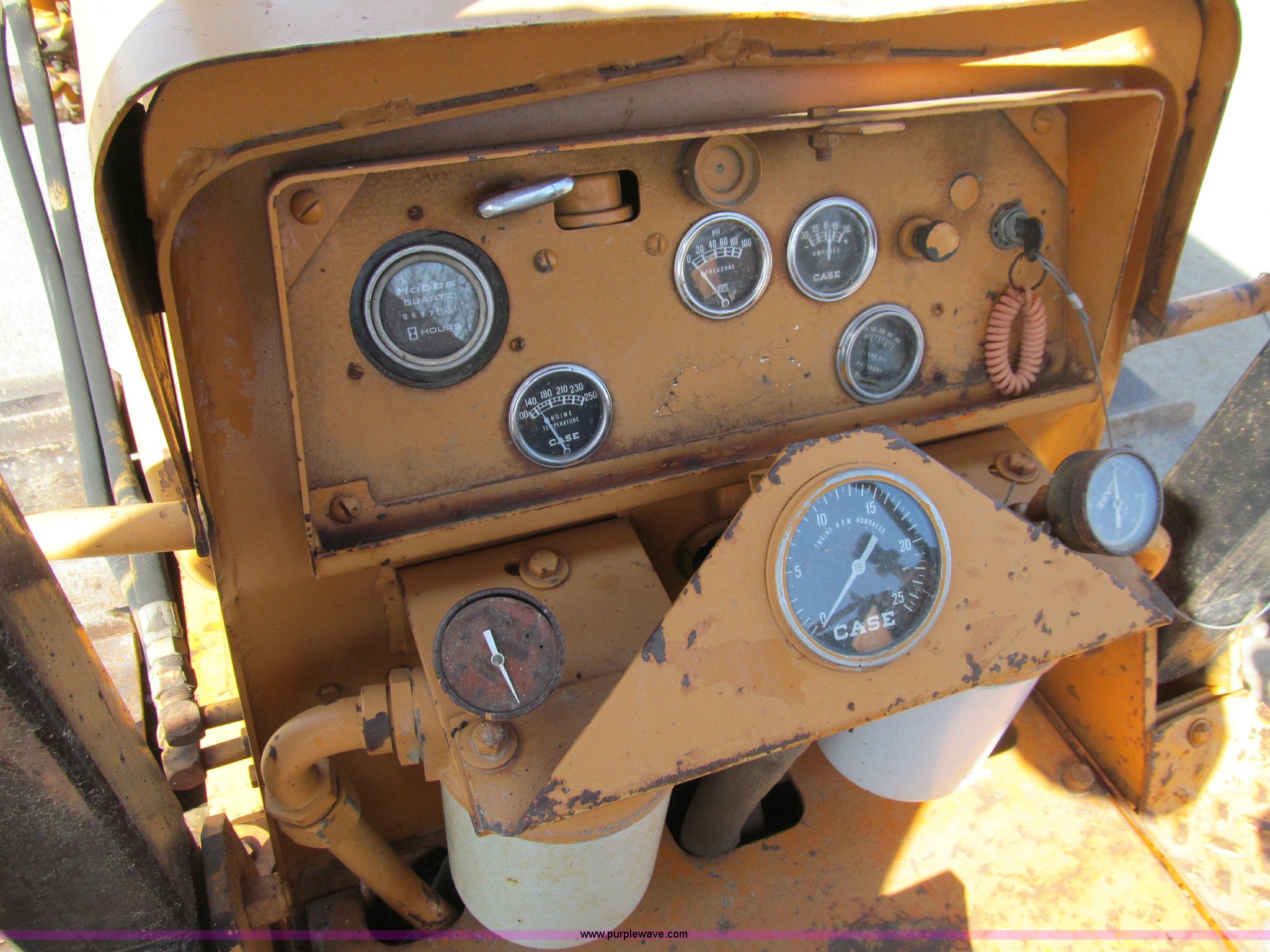 Purple Wave is selling a used Crawler Cable Plow in Iowa. This item is a 1979 Case 475 crawler vibratory plow with the following: 487 hours on meter, Case four cylinder diesel engine, Model A366BD, Serial 10164288, Powershift transmission, 2F-2R gears, Canopy, Clutch brake steering, Front reel carrier, 20"W single grouser track pads, Five bottom rollers, Left hand arm rest and bottom seat cushion are not furnished, Diesel fuel leak below injection pump, Rear vibratory shank not furnished, Serial 3070502