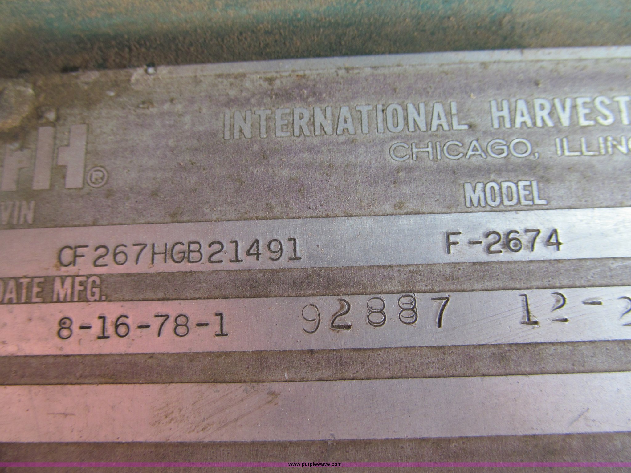 1978 International F2674 quad axle dump truck. 510,874 miles on odometer, Cummins NTC-290 diesel engine, Eaton Fuller Road Ranger eight speed manual transmission Lo-Lo, Twin screw, Heat, Tilt, Air suspension seat, Heated mirrors, 16'L x 8'W box Air operated end gate, Exterior visor, Single fuel tank, Spring suspension, PTO, Air brakes, Jake brake, Tag axle, 214" wheelbase, 425/65R22.5 front tires, 11R22.5 rear tires, DOT inspection completed April 2012. Title distribution may be delayed up to 14 days from verification of funds. CF267HGB21491. Shipping quotes available. Rural Excavating. 285 Milwaukee Street. Platteville, WI 53818