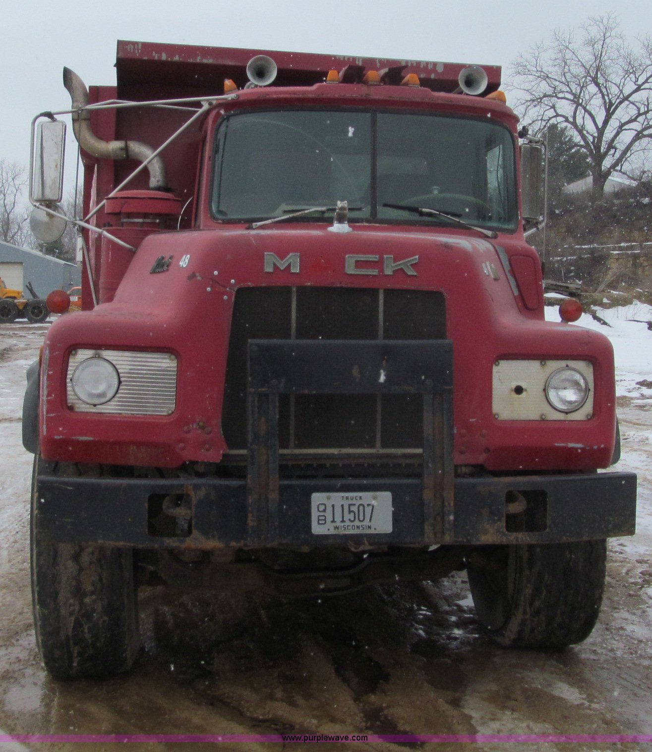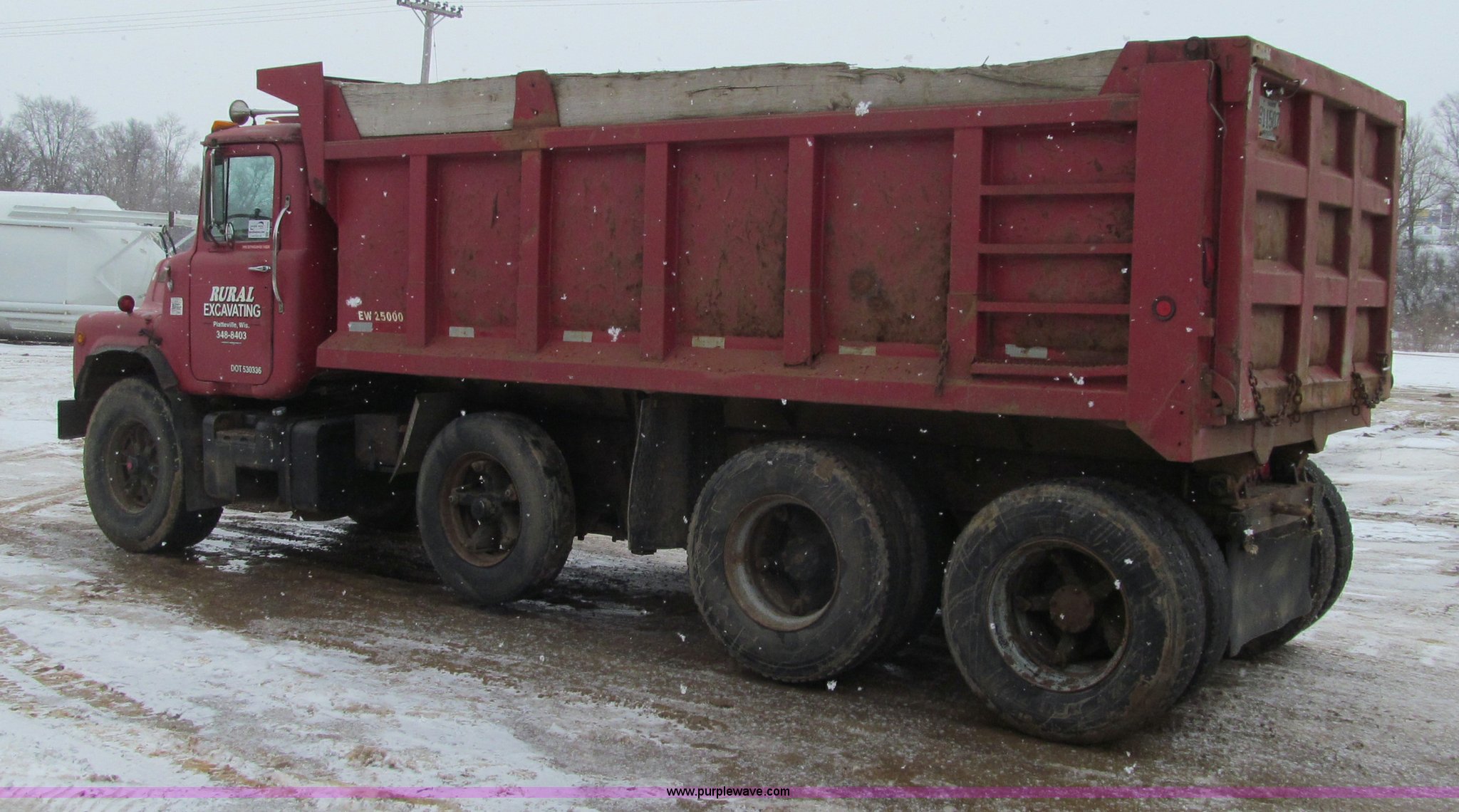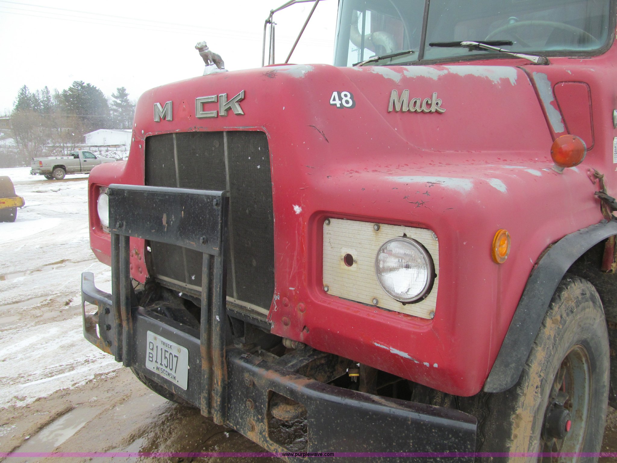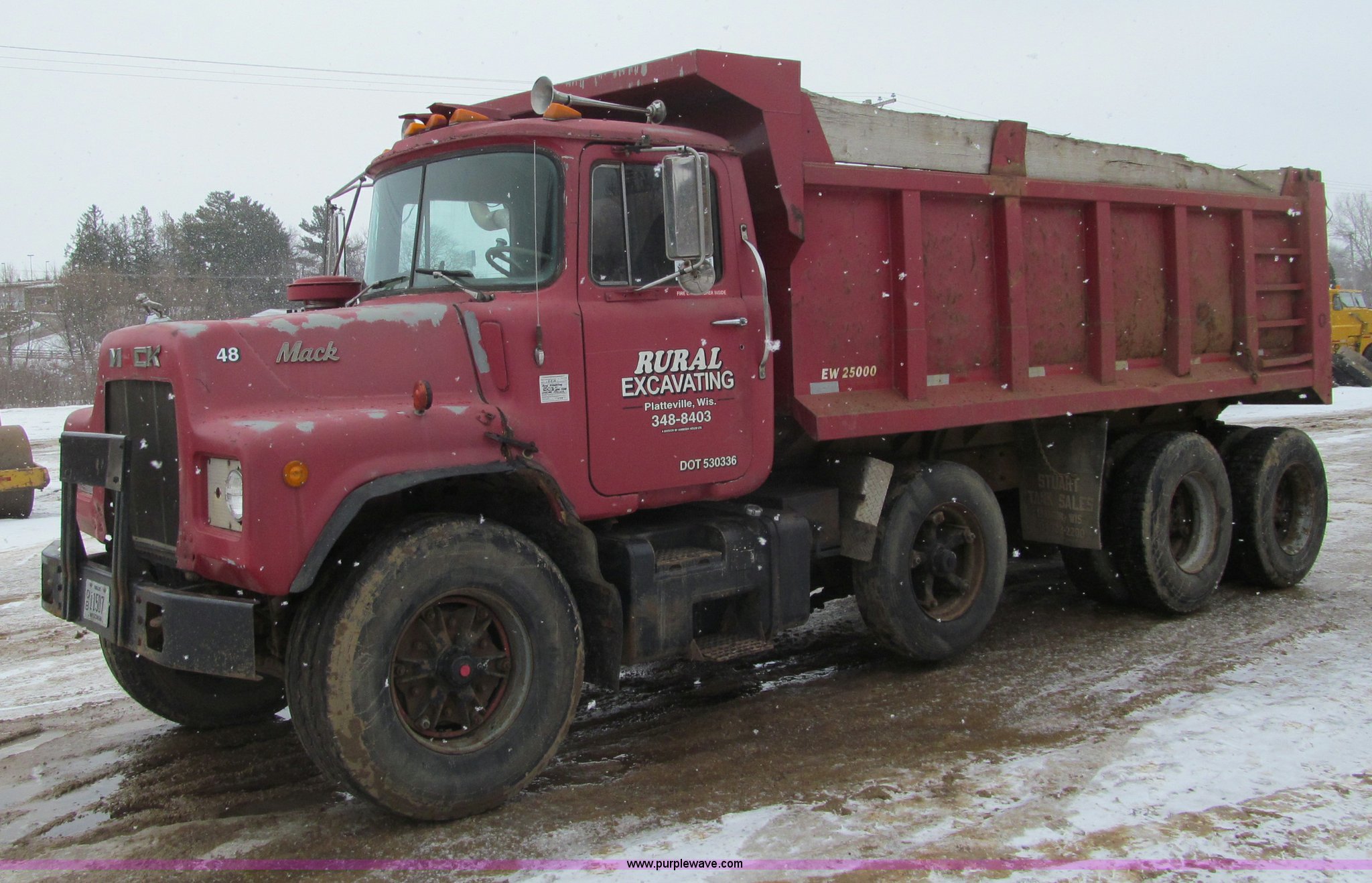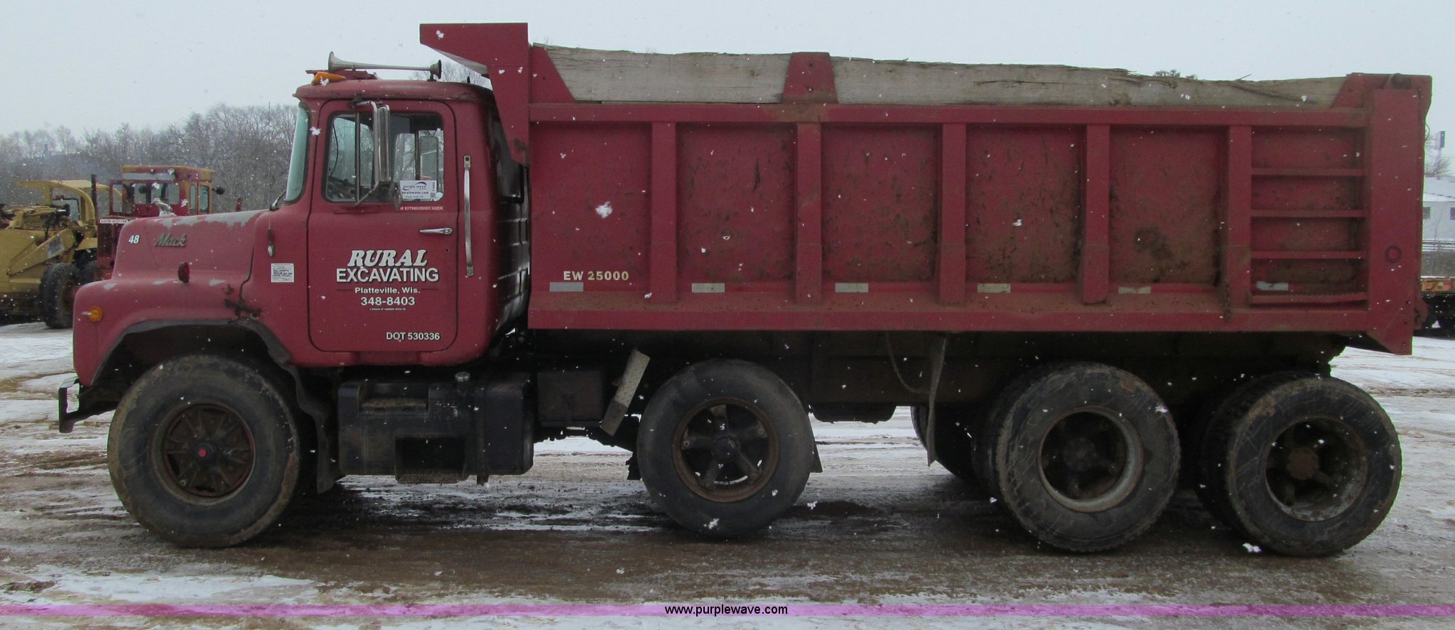 Purple Wave is selling a used Construction Dump Truck in Wisconsin. This item is a 1981 Mack DM686S tri axle dump truck with the following: 340,224 miles on odometer, Diesel engine, 10 speed manual transmission, Twin screw, Heat, Tilt, AM/FM, Air suspension seat, 16'L x 8'W box, Air operated end gate, Single ram hoist, Spring suspension, PTO, Air brakes, Jake brake, Tag axle, 425/65R22.5 front tires, 11R22.5 rear tires, DOT inspection completed April 2012