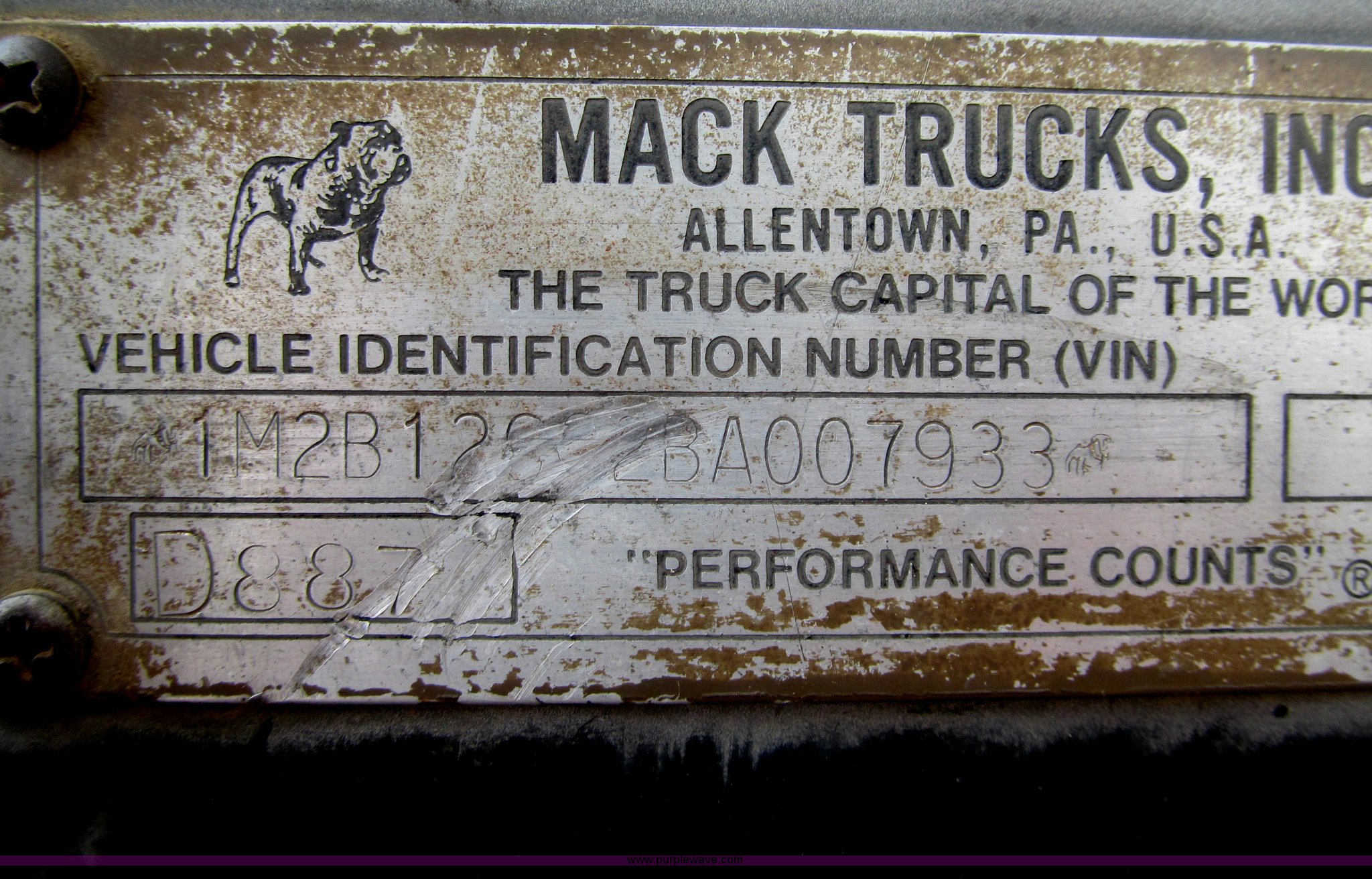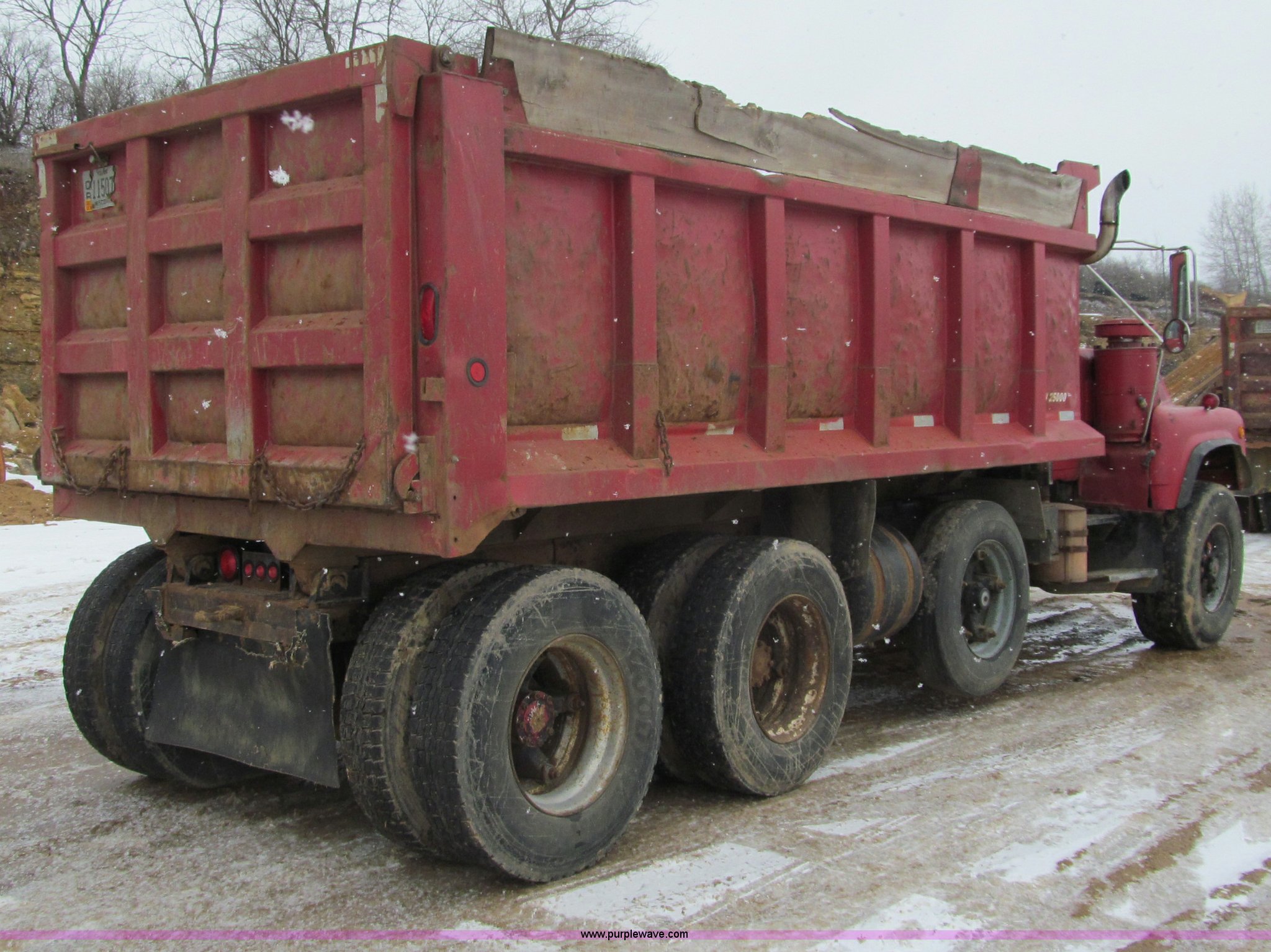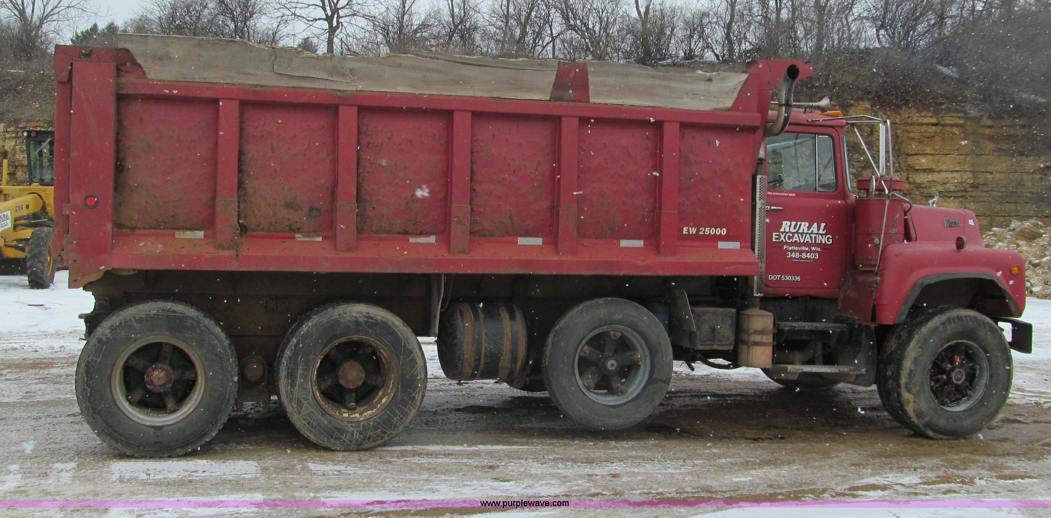 1981 Mack DM686S tri axle dump truck. 340,224 miles on odometer, Diesel engine, 10 speed manual transmission, Twin screw, Heat, Tilt, AM/FM, Air suspension seat, 16'L x 8'W box Air operated end gate, Single ram hoist, Spring suspension, PTO, Air brakes, Jake brake, Tag axle, 425/65R22.5 front tires, 11R22.5 rear tires, DOT inspection completed April 2012. Title distribution may be delayed up to 14 days from verification of funds. 1M2B126C2BA007933. Shipping quotes available. Rural Excavating. 285 Milwaukee Street. Platteville, WI 53818