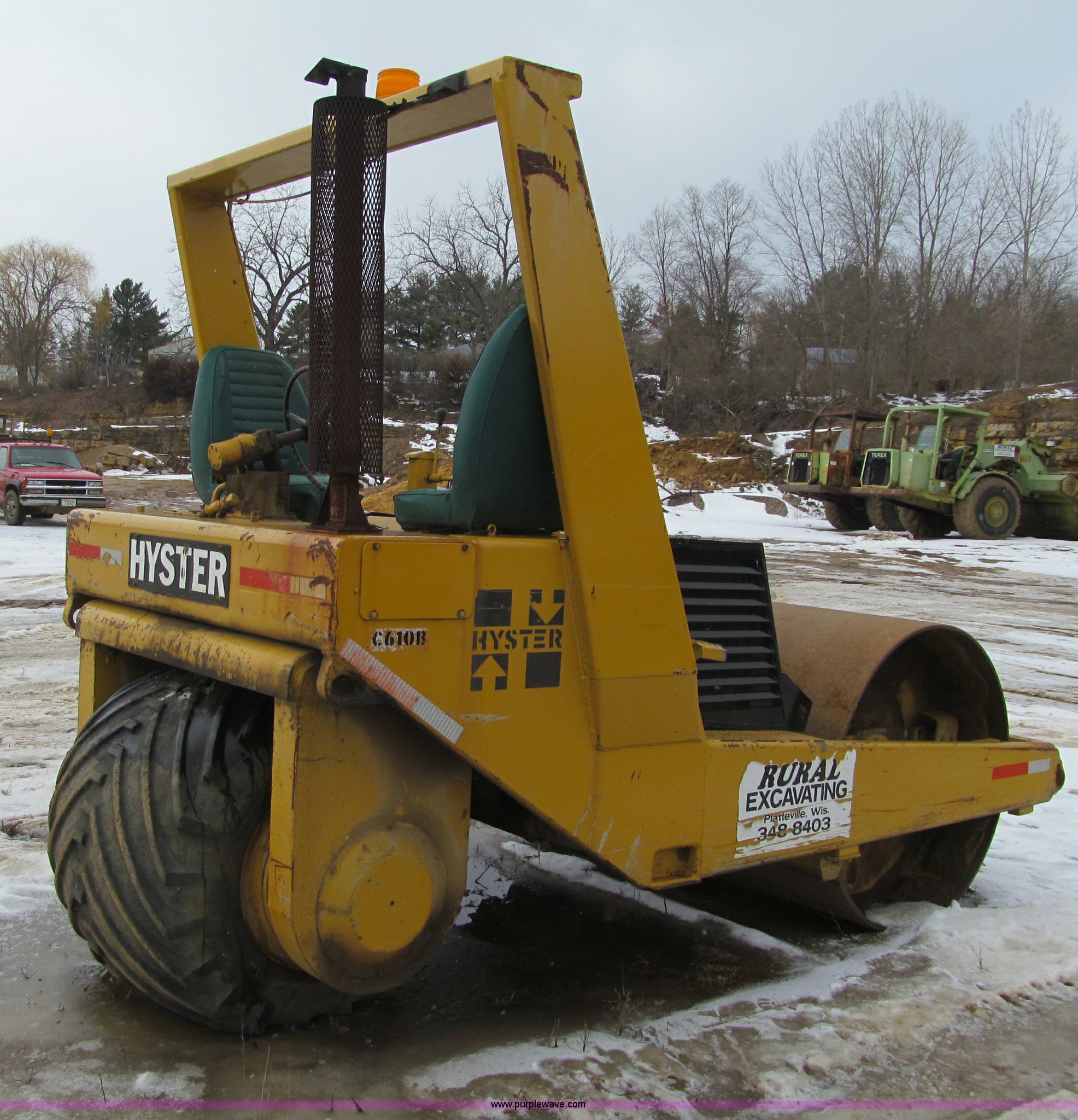 Purple Wave is selling a used Single Drum Roller Compactor in Wisconsin. This item is a Hyster C610B vibratory smooth drum roller with the following: Detroit Diesel four cylinder diesel engine, Hydrostatic drive, Dual operating station, 72"W drum, Rear steer, Single rear tire, Hour meter unreadable