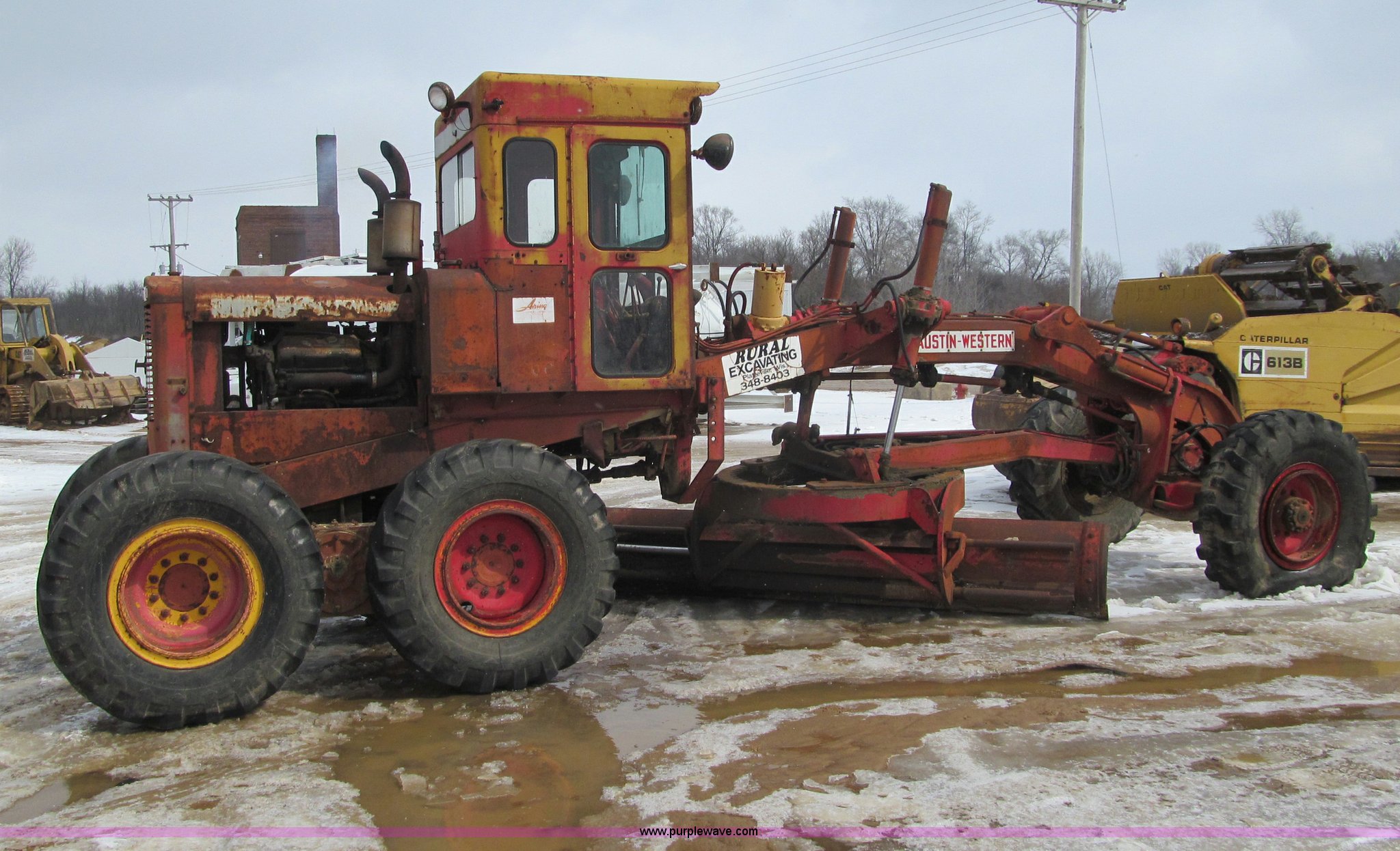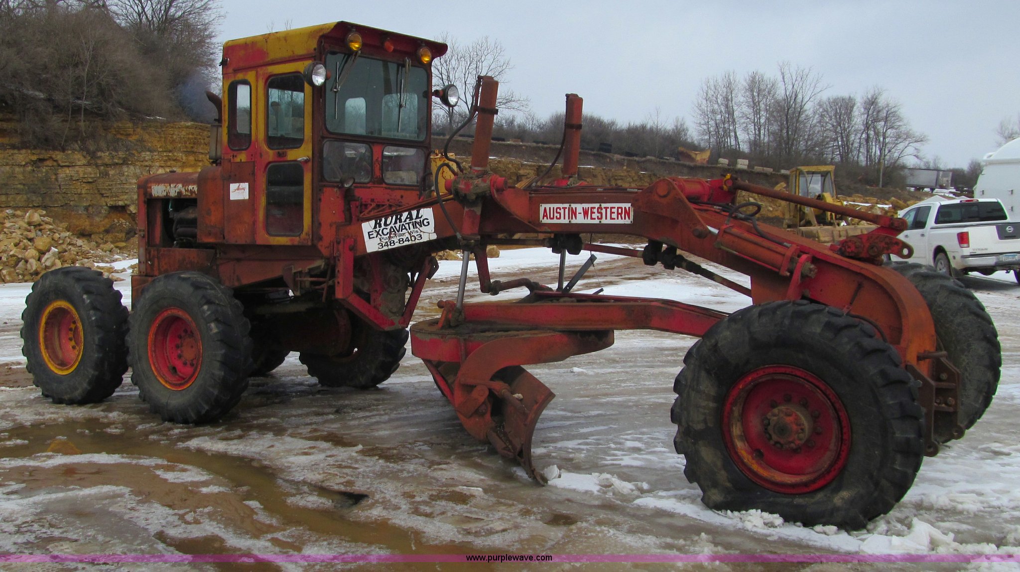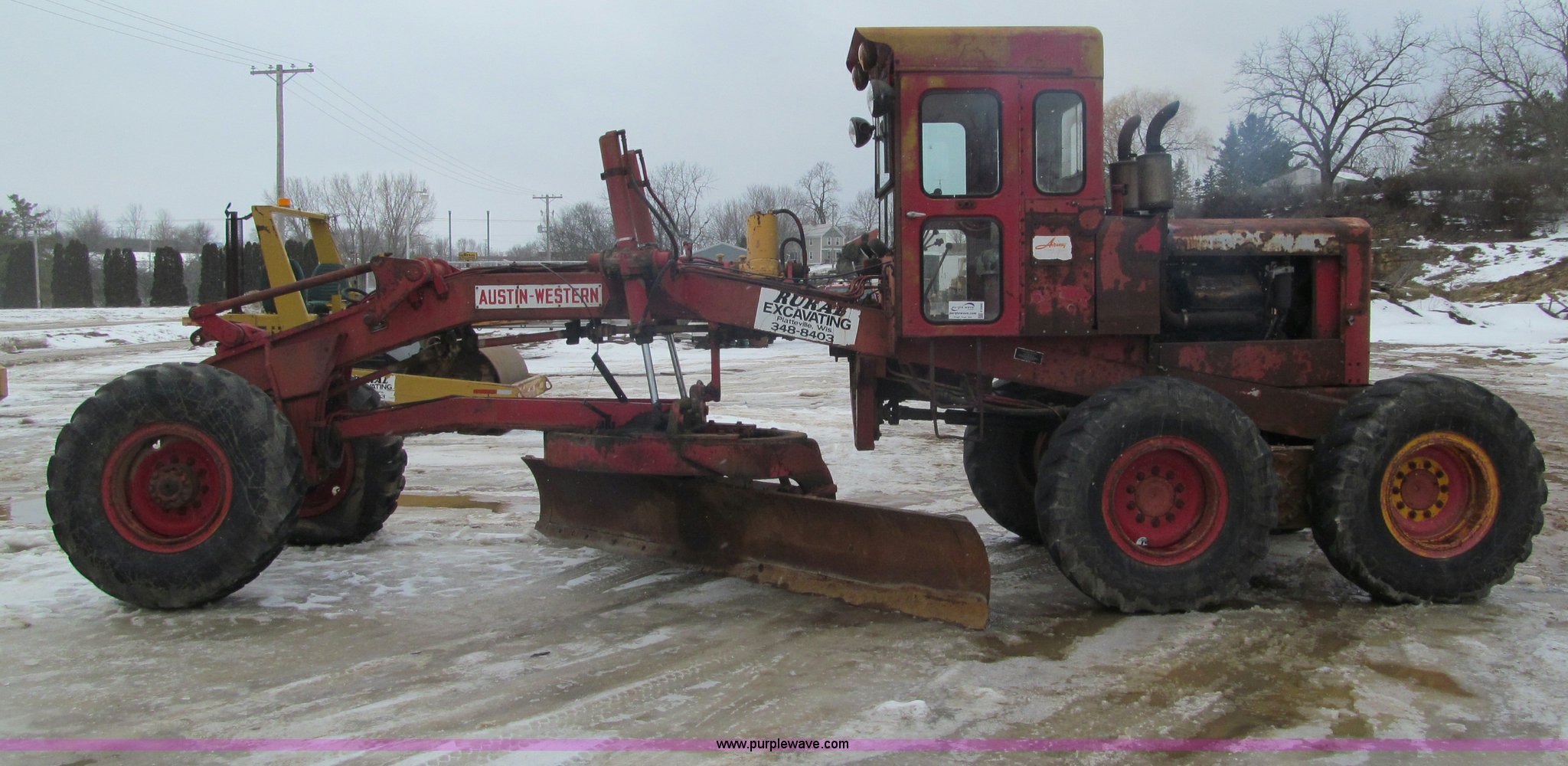 Purple Wave is selling a used Motor Grader in Wisconsin. This item is a Austin Western motor grader with the following: 6,410 hours on meter, Detroit Diesel four cylinder diesel engine, 6F-6R gears, Front wheel assist, 13' mold board, Set up for a plow, 14.00-24TG tires, Serial S4652012