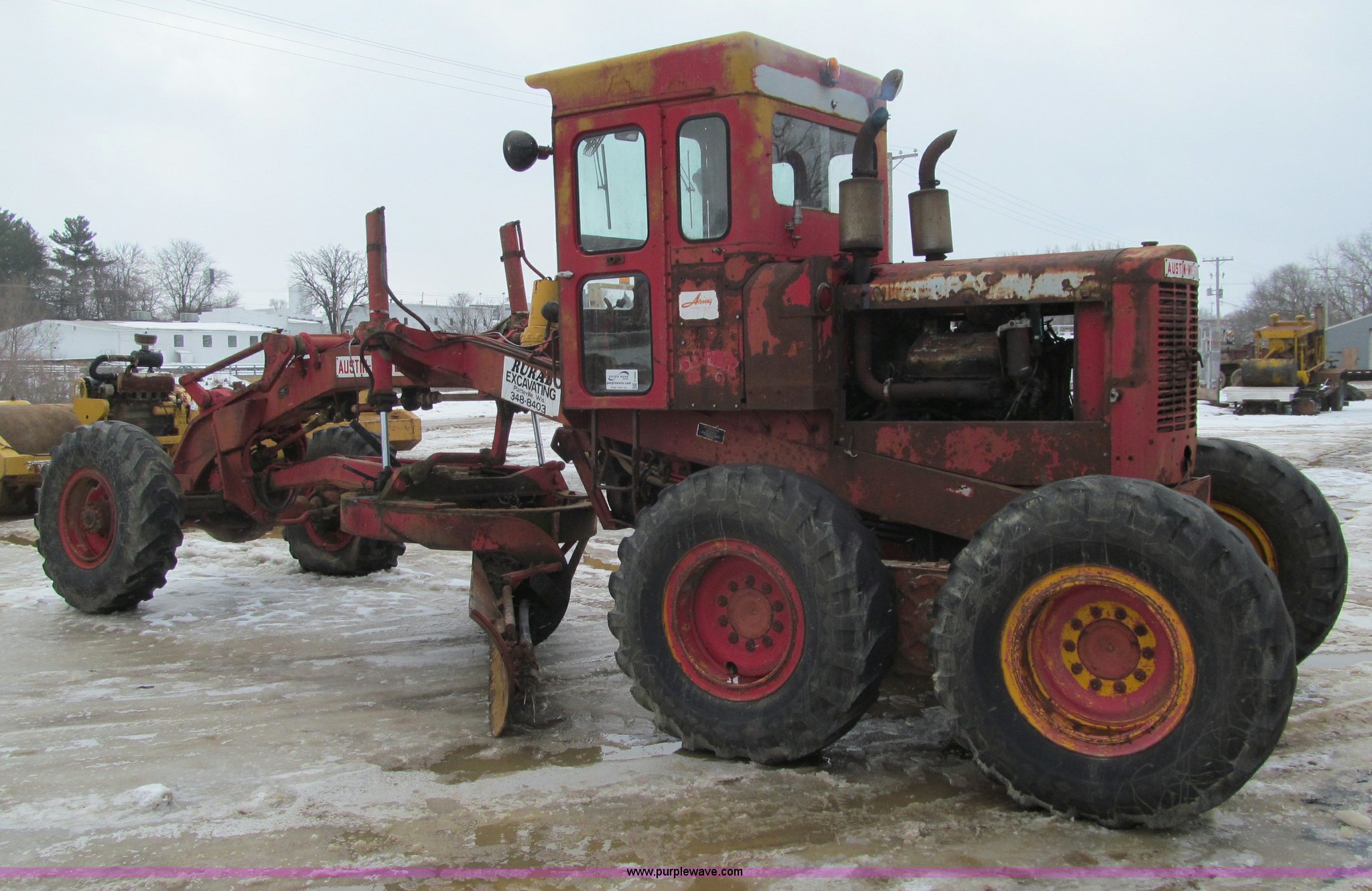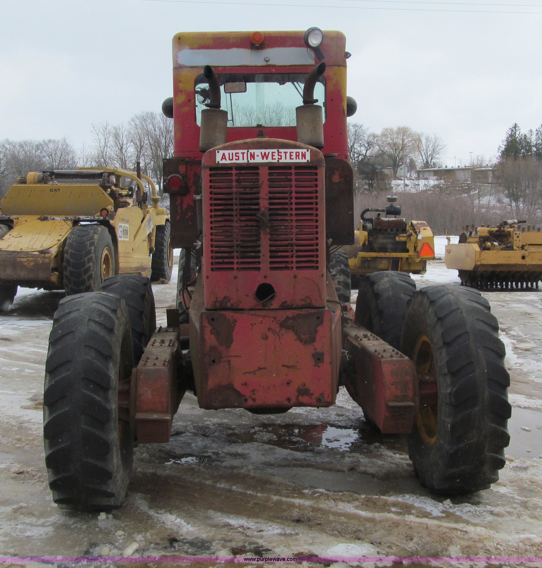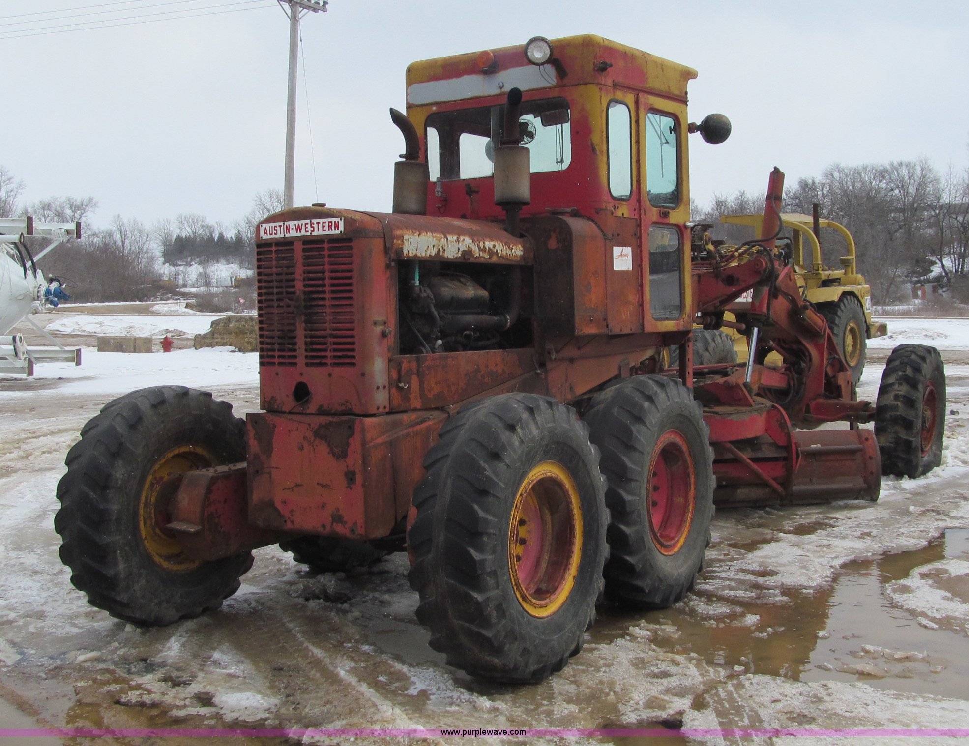 Purple Wave is selling a used Motor Grader in Wisconsin. This item is a Austin Western motor grader with the following: 6,410 hours on meter, Detroit Diesel four cylinder diesel engine, 6F-6R gears, Front wheel assist, 13' mold board, Set up for a plow, 14.00-24TG tires, Serial S4652012