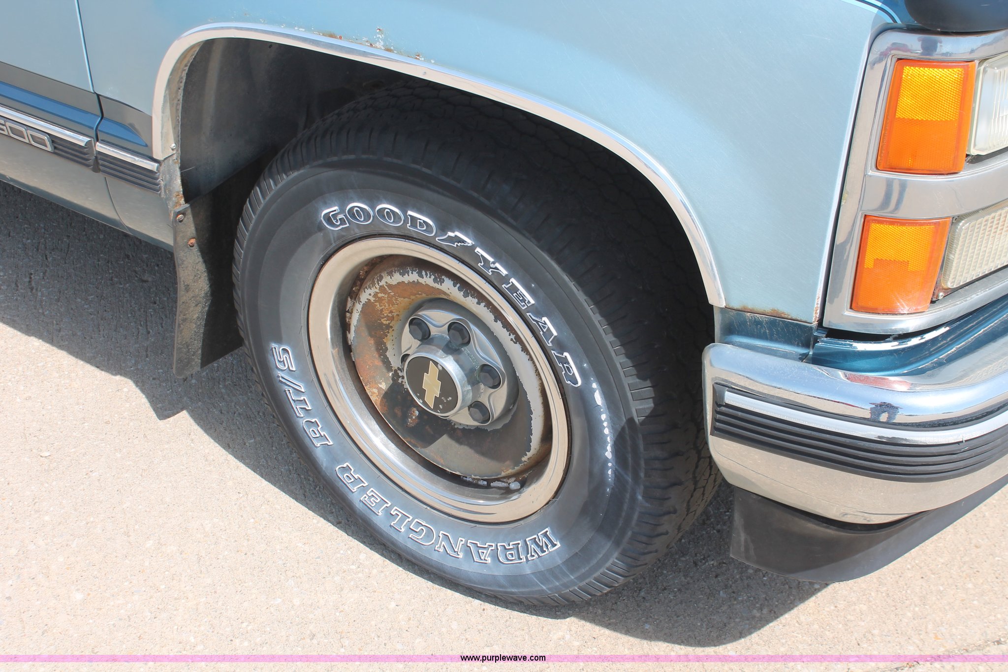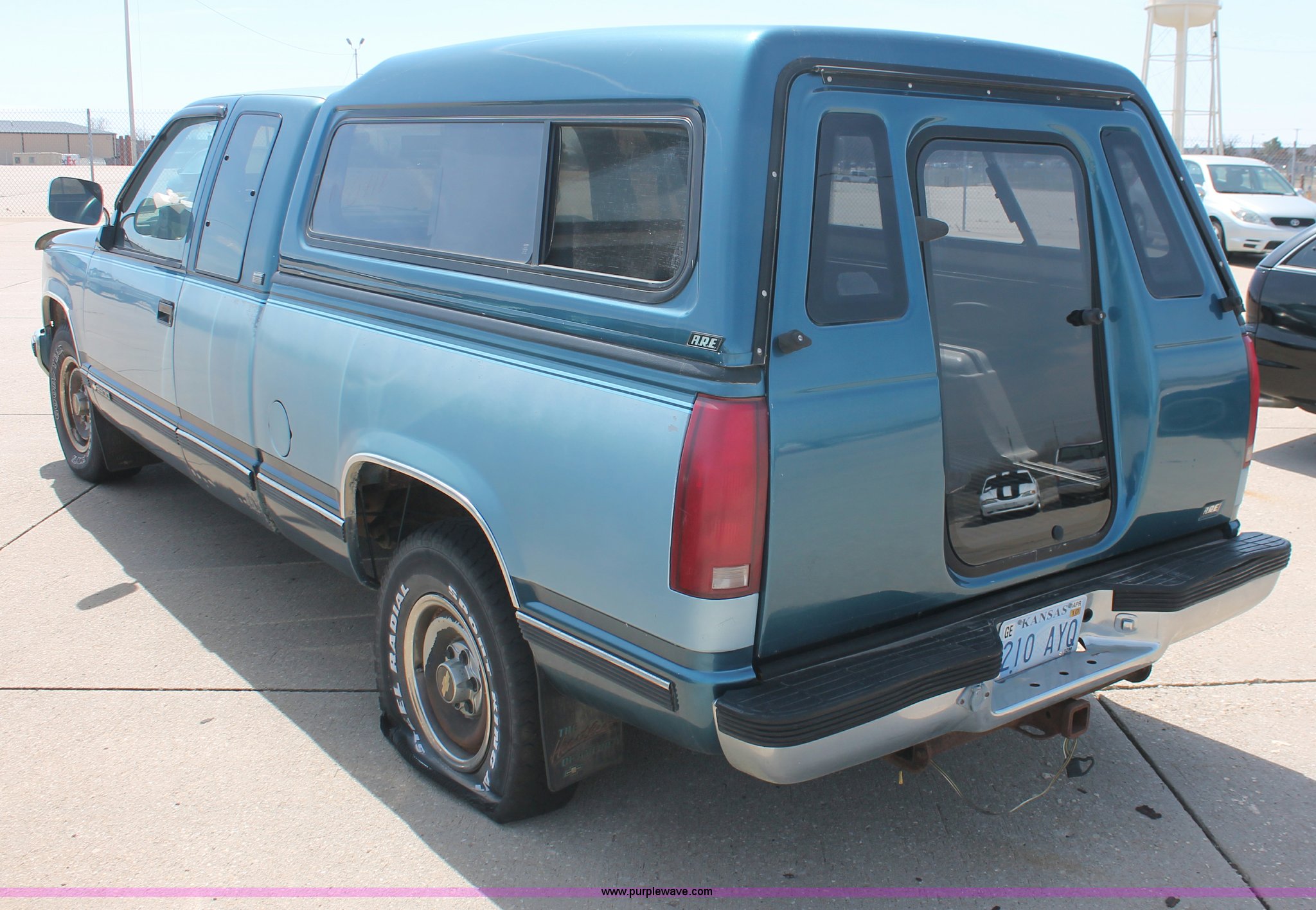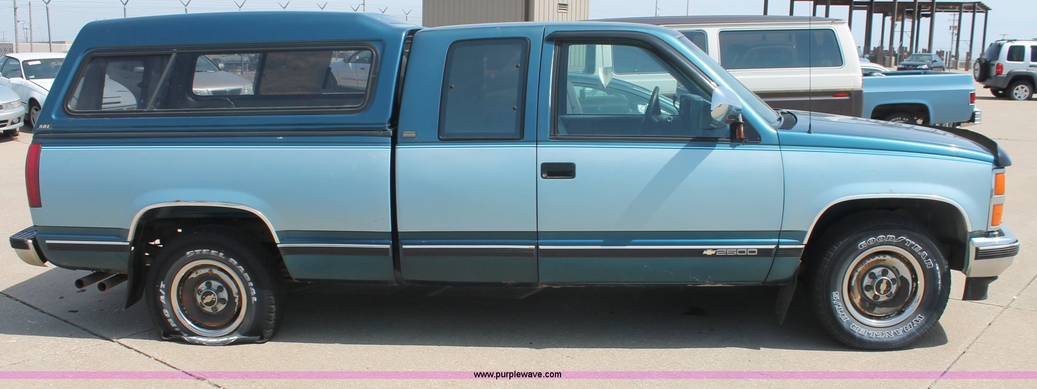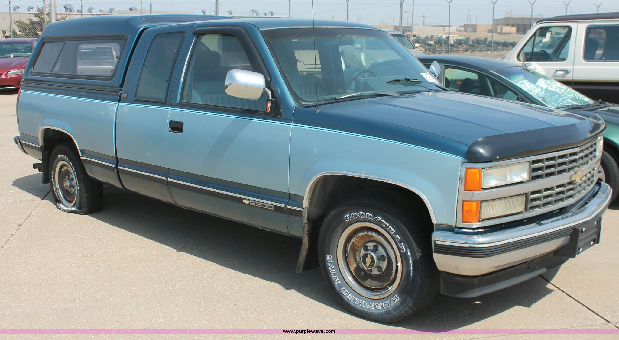 Purple Wave is selling a used Wrecked and Abandoned in Kansas. This item is a 1991 Chevrolet Silverado 2500 Extended Cab pickup truck with the following: 201,372 miles on odometer, 5.7L V8 TBI gas engine, Automatic transmission, AC and heat, Tilt, Cruise, AM/FM, Power windows and locks, Cloth interior, Bug guard, Topper, Receiver hitch, Trailer wiring, 245/75R16 tires, Flat/blown, No keys, Doors locked, Body rust, Unit# AV0408