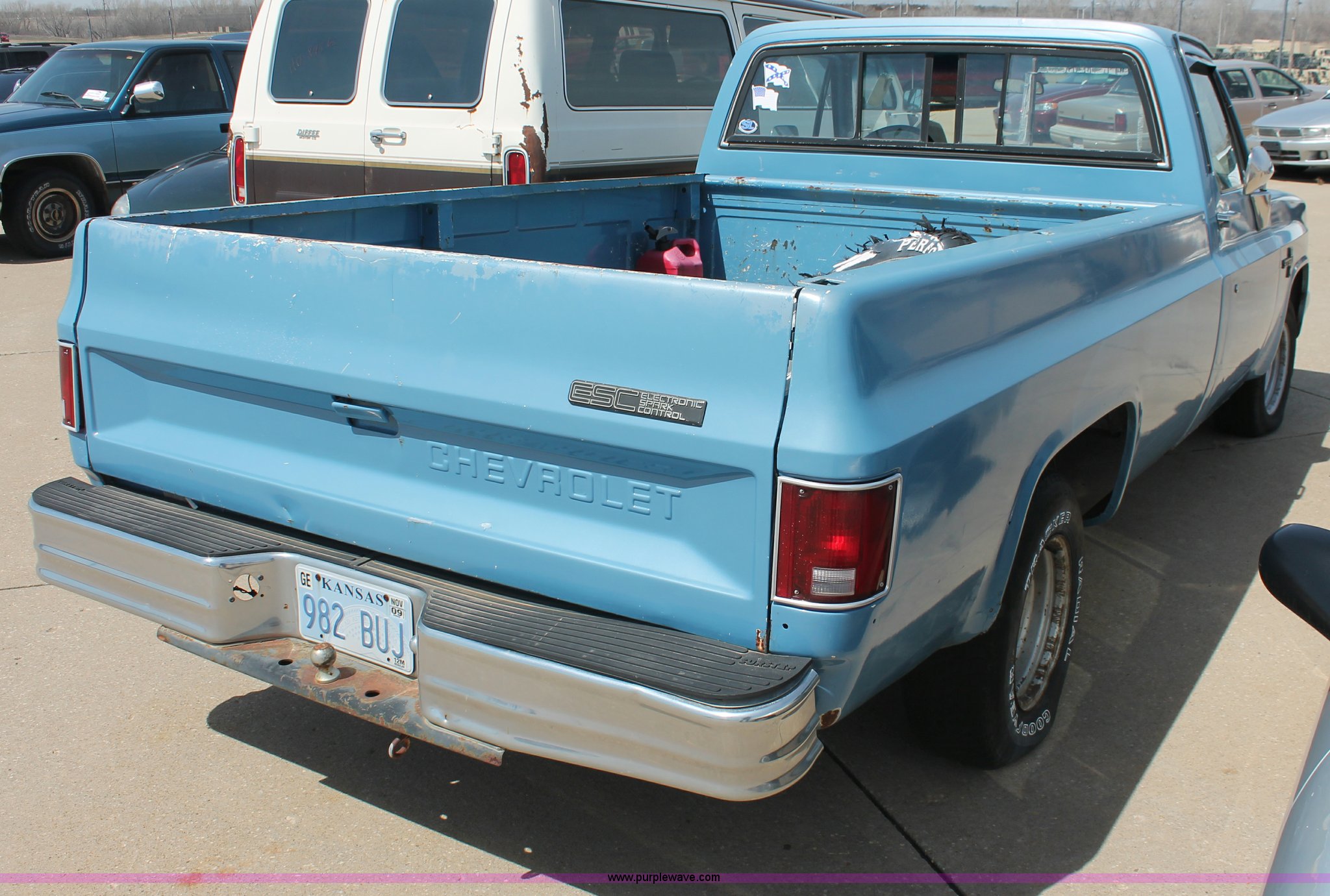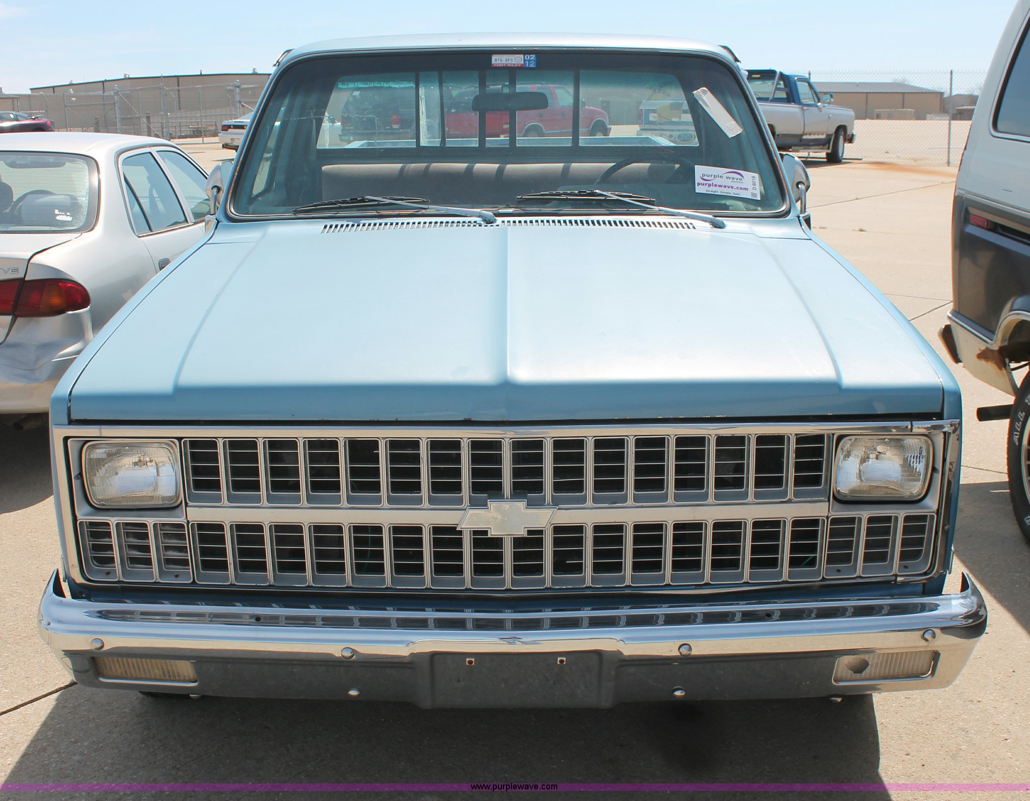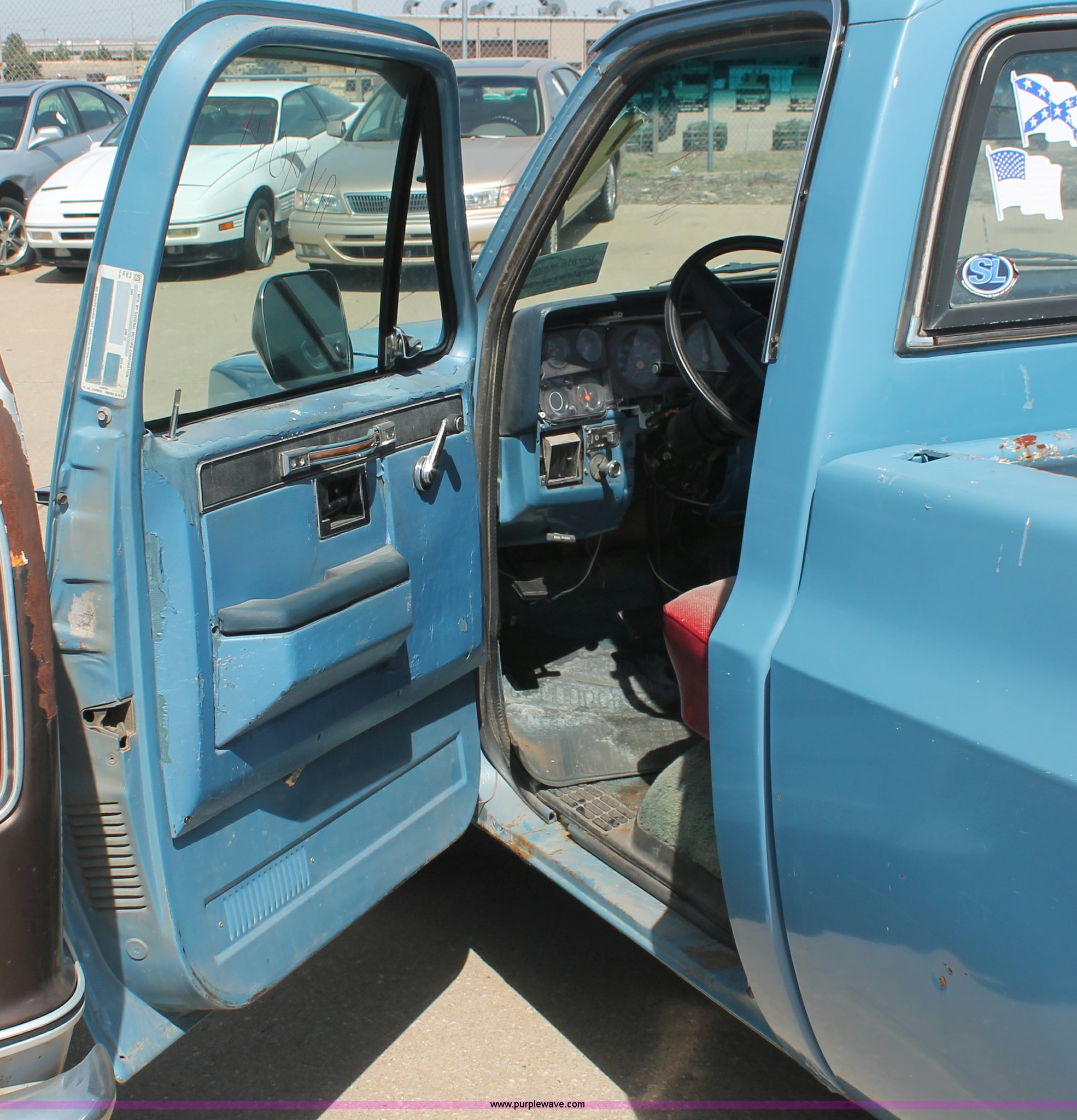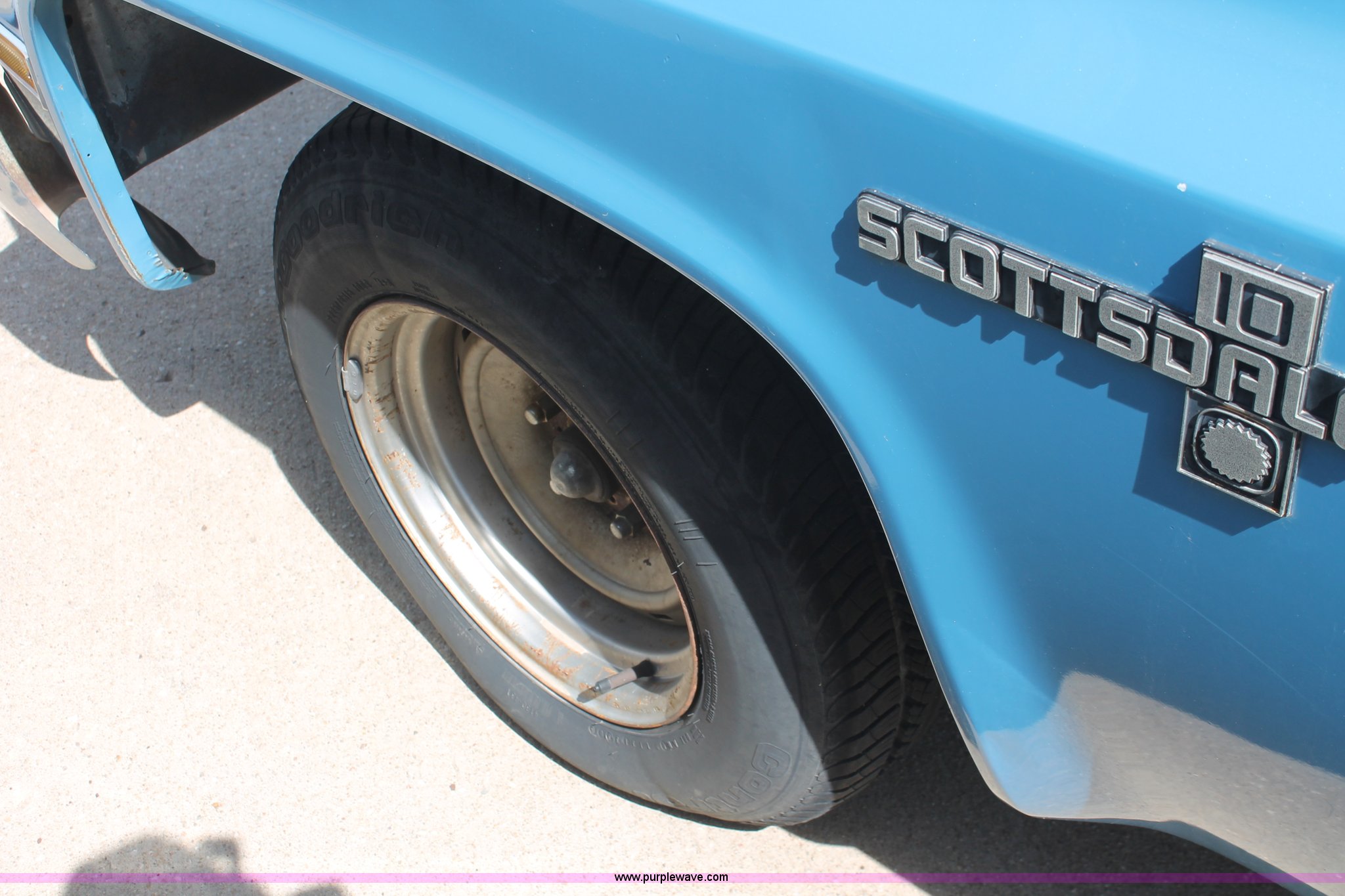Purple Wave is selling a used Wrecked and Abandoned in Kansas. This item is a 1982 Chevrolet Scottsdale 10 pickup truck with the following: 31,964 miles on odometer, Gas engine, Automatic transmission, AC and heat, Tilt, Cruise, Manual windows and locks, Cloth interior, Rear sliding window, Long bed, Ball hitch, 225/70R15 tires, Body rust, Cracked dash, Stereo missing, Unit# AV4094