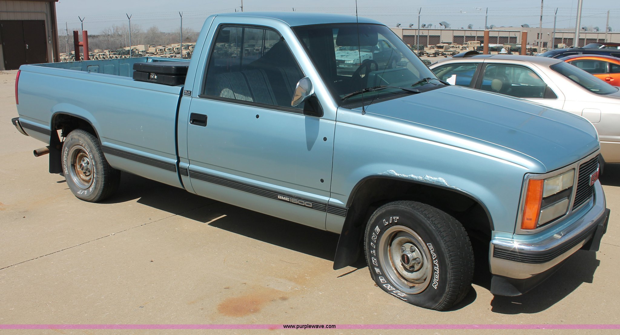 Purple Wave is selling a used Wrecked and Abandoned in Kansas. This item is a 1990 GMC Sierra 1500 SLX pickup truck with the following: 188,344 miles on odometer, 5.7L V8 OHV 16V gas engine, Automatic transmission, AC and heat, Tilt, Cruise, AM/FM, Manual windows and locks, Cloth interior, Rear sliding window, Long bed, Toolbox, Receiver hitch, Trailer wiring, 235/75R15 tires, Flat, No keys, Body rust, Unit# AB1427