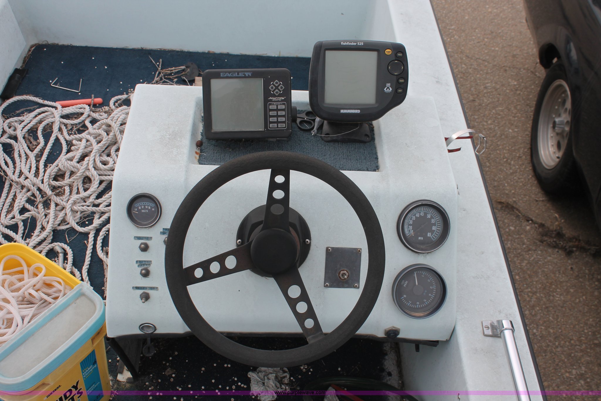 Purple Wave is selling a used Wrecked and Abandoned in Kansas. This item is a Boat with the following: Two person capacity, Eagle GPS, Hummingbird fish finder, Storage compartments, Hull ID PG0135M79F