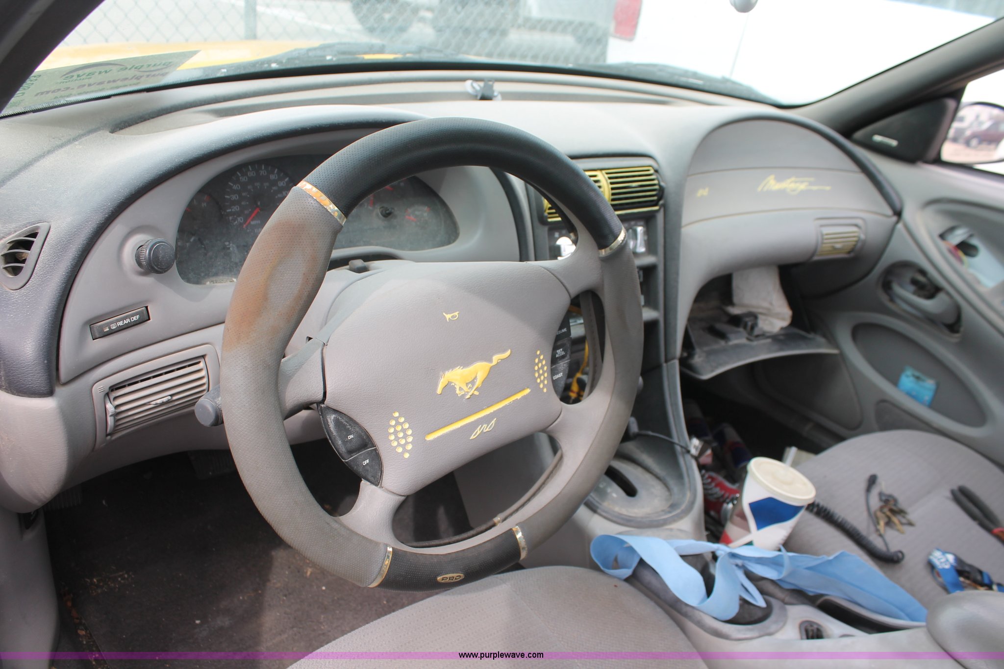 Purple Wave is selling a used Wrecked and Abandoned in Kansas. This item is a 2000 Ford Mustang with the following: Mileage unknown, 3.8L V6 EFI gas engine, Automatic transmission, AC and heat, Tilt, Cruise, Power windows, locks, and mirrors, Cloth interior, Rear spoiler, 205/65R15 tires, No keys, Interior/exterior cosmetic damage, Windows rolled down, Stereo missing, Paint chipping/peeling, Unit# AV6856
