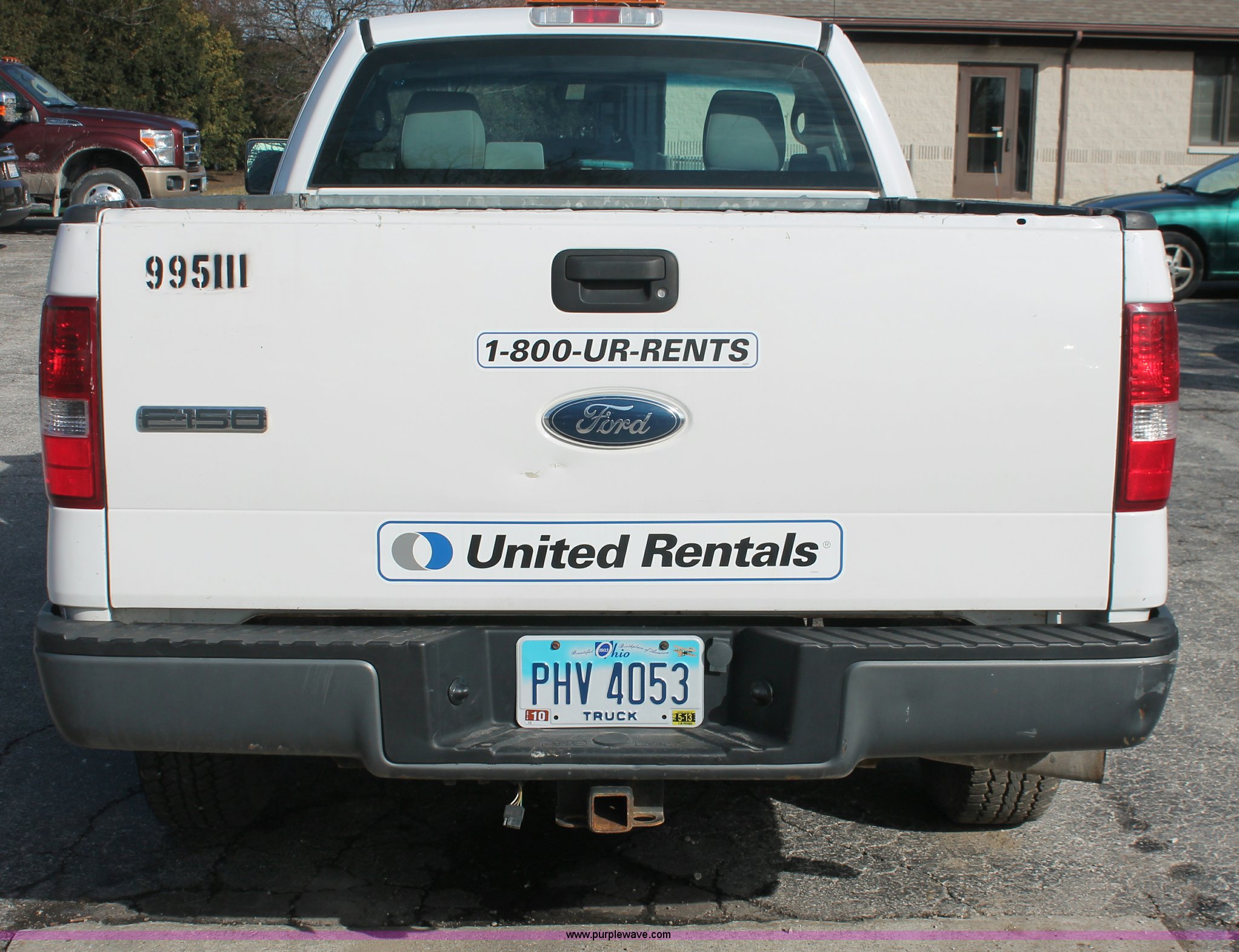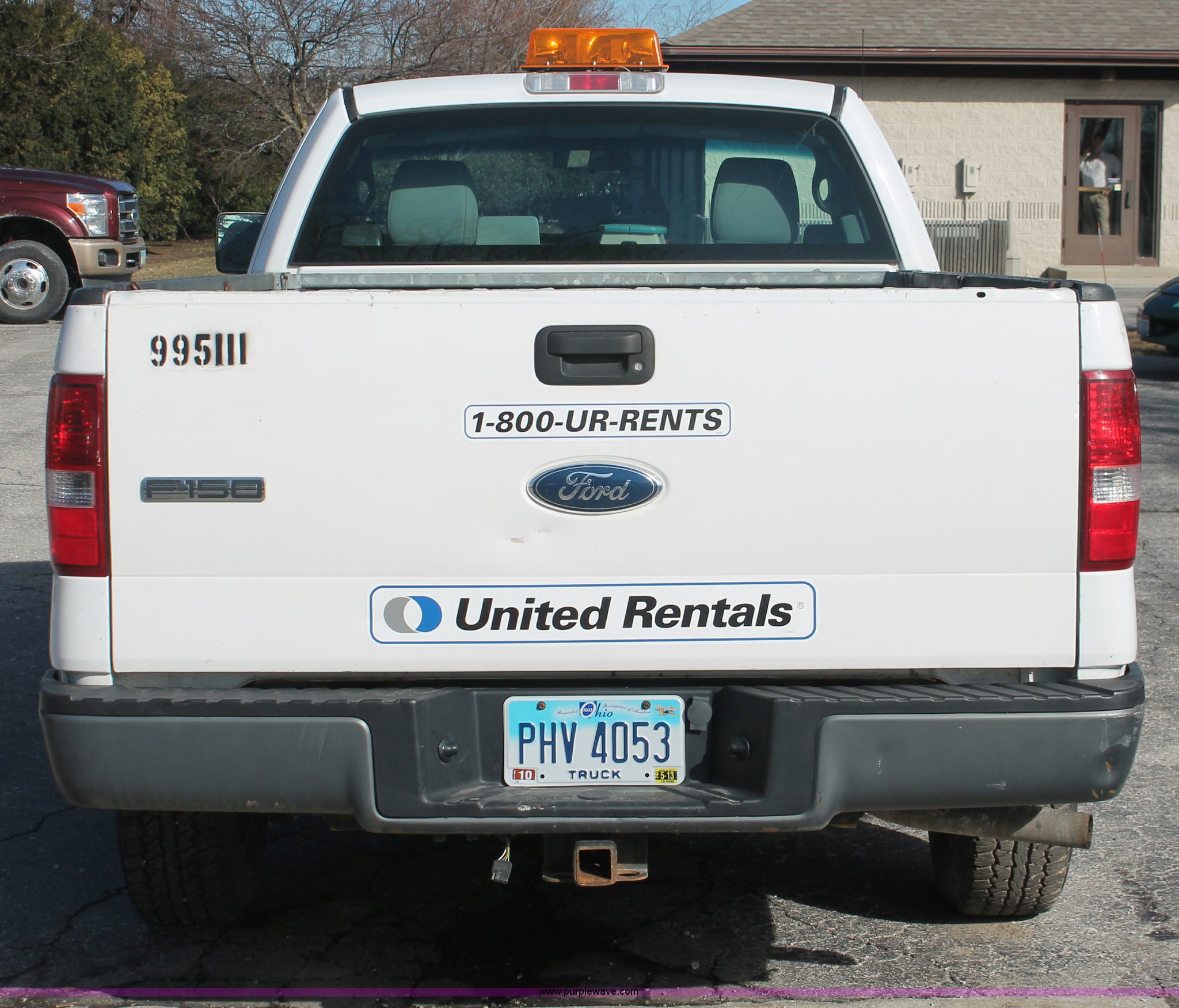 2006 Ford F150 XL pickup truck. 93,055 miles on odometer, 4.6L V8 SOHC 16V gas engine, Automatic transmission, AC and heat, Tilt, AM/FM, Manual windows and locks, Cloth interior, All-Star bed liner, Amber beacon light, Receiver hitch, Trailer wiring, P235/70R17 tires, EIN 995111. 1FTRF12W46KB50333. Shipping quotes available. United Rentals - Perrysburg. 620 Eckel Road. Perrysburg, OH 43551