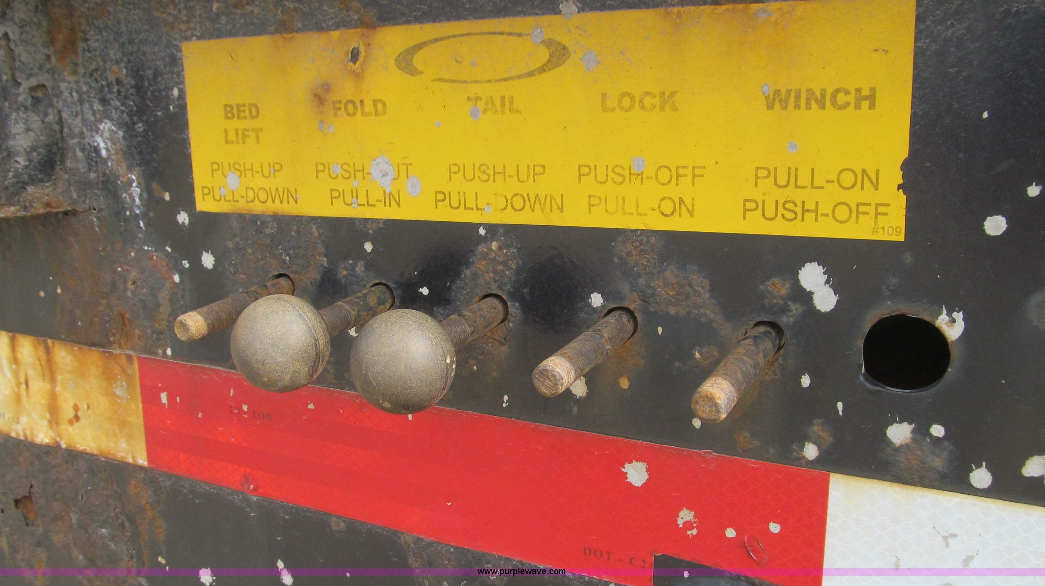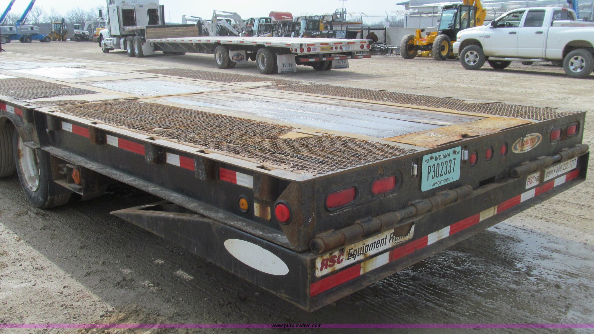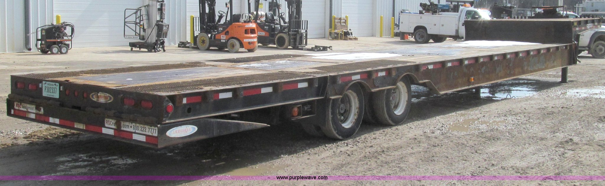 Purple Wave is selling a used Flat or Drop Deck Trailer in Missouri. This item is a 2007 Ledwell Hydratail 48' tandem axle trailer with the following: 102"W, 10' mini deck, 8' beaver tail, Perimeter beam, Air suspension, Right Weigh Inc. load scales, Model AHU7-14 winch, 24,000 lbs continuous duty, Serial 0671680, Dual side hydraulic controls, Low profile 215/75R17.5 tires, 115 psi, GVWR 80,000 lbs, Rust on underside of main frame, EIN 692024RA
