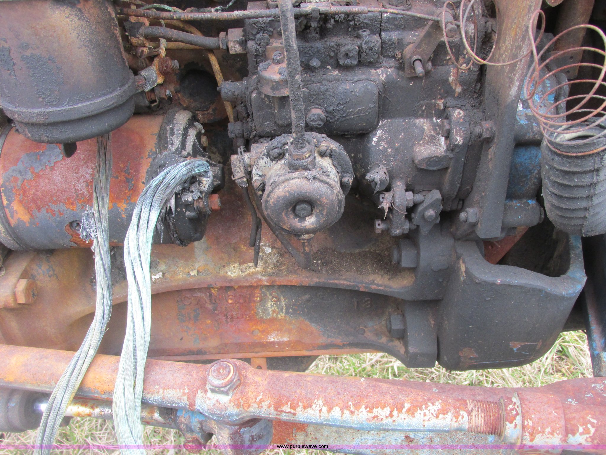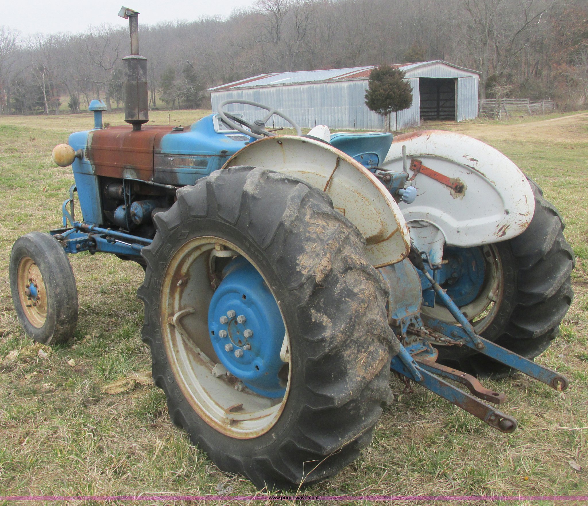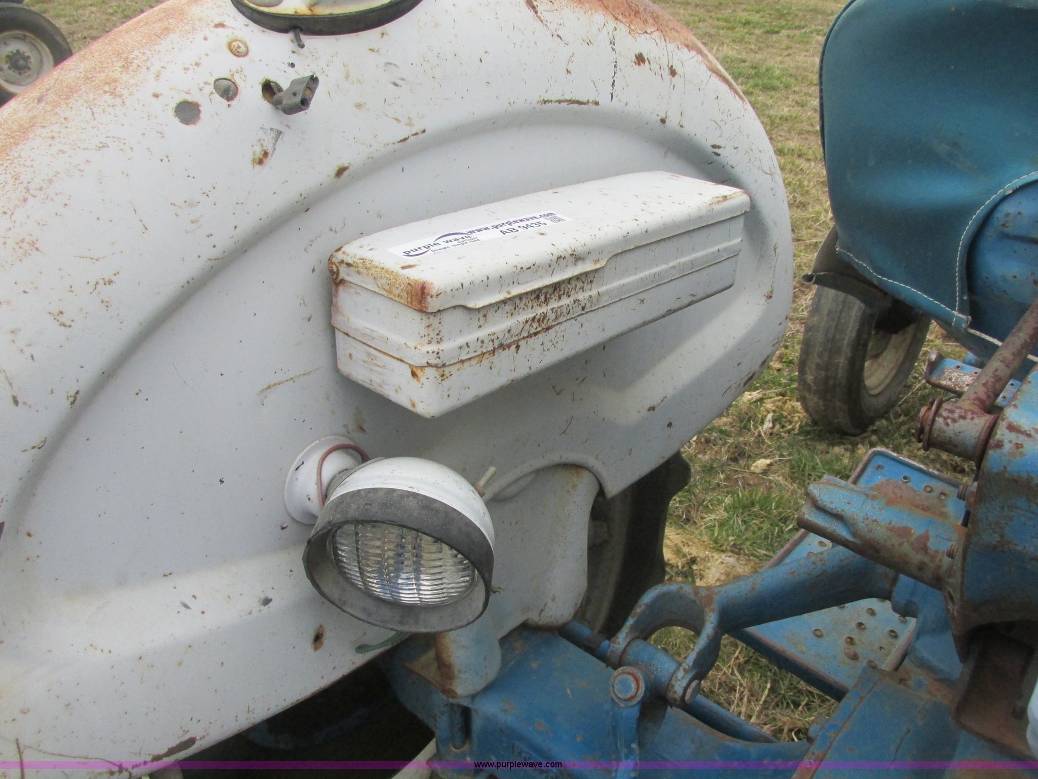 Purple Wave is selling a used Tractor in Missouri. This item is a Ford 3000 tractor with the following: 3,681 hours on meter, Ford three cylinder diesel engine, 8F-8R gears, Adjustable seat, Front and rear work lights, Toolbox on fender, Front brush guard bumper, Three point, Draw bar, 6.00-16 front tires, 13.6-28 rear tires, Paint scratched, Engine wiring burnt, Unit is inoperable due to fire damage