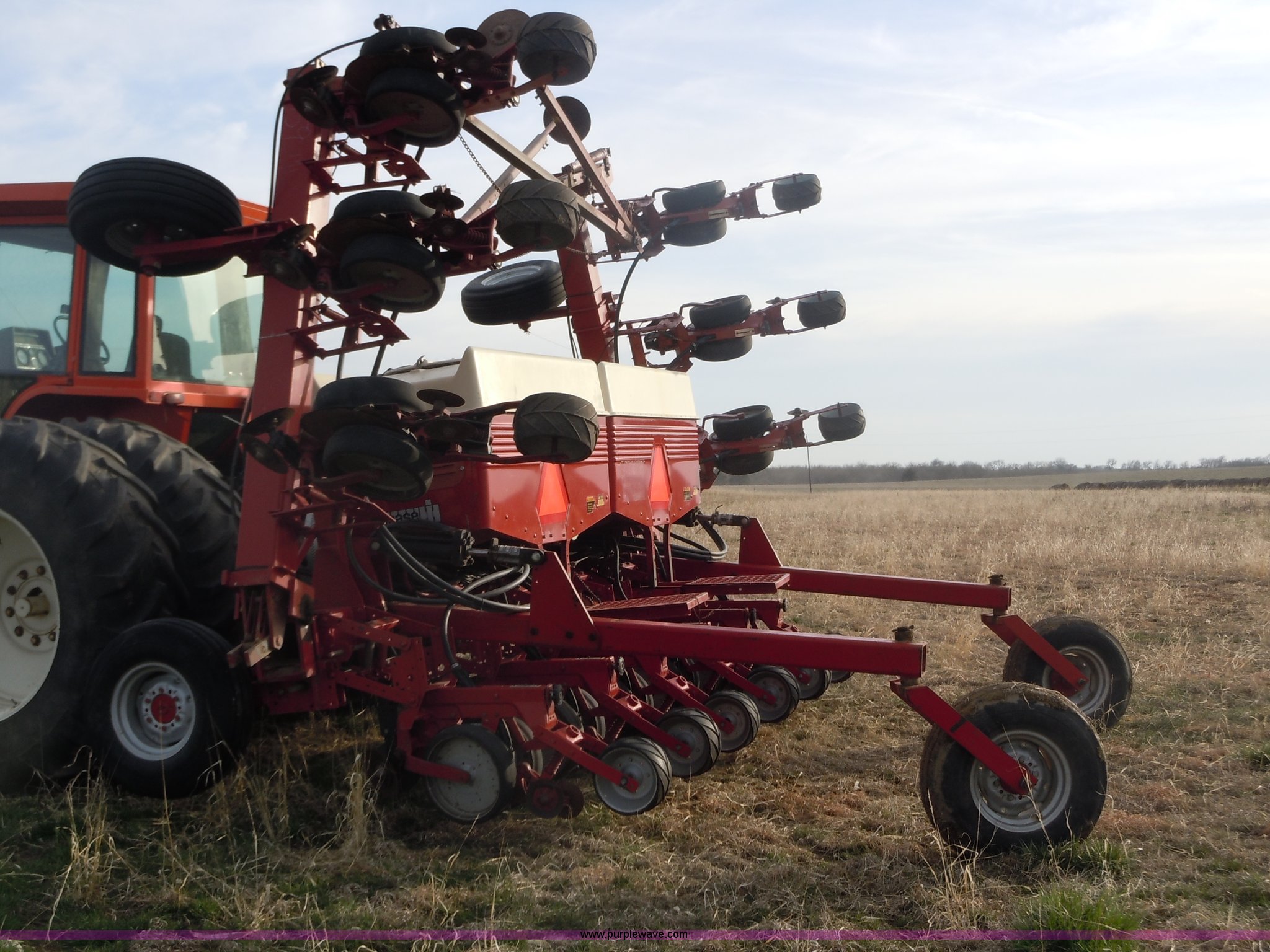 Purple Wave is selling a used Planter in Kansas. This item is a Case IH 900 Cyclo Air planter with the following: 12 row, 30" spacing, Two point mount, Hydraulic fold, No-till markers, Ground drive, (2) 15 bu. hoppers, Soybean drums, 1000 PTO, Pump and monitor included, 9.5L-14 tires, 400 acres on recently replaced opener disks, Serial JJC0018832