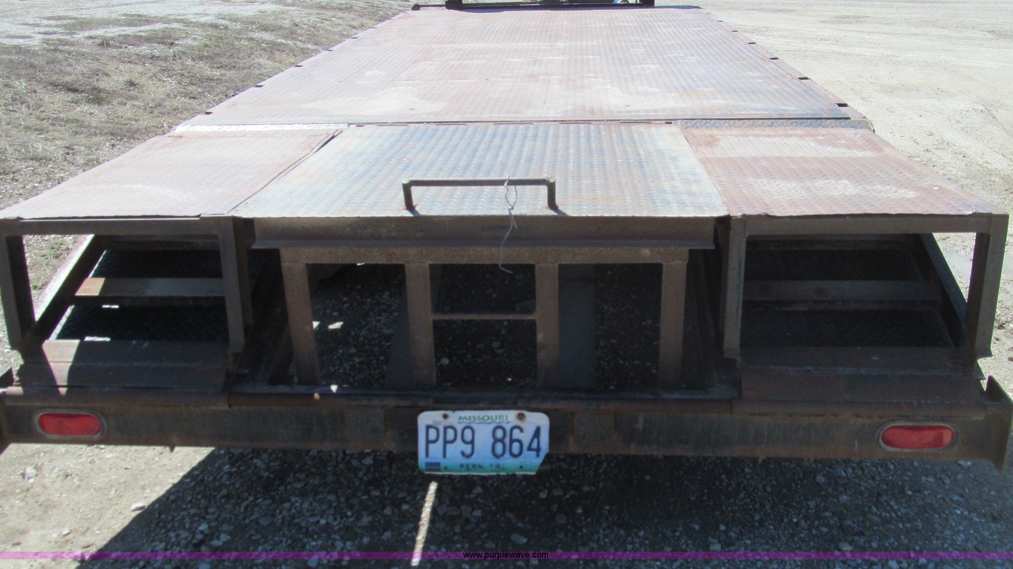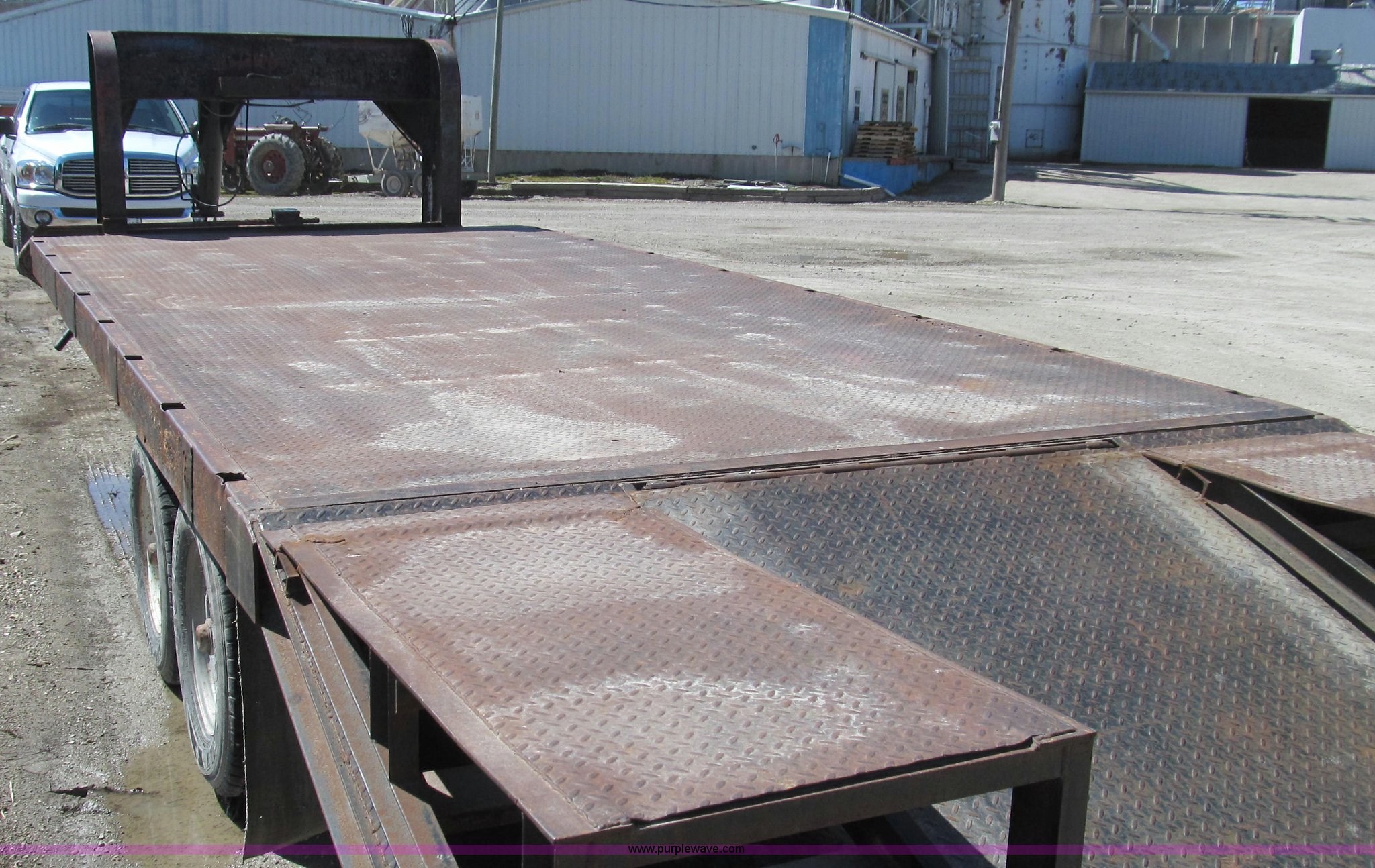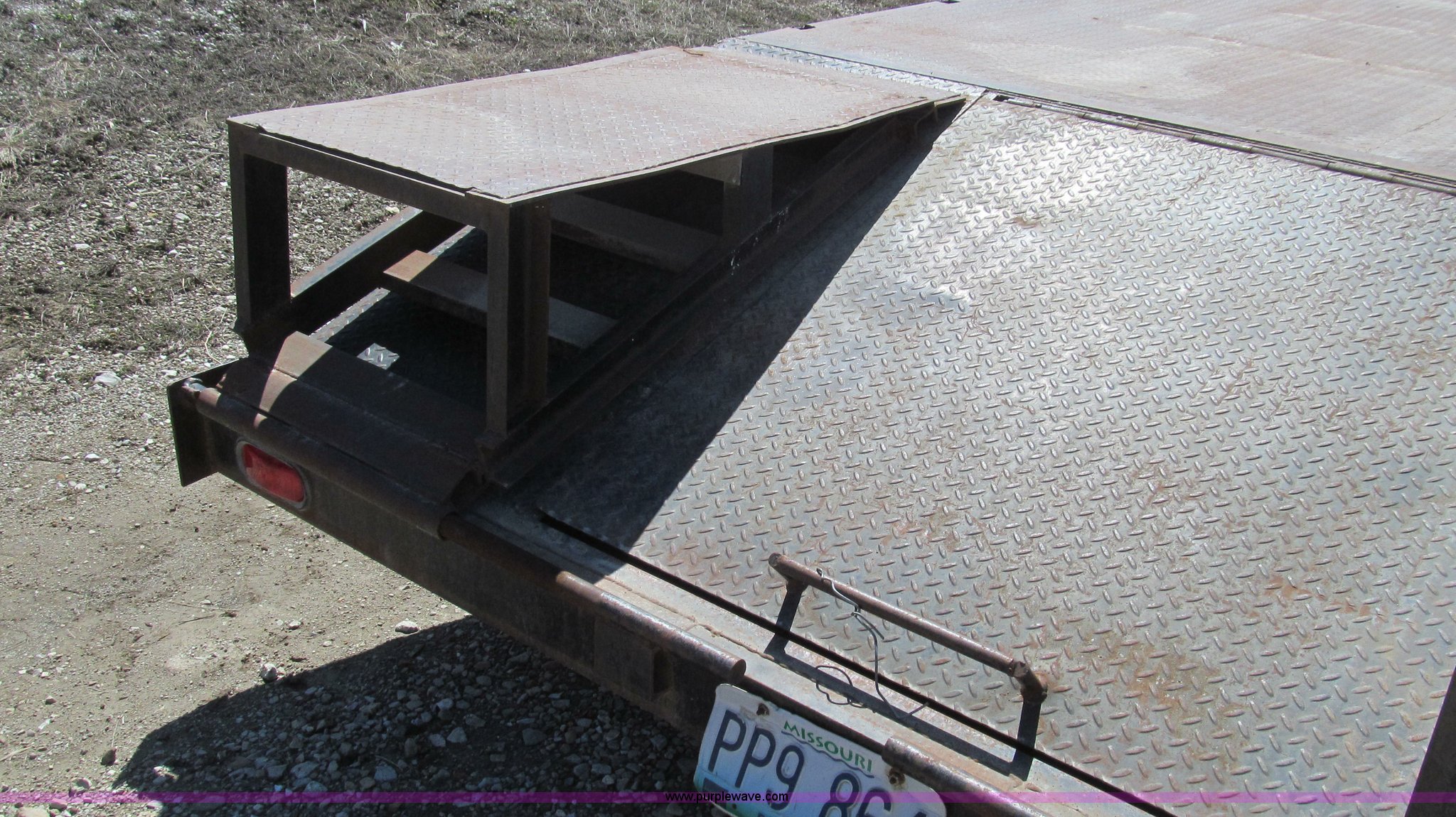 Purple Wave is selling a used Equip. Trailer in Missouri. This item is a 1976 Hillsboro gooseneck trailer with the following: 16'L main deck, 94"W, 52" deck ramp, 45" adjustable folding ramps, 45" center section lifts for rear deck extension, Expanded metal storage in nose, Spring suspension, Tandem axle, LT225/75R16 tires