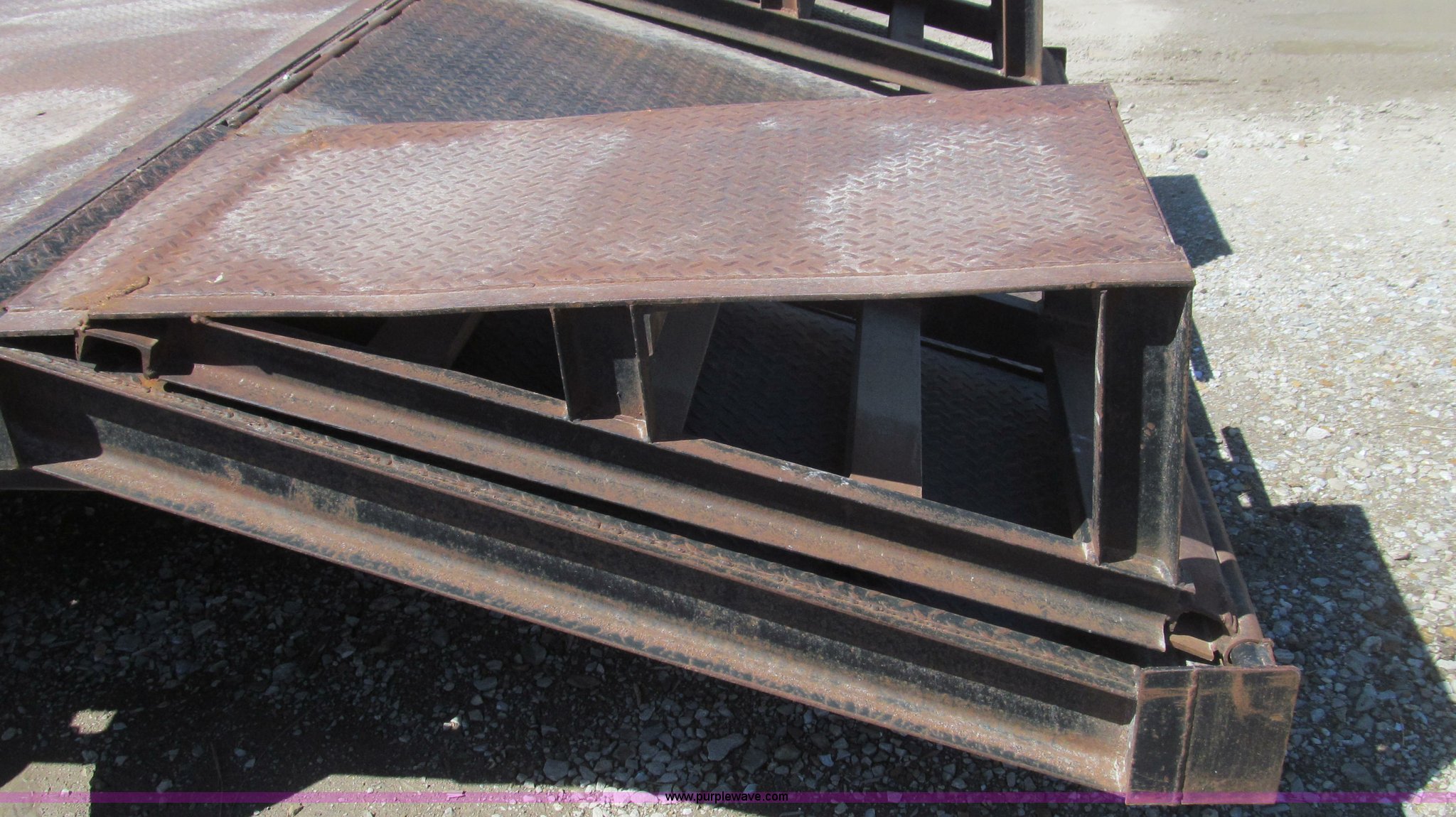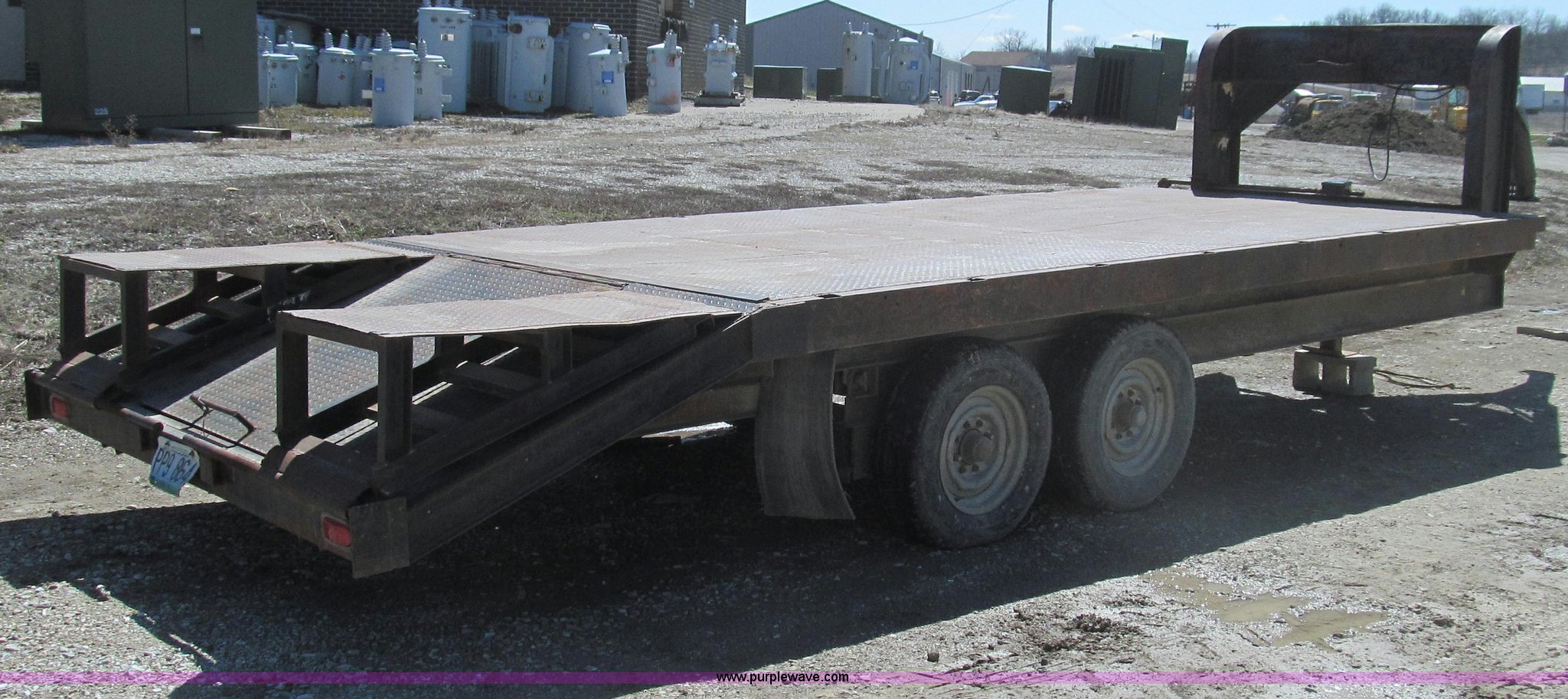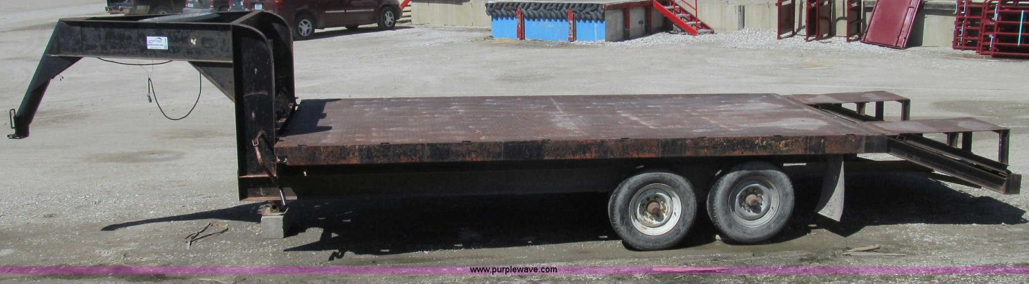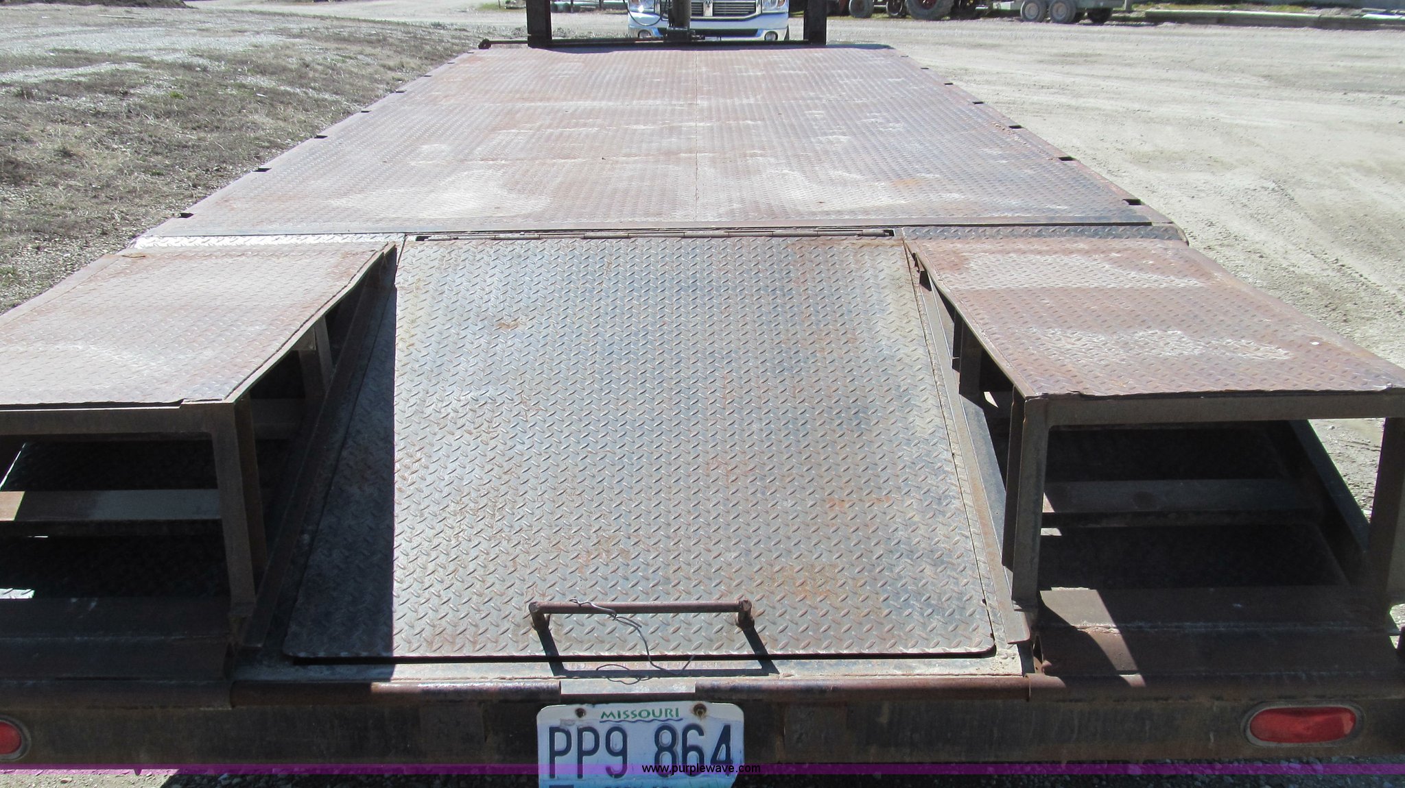 Purple Wave is selling a used Equip. Trailer in Missouri. This item is a 1976 Hillsboro gooseneck trailer with the following: 16'L main deck, 94"W, 52" deck ramp, 45" adjustable folding ramps, 45" center section lifts for rear deck extension, Expanded metal storage in nose, Spring suspension, Tandem axle, LT225/75R16 tires