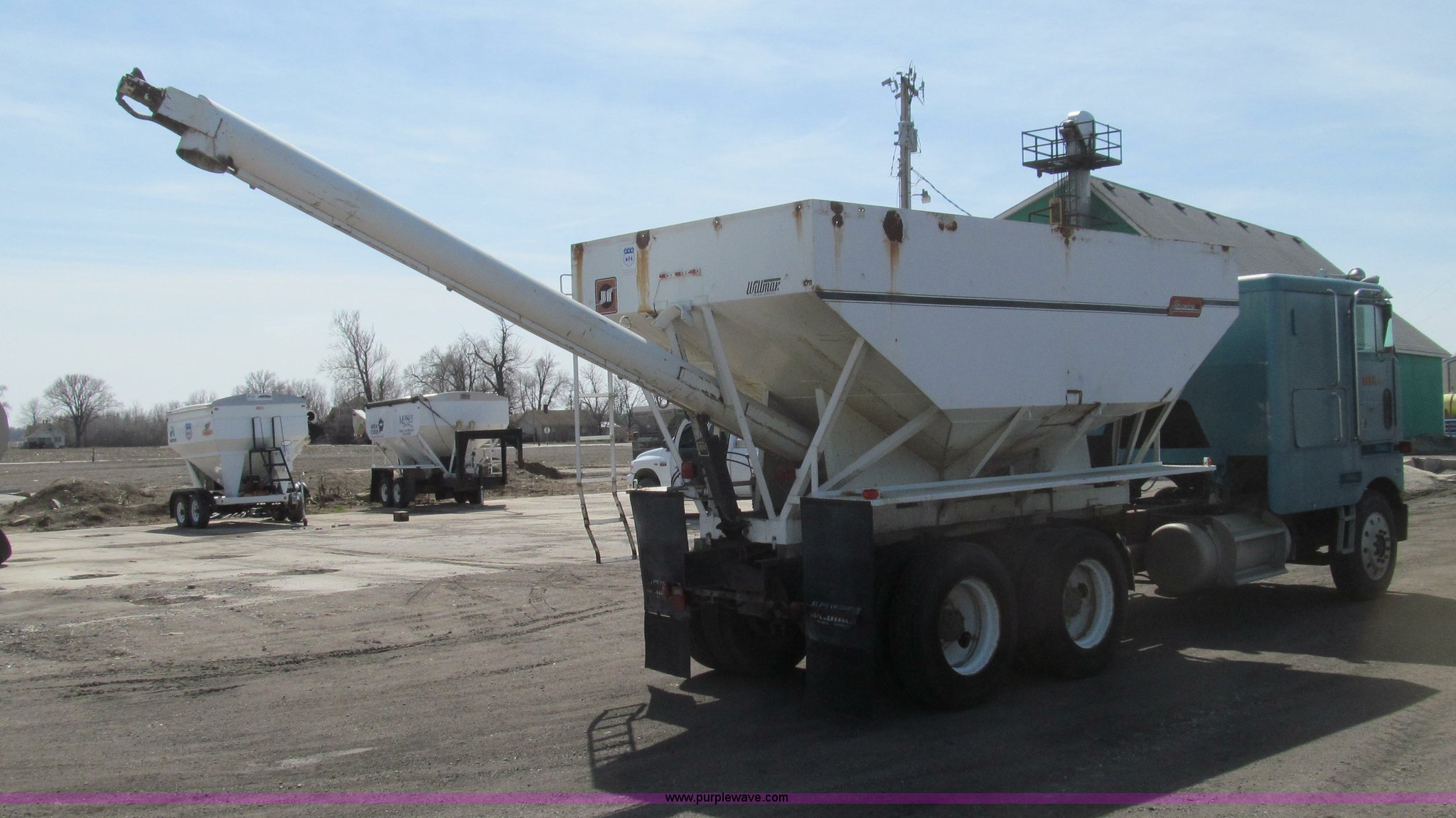 Purple Wave is selling a used Fertilizer or Feed Delivery Truck in Missouri. This item is a 1985 Peterbilt 362 dry tender truck with the following: 639,784 miles on odometer, Cummins NT 14.0L L6 diesel engine, Eaton Fuller 13 speed manual transmission, Twin screw, Heat, 48" sleeper, 1995 Willmar Loadrunner dry tender bed, 16 ton capacity, Dual compartment, Rear and front ladders, 20' stinger, Hydraulic raise and lower, Side controls,, Exterior visor, Chrome bumper, Dual 100 gallon fuel tanks, PTO, Air suspension, Air brakes, Aluminum wheels, 11R24.5 tires, GVWR 50,000 lbs