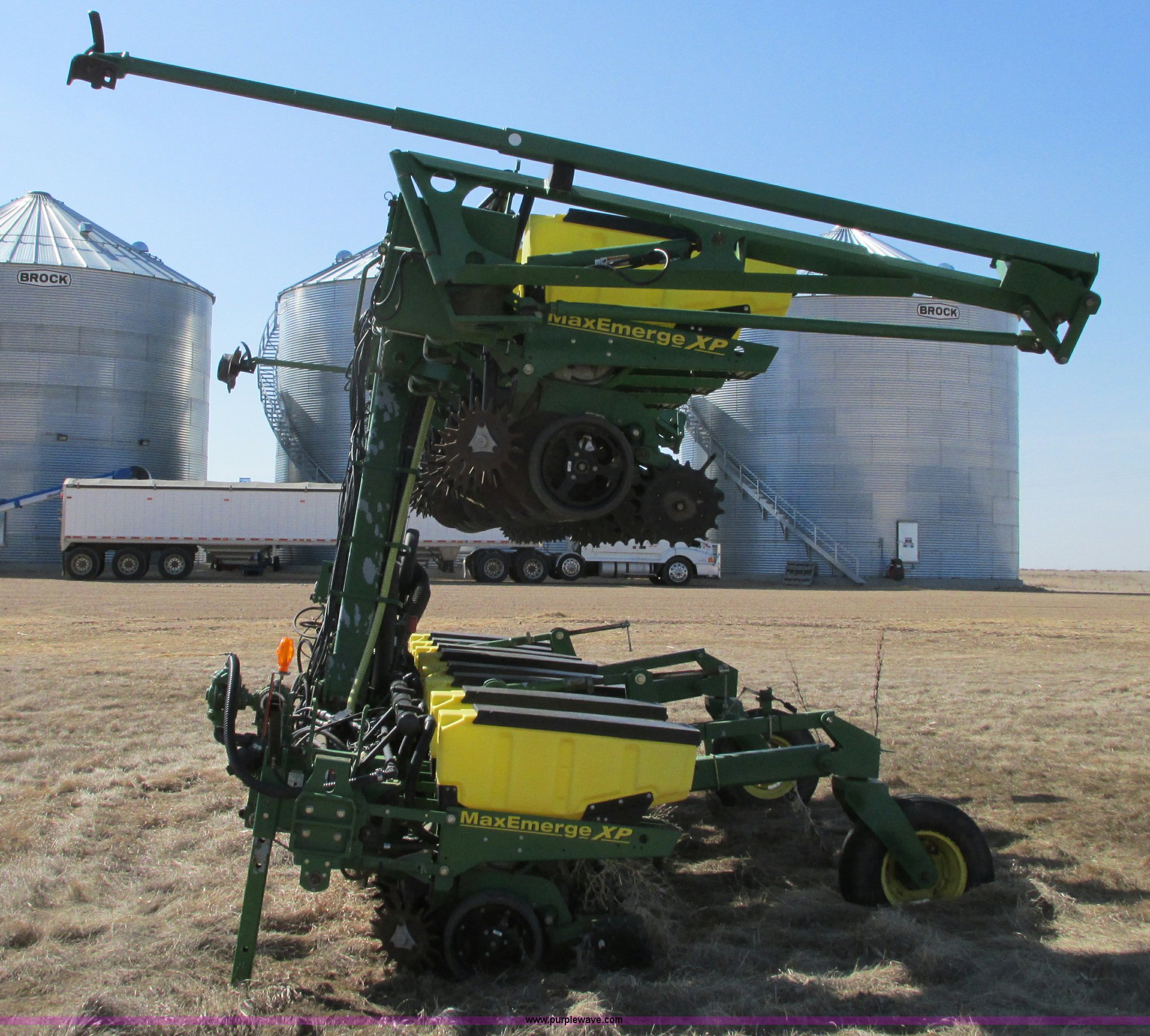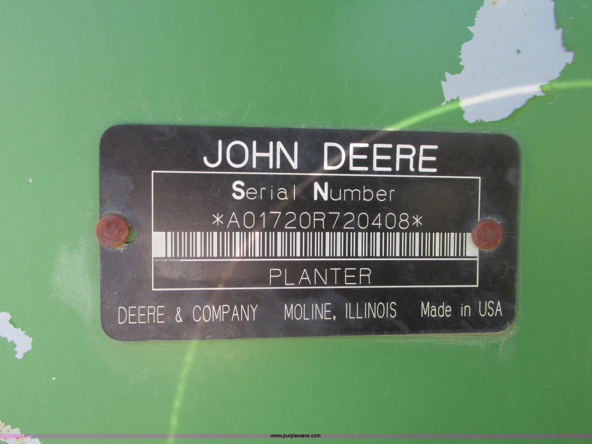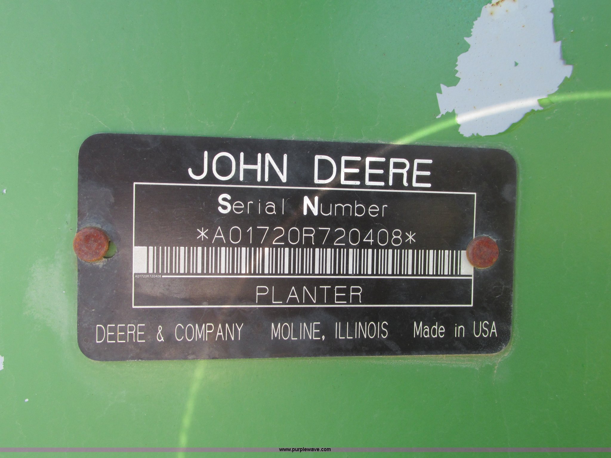 Purple Wave is selling a used Planter in South Dakota. This item is a John Deere 1720 Integral Stack-Fold planter with the following: 16 row, 30" spacing, Max Emerge XP row units, (3) sections, Hydraulic lift and fold, MudSmiths Cast Iron gauge wheels, Approx. 3,500 acres, Variable rate, Piston pump, Total tubular fertilizer system, Greenstar John Deere box monitor, Part# PF80444, Serial PGGV02E120326, Poly seed housings, Dawn coulters, Fold down marker arms, Three point, Hydraulic drive, Copper head closing wheels, Replaced two year ago, Blades replaced two year ago, Right marker wheel missing, Right rear tire flat, Serial A01720R720408