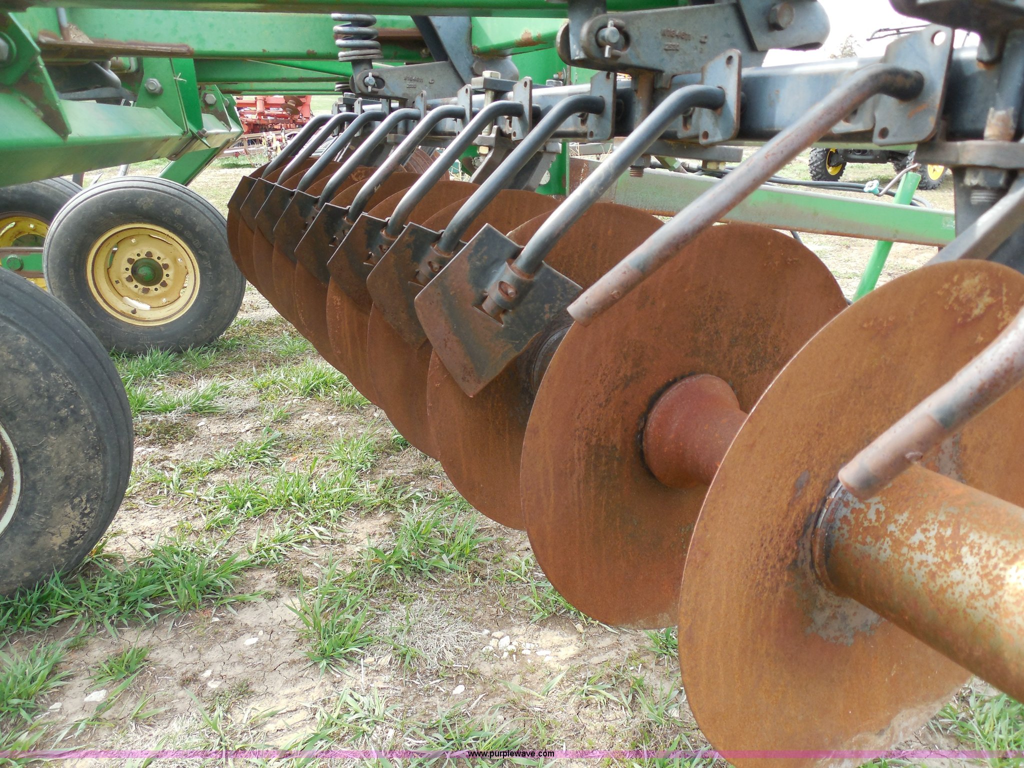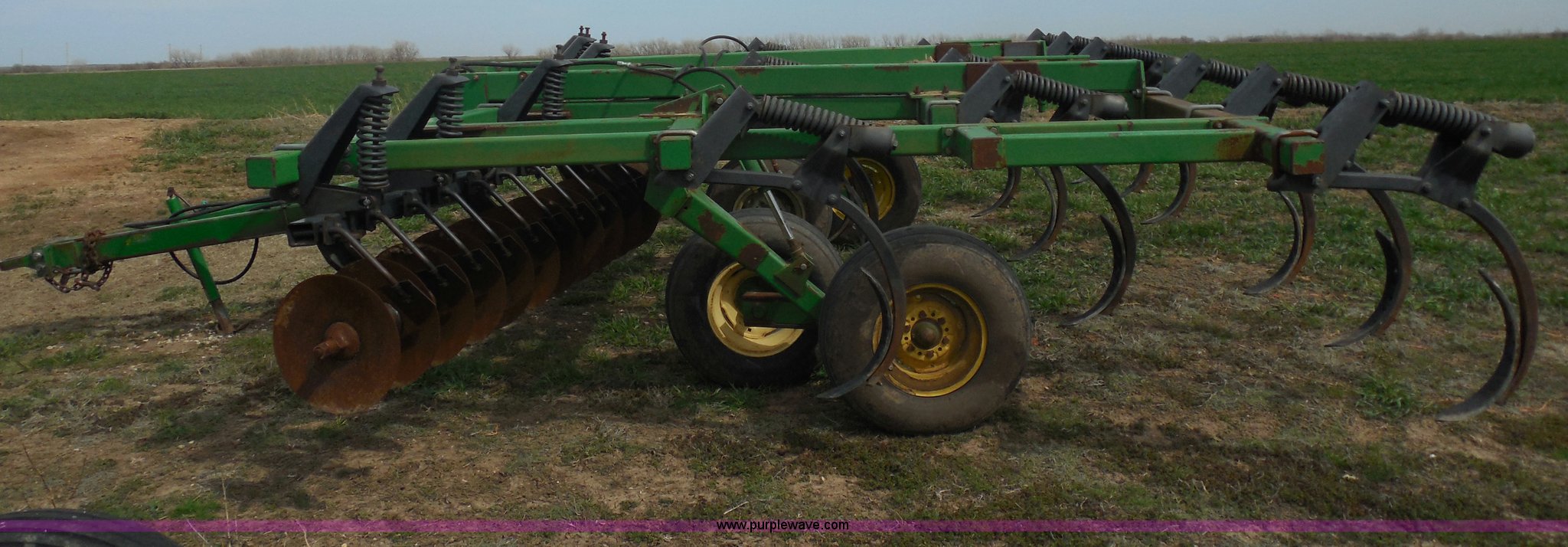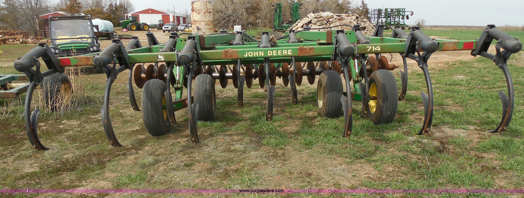 Purple Wave is selling a used Chisel in Kansas. This item is a John Deere 714 mulch tiller with the following: 13 shank, Approx. 16' work width, Hydraulic lift, Tru-depth shanks, 3" hard twisted shovels, (4) dolly wheels, 11L-15 tires, Structural weld repairs, Serial N00714X002909
