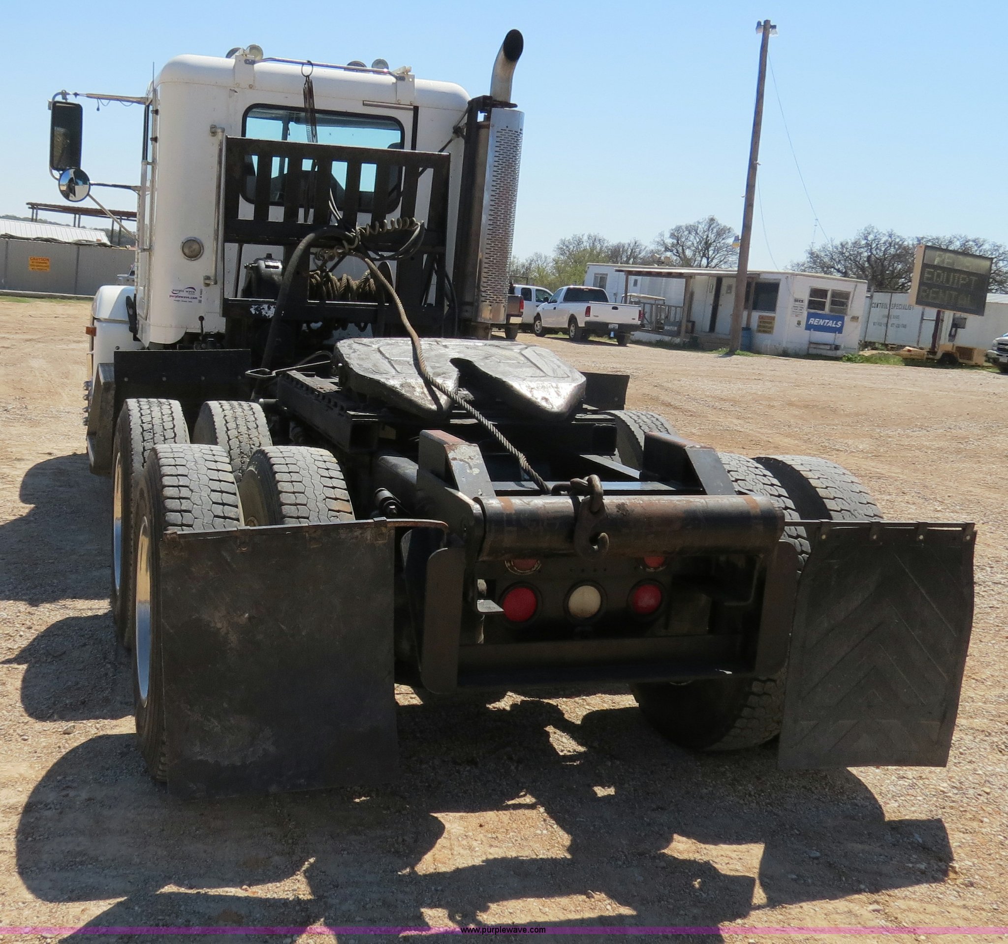1998 Freightliner FLD120 winch semi truck. 101,227 miles on odometer, Detroit Diesel Series 60 12.7L L6 diesel engine 470 HP, Eaton Fuller 10 speed manual transmission, Twin screw, AC and heat, Tilt, Cruise, Passenger daylight door, Telescoping steering wheel, Air suspension seat, Power mirrors, Heated mirrors, Air ride cab, Braden winch Model MS20HET, Hydraulic control, Serial 9101696, Rolling tailboard, Hydraulic line can be changed from winch to quick coupler for dump trailer, Exterior visor, Block heater, Air slide fifth wheel plate, Dual 100 gallon fuel tanks, Single rear exhaust stack, PTO, Wet kit, Air suspension, Air brakes, Jake brake, 11R22.5 tires, GVWR 52,000 lbs, FAWR 12,000 lbs, IAWR 20,000 lbs, RAWR 20,000 lbs. 1FUYDZYB1WL896357. View equipment video. Shipping quotes available. RECS. 4952 U.S. Highway 67. Rainbow, TX 76077