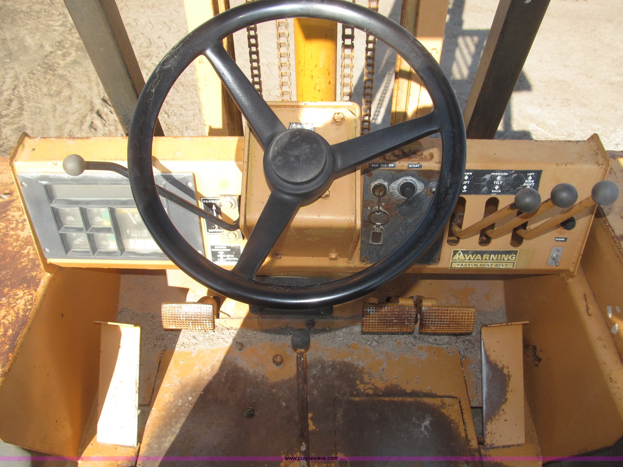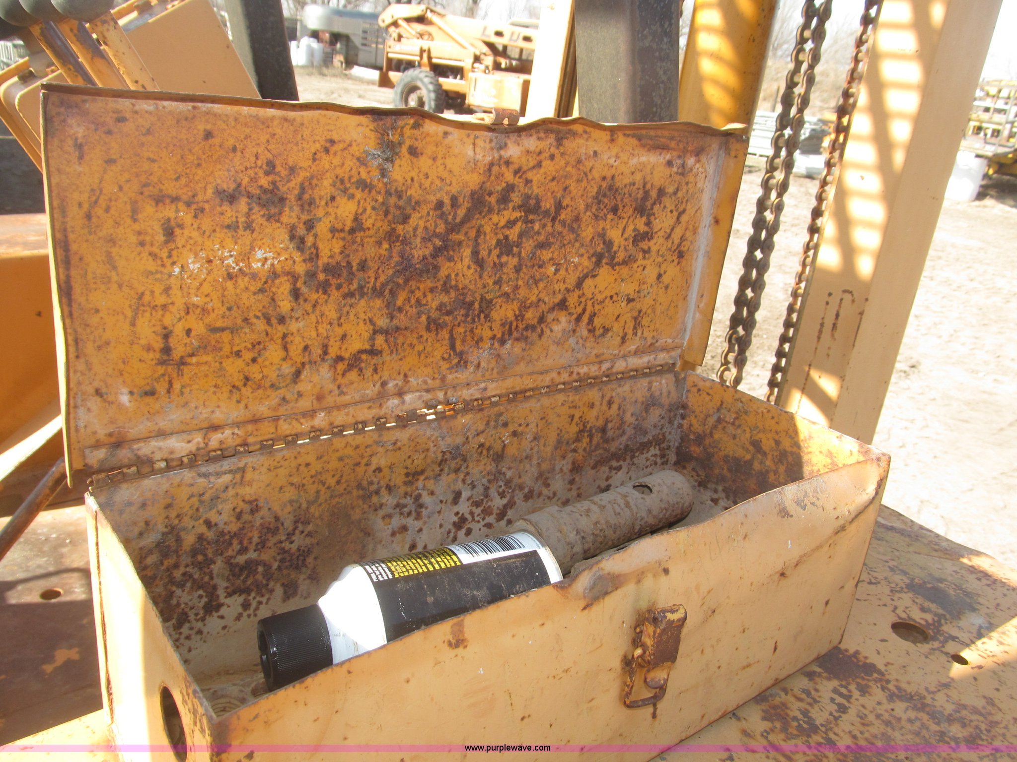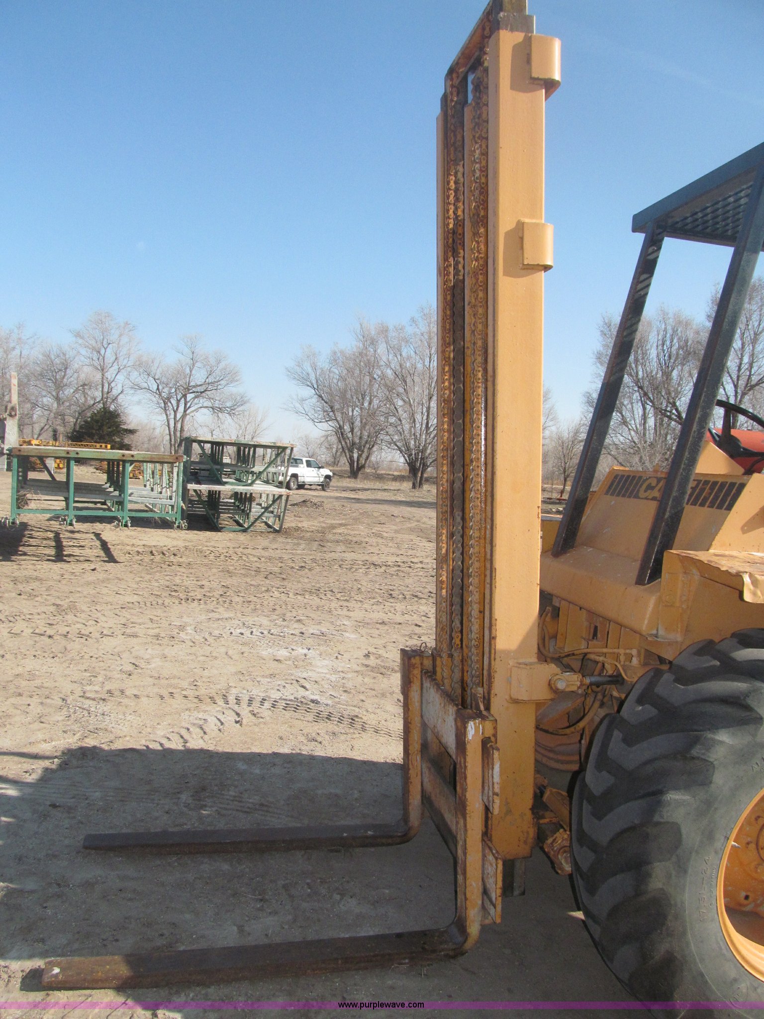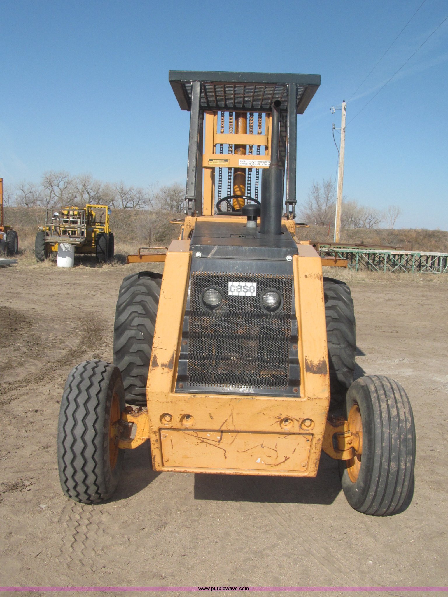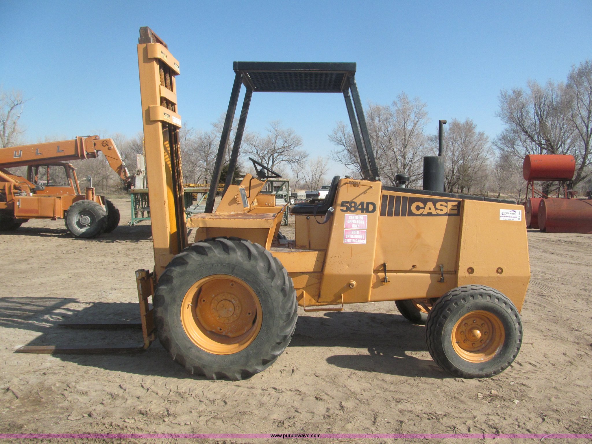 Purple Wave is selling a used Strt. Mast Rough Terr. Forklift in Nebraska. This item is a Case 584 Series D forklift with the following: 464 hours on meter, Case four cylinder diesel engine, Model G188D, 47 net HP, Power shuttle shift transmission, 4F-4R gears, Locking differential, ROPS, Three stick mast operation, Side shift, 4,000 lbs lift capacity at 15'H with 24" load center, 2,500 lbs lift capacity at 21'H with 24" load center, Three boom sections, 4'L forks, Side shift, Block heater, Clutch disconnect, Two side operator access, Seat belt, Foot throttle and brake pedals, Rear work lights, Horn, Fender mounted toolbox, Contents not included, Adjustable forks, Firestone 17.5L-24 front tires, 11L-16 rear tires, Interior/exterior cosmetic damage, Manual box missing door, No manual