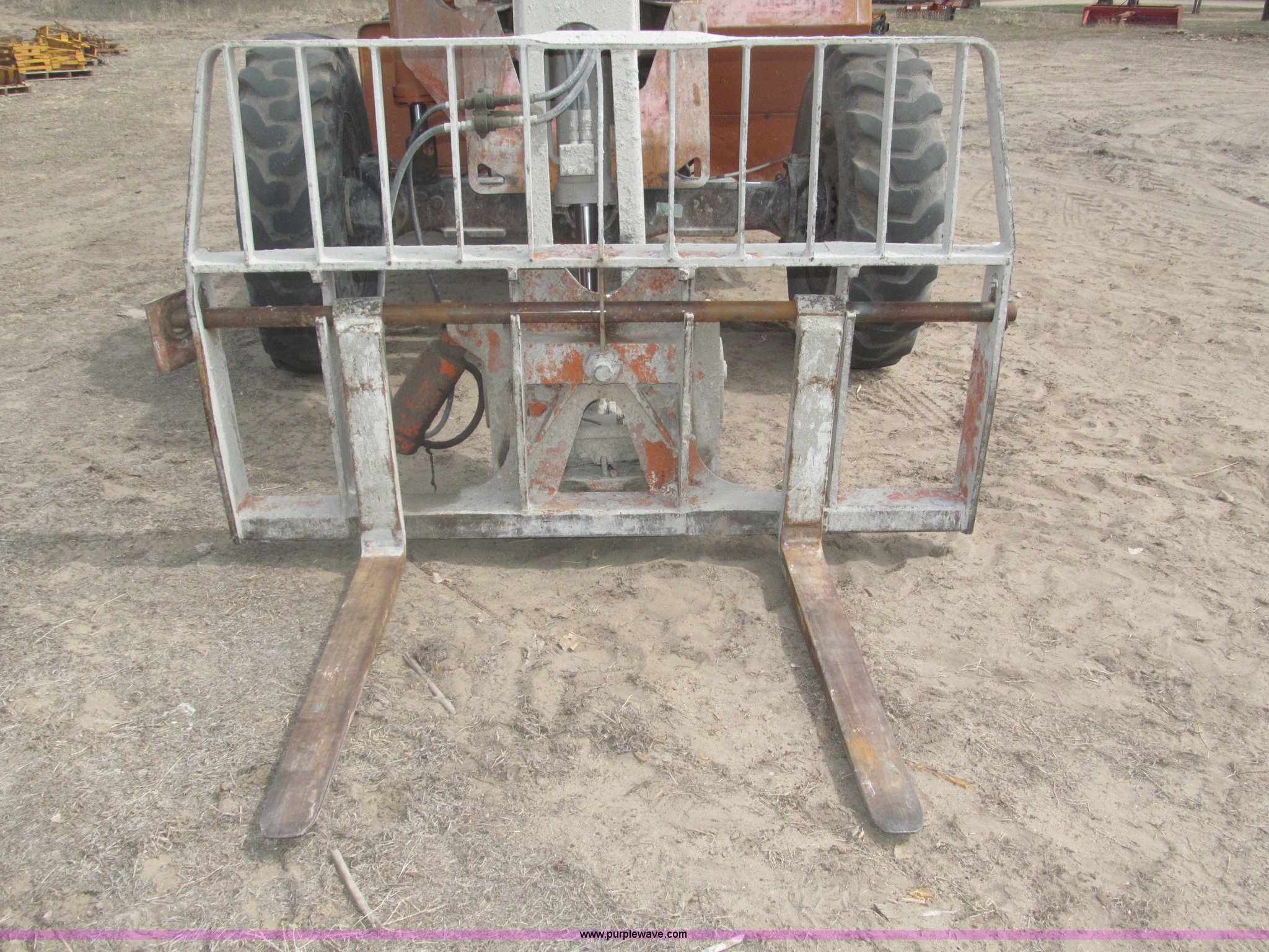 1996 Lull 644B-37 Highlander series telehandler. 3,699 hours on meter, John Deere four cylinder diesel engine, Hydrostatic transmission 4F-4R gears, Four wheel drive, Crab steer, Circle steer, Four wheel steer, ROPS, 37' maximum lift height, 25' maximum forward reach, 6,000 lbs maximum lift capacity at 24" on center, 42"L forks, Joystick controls, Tilt carriage 74"W x 47"H, Hydraulic leveling, Boom and tilt level indicators, Transmission DE clutch, Seat belt, Backup alarm, 13.00-24 calcium filled tires, 21,340 lbs. base operating weight, Spicer front axle serial 80759, Spicer rear axle serial 80767, Rear oscillation lock engages at high idle Light indicator on dash, One foot pedal broken, Cab mounted mirror cracked, Serial MAR96V12N17-390. View equipment video. Shipping quotes available. M & D Masonry Inc.. 3023 Plum Creek Parkway. Lexington, NE 68850
