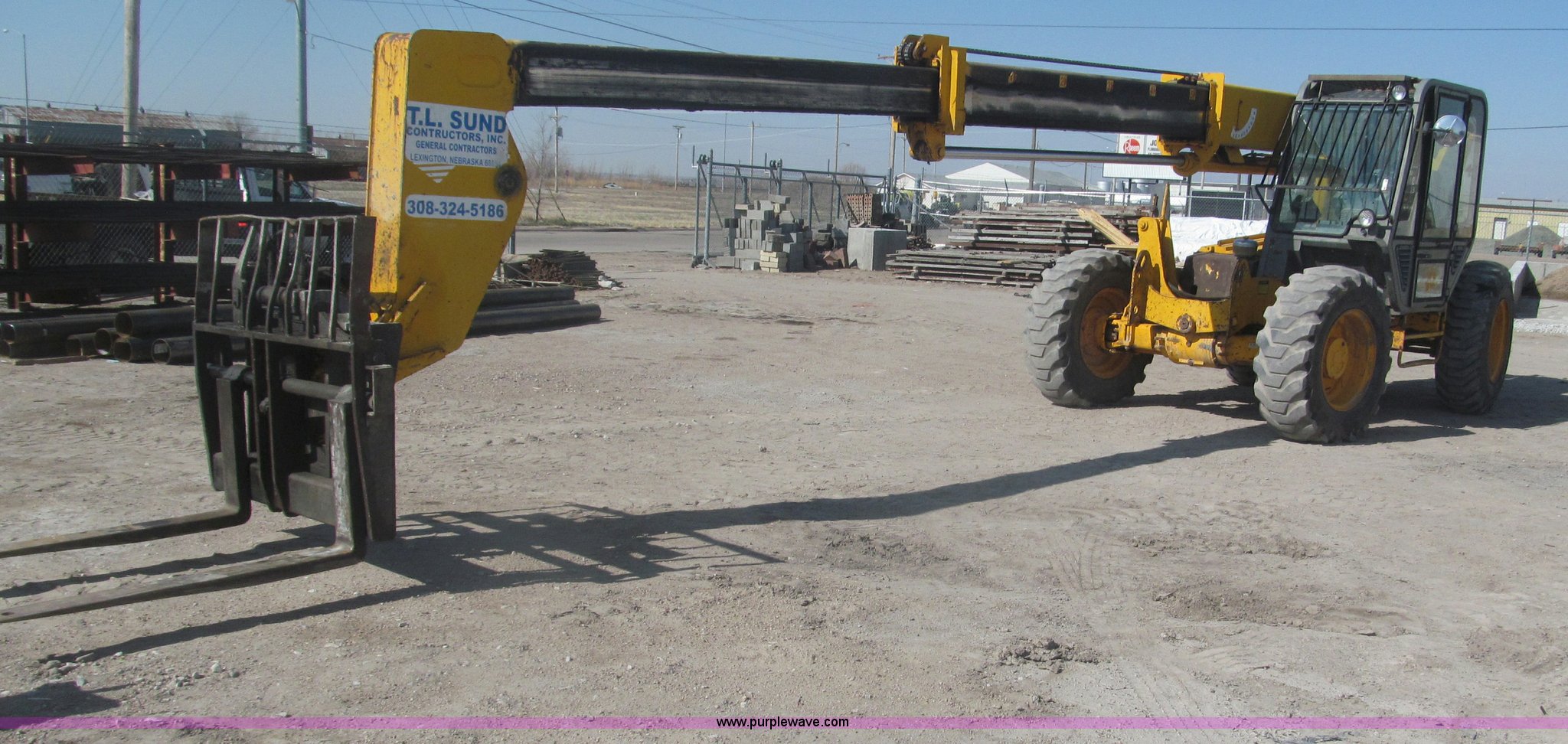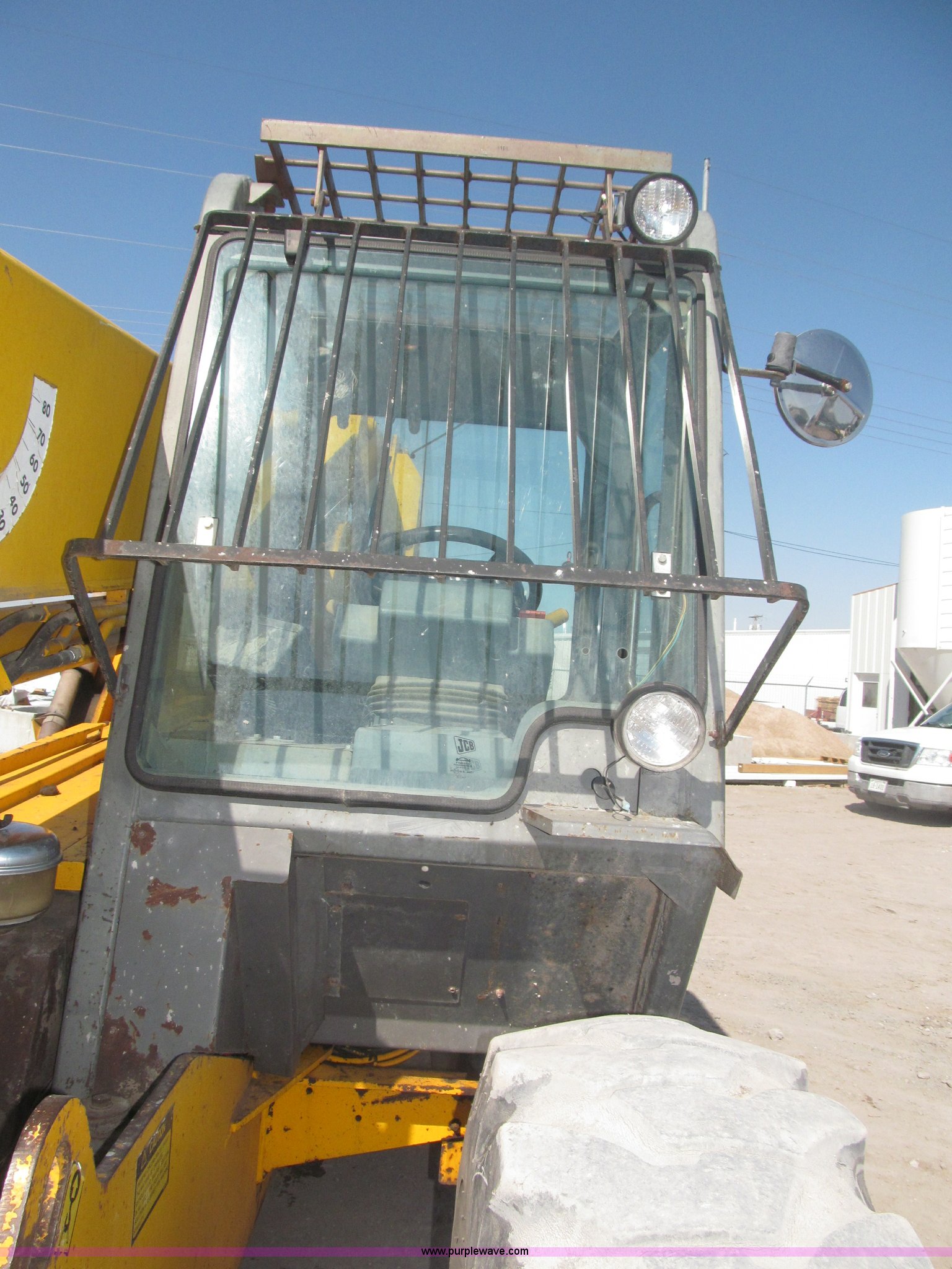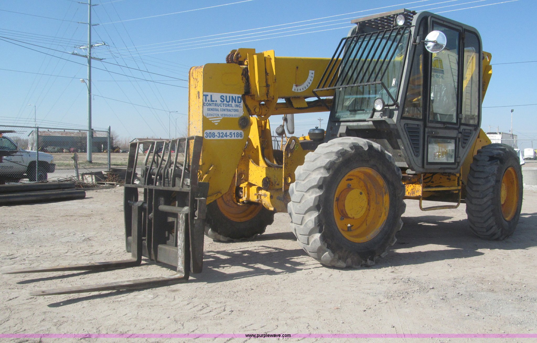 1995 JCB 506B telehandler. 7,619 hours on meter, Perkins four cylinder diesel engine, Hydrostatic transmission 4F-4R gears, Serial 453096100645, Crab steer, Four wheel steer, Four wheel drive, Cab, Heat Inoperable, Cab fan, Tilt , Spring suspension seat, 6,000 lbs maximum lift capacity, Three boom sections, 47"L x 4 3/4"W forks 2,800 lbs individual fork rating, Tilt carriage 51"W x 44"H, Rotating carriage, Hydraulic leveling, Tilt and angle indicators, Front and rear work lights, Quick attach, Seat belt, 15.5-25 calcium filled tires, 19,500 lbs. base operating weight, Hydraulic boom lines replaced three years ago, Tachometer inoperable, No load chart, Rear tires replaced two years ago , Hydraulic leak under cab, Operator's seat damaged, Hydraulic leak on tilt carriage, Carriage backrest bent, Key broken off in ignition, One light is loose, Serial SLP506B0SE0574337. View equipment video. Shipping quotes available. TL Sund Constructors Inc.. 707 Ontario. Lexington, NE 68850