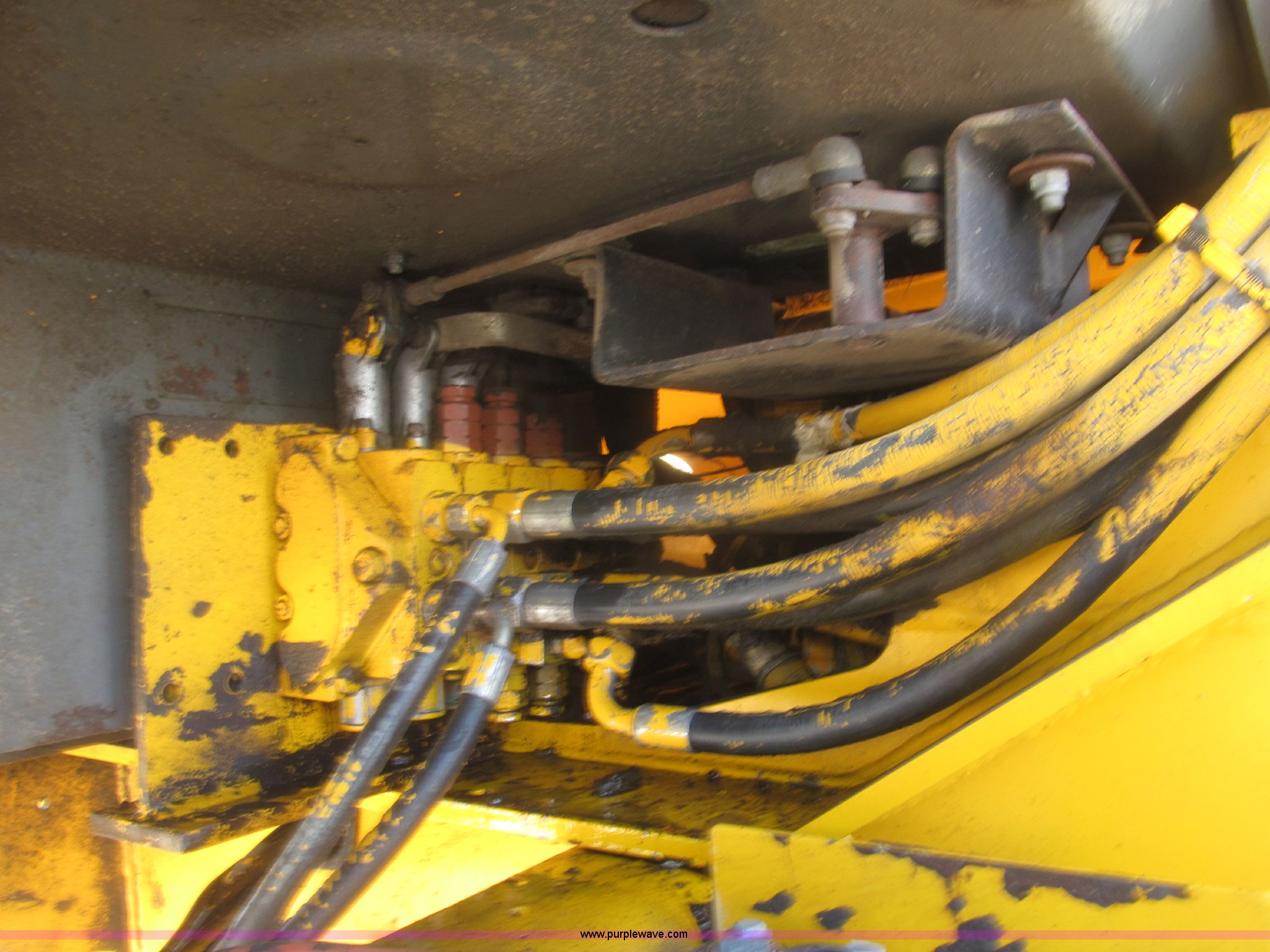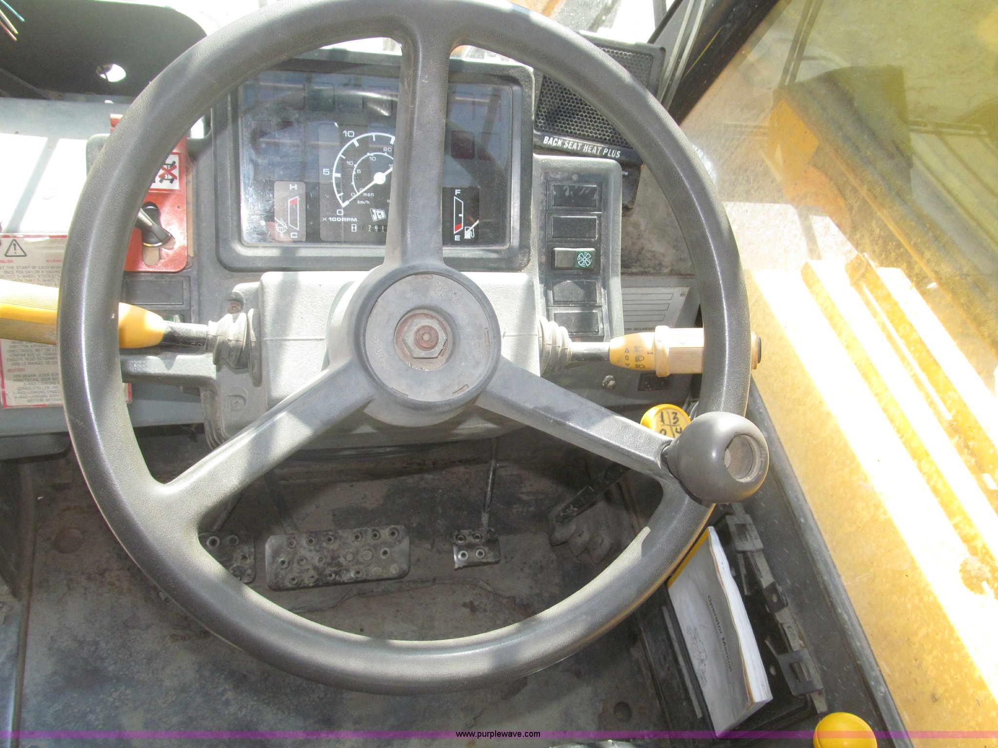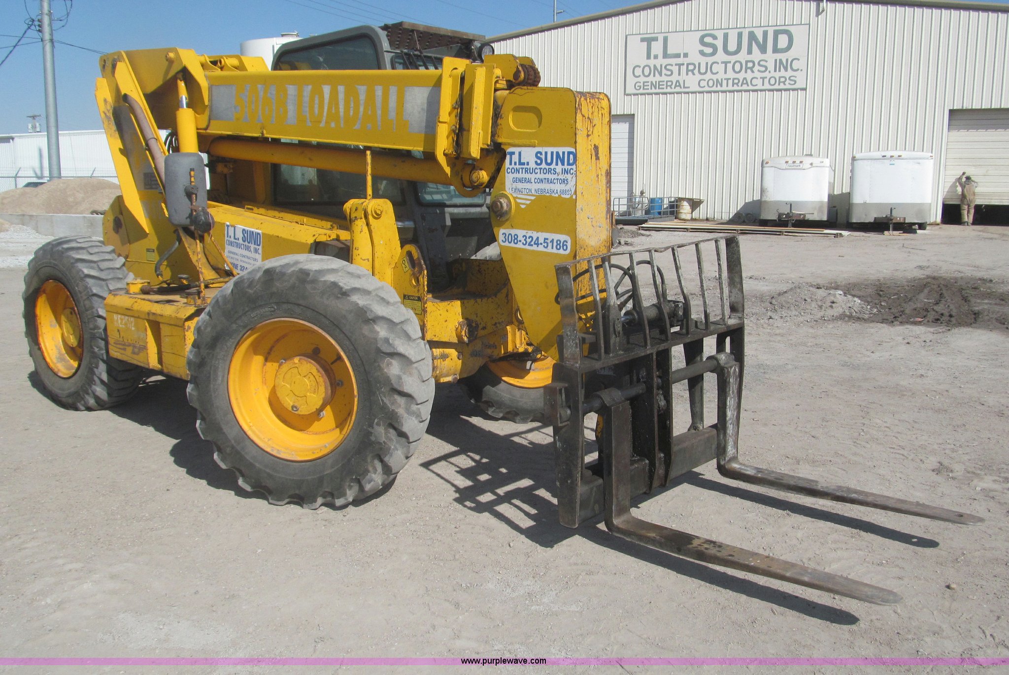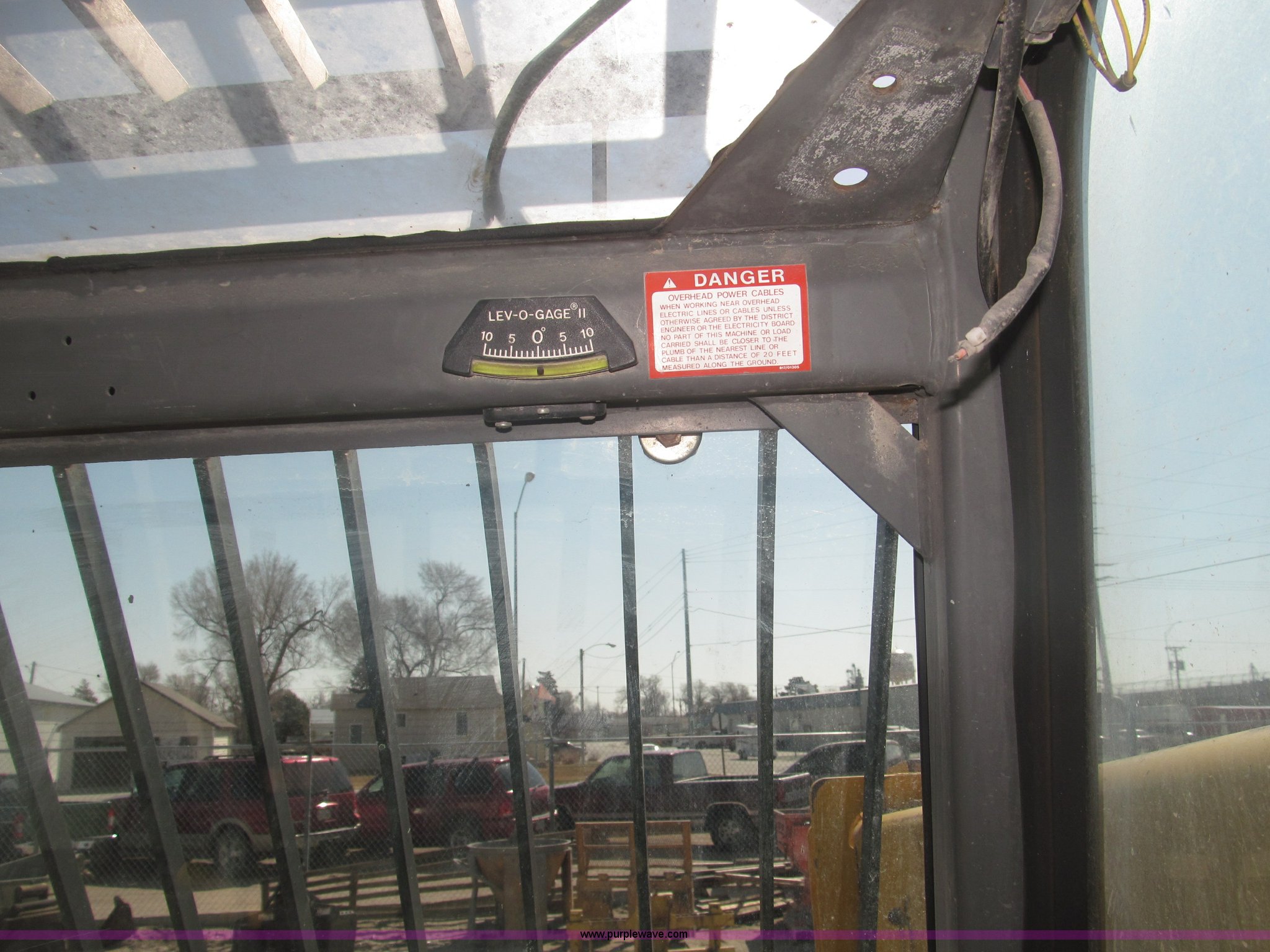 Purple Wave is selling a used Telehandler in Nebraska. This item is a 1995 JCB 506B telehandler with the following: 7,619 hours on meter, Perkins four cylinder diesel engine, Hydrostatic transmission, 4F-4R gears, Serial 453096100645, Crab steer, Four wheel steer, Four wheel drive, Cab, Heat, Inoperable, Cab fan, Tilt, Spring suspension seat, 6,000 lbs maximum lift capacity, Three boom sections, 47"L x 4 3/4"W forks, 2,800 lbs individual fork rating, Tilt carriage, 51"W x 44"H, Rotating carriage, Hydraulic leveling, Tilt and angle indicators, Front and rear work lights, Quick attach, Seat belt, 15.5-25 calcium filled tires, 19,500 lbs. base operating weight, Hydraulic boom lines replaced three years ago, Tachometer inoperable, No load chart, Rear tires replaced two years ago, Hydraulic leak under cab, Operator's seat damaged, Hydraulic leak on tilt carriage, Carriage backrest bent, Key broken off in ignition, One light is loose, Serial SLP506B0SE0574337