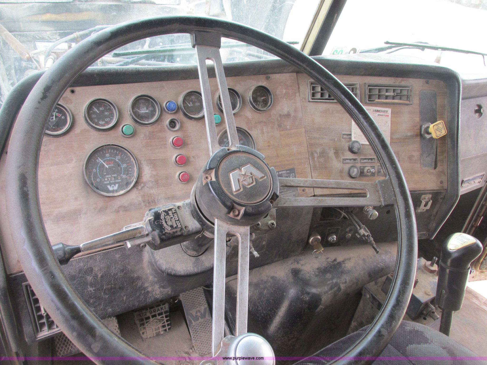 Purple Wave is selling a used Construction Dump Truck in Missouri. This item is a 1989 Western Star 4864F dump truck with the following: 429,500 miles on odometer, Caterpillar 3306B 10.5L L6 diesel engine, Eaton Fuller Road Ranger nine speed manual transmission, AC and heat, AM/FM/cassette, Air suspension seat, 15'L bed, Three stage hoist, Rear hydraulic hook ups, Snow plow mount, No plow, Air latch tailgate, Exterior visor, 75 gallon fuel tank, PTO, Spring suspension, Air brakes, Pintle hitch, 11R24.5 tires, Weak hoist, Step loose, Bed rusted, Cosmetic damage to hood and cab, Weak battery, Some leaks