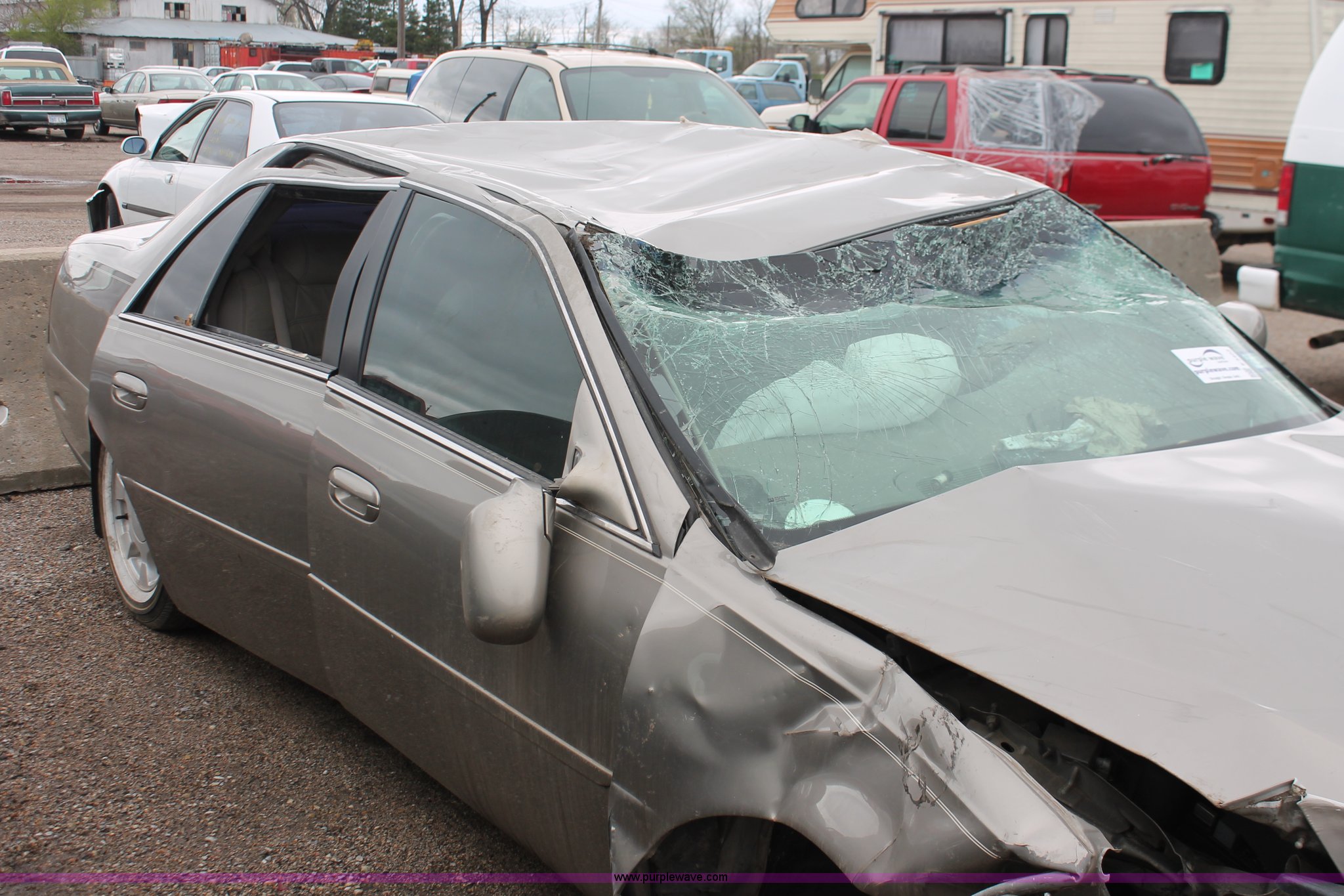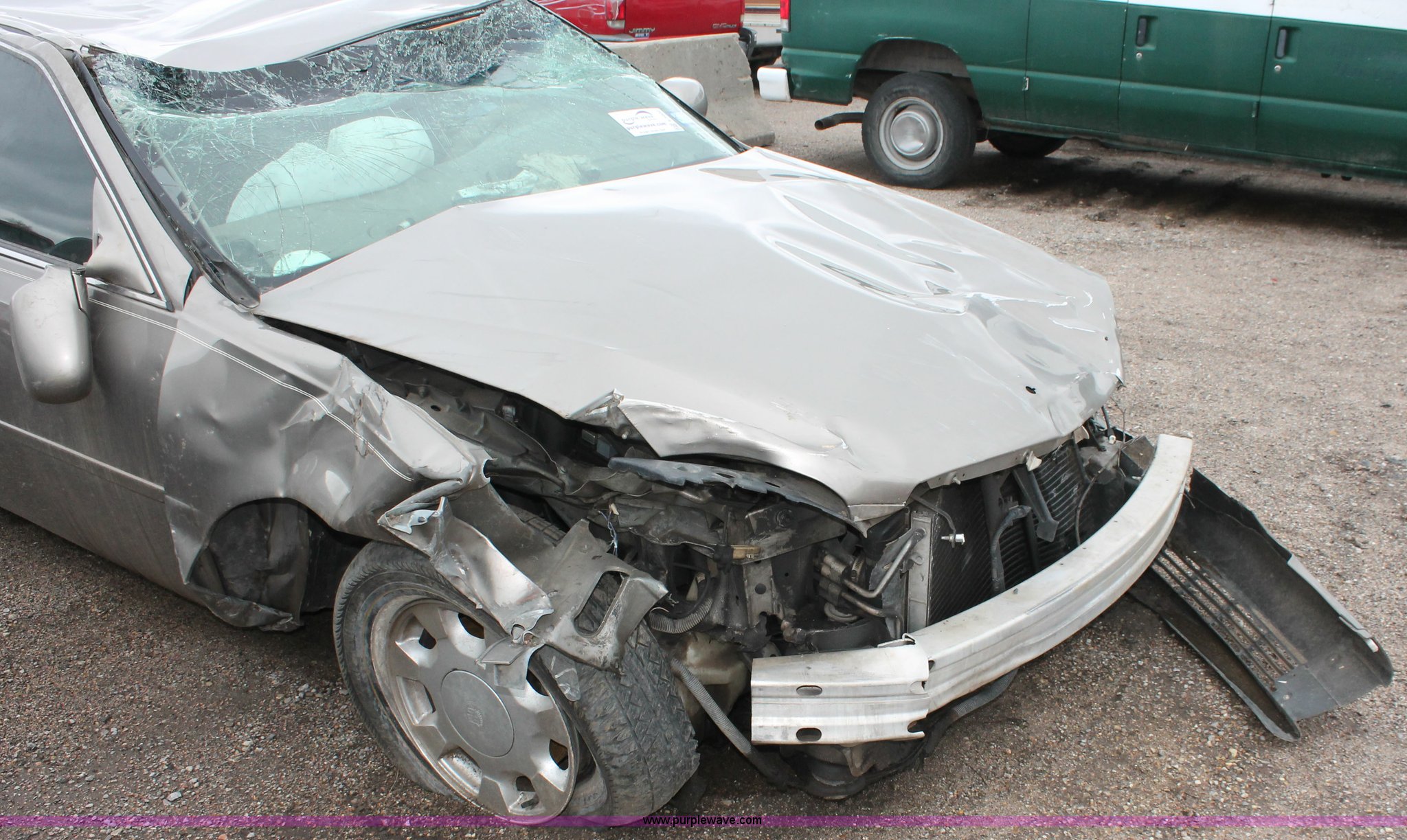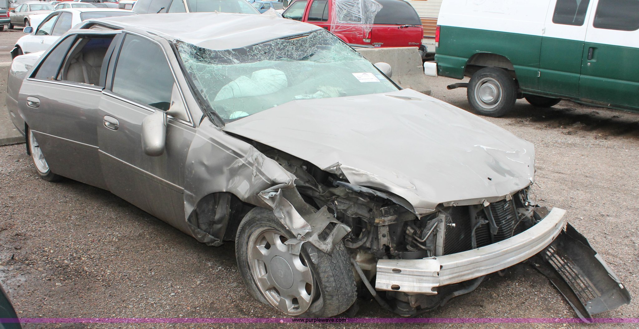 Purple Wave is selling a used Wrecked and Abandoned in Kansas. This item is a 2000 Cadillac DeVille with the following: Unknown miles on odometer, 4.6L V8 DOHC 32V gas engine, Automatic transmission, Leather interior, P235/60R16 tires, Flat tires, Interior damage, Air bags deployed, Exterior body damage, Front end damage, Roof damage, Passenger door hinge damaged, Case# 13C010638