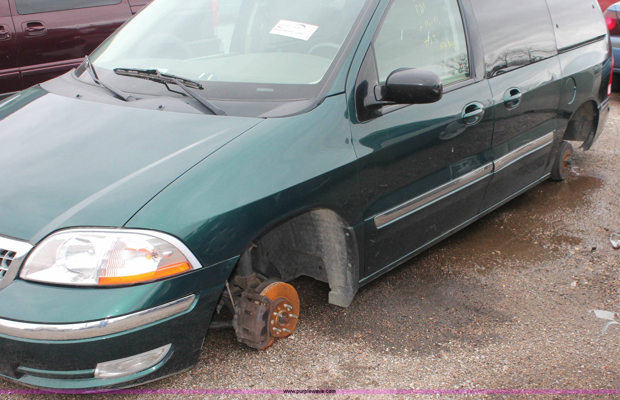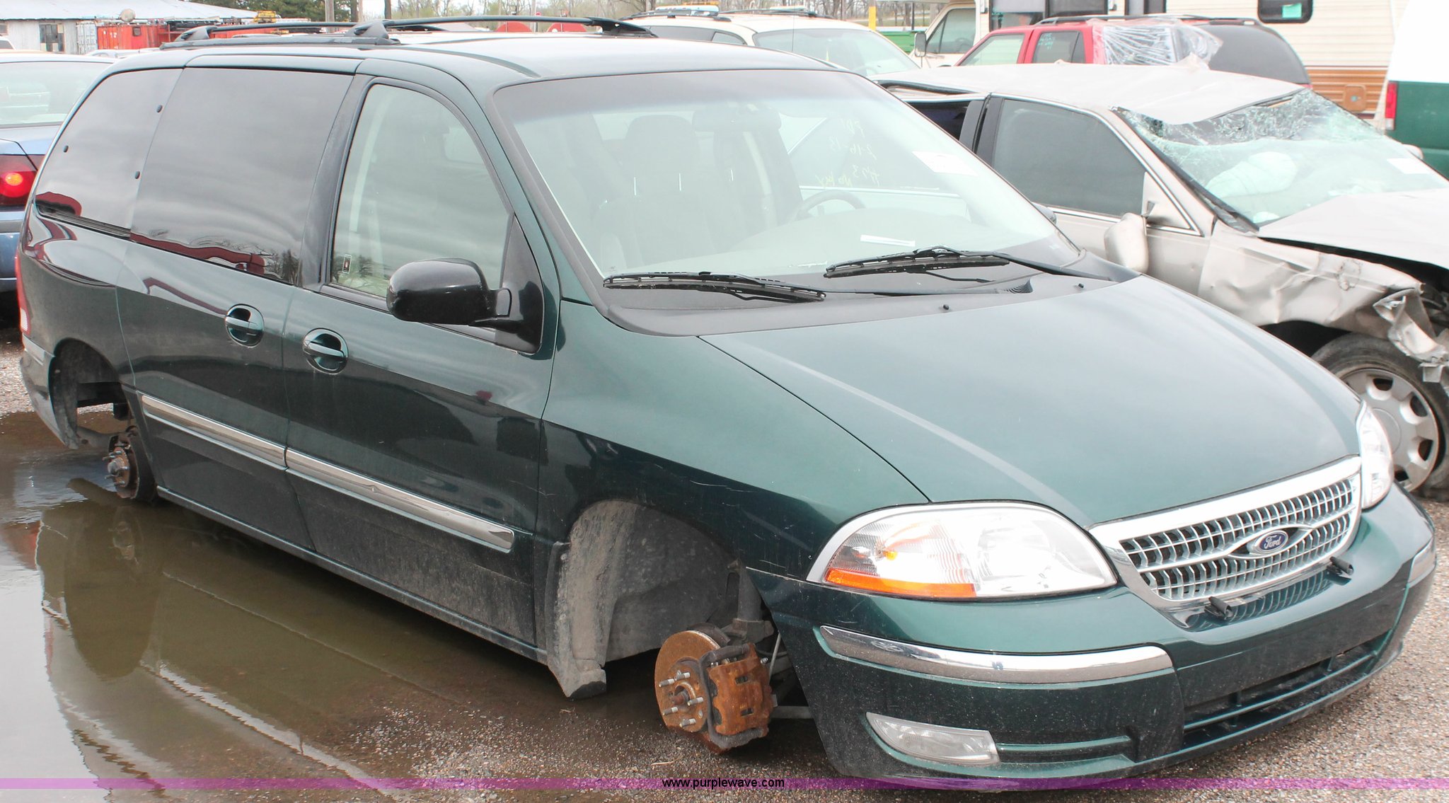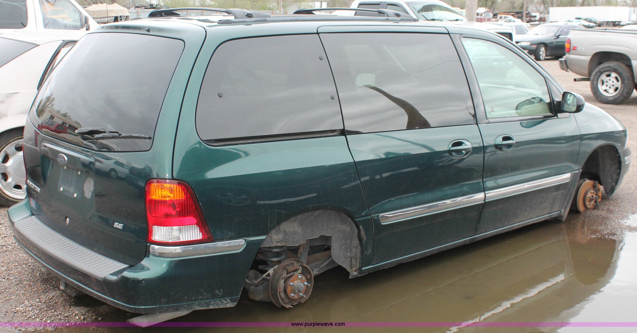 Purple Wave is selling a used Wrecked and Abandoned in Kansas. This item is a 2000 Ford Windstar SE van with the following: Unknown miles on odometer, 3.8L V6 OHV 12V gas engine, Automatic transmission, AM/FM/CD, Interior damage, Missing wheels and tires, Exterior body damage, No rear seats, Case# 13C502526