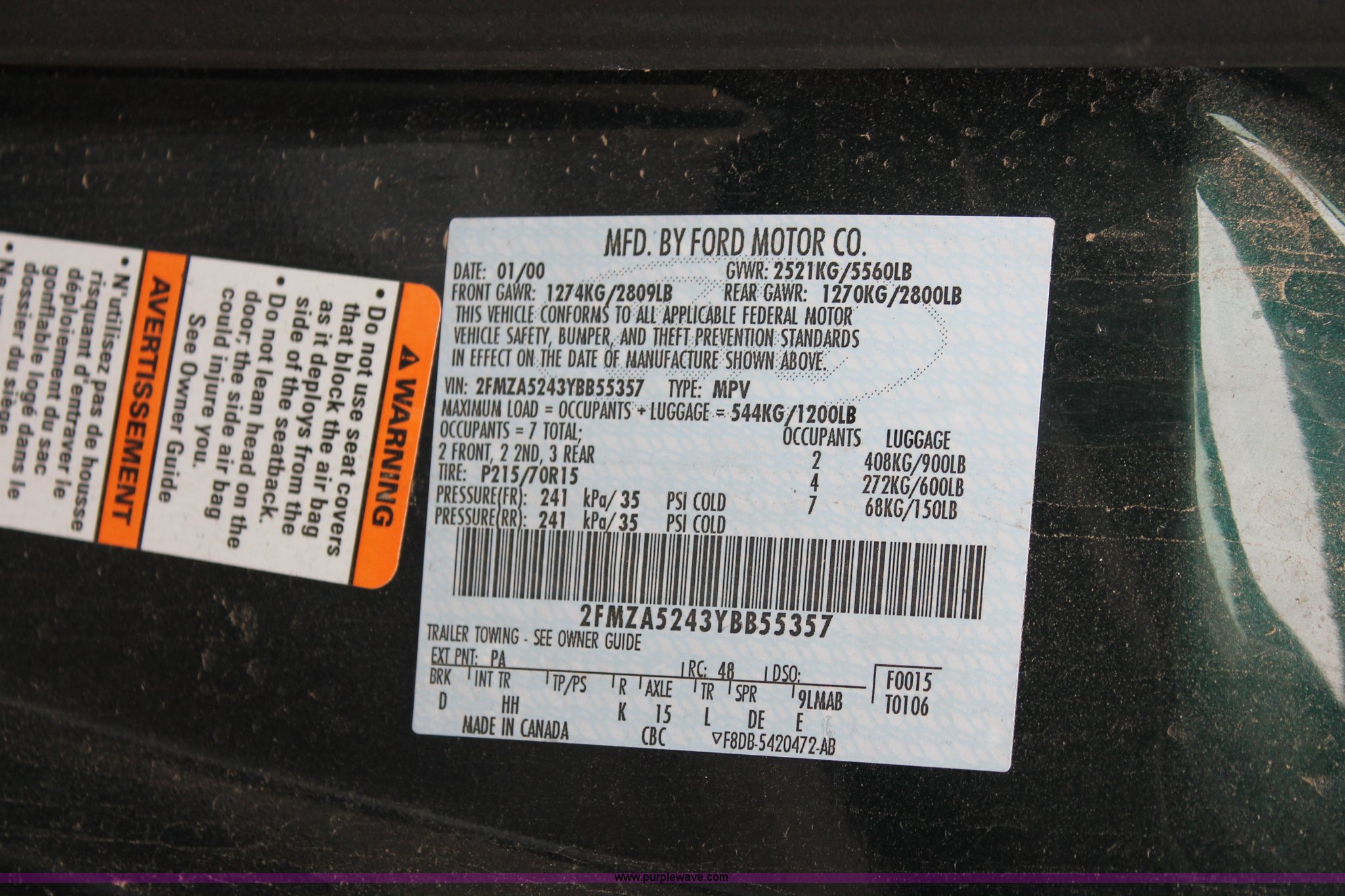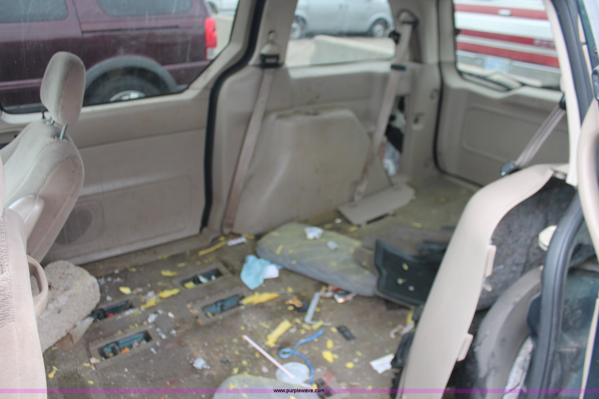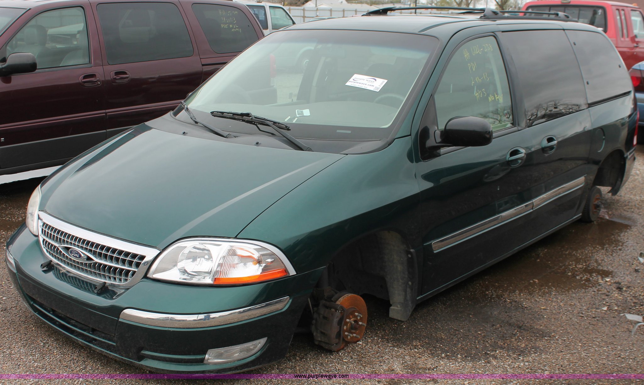 Purple Wave is selling a used Wrecked and Abandoned in Kansas. This item is a 2000 Ford Windstar SE van with the following: Unknown miles on odometer, 3.8L V6 OHV 12V gas engine, Automatic transmission, AM/FM/CD, Interior damage, Missing wheels and tires, Exterior body damage, No rear seats, Case# 13C502526