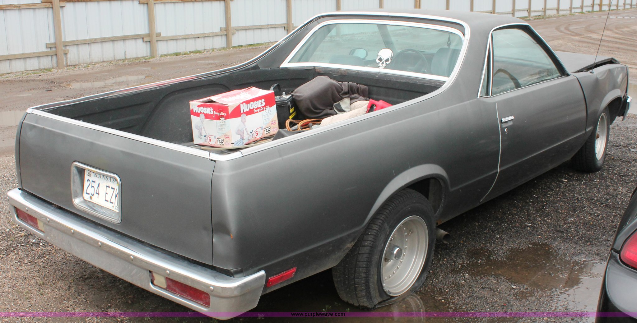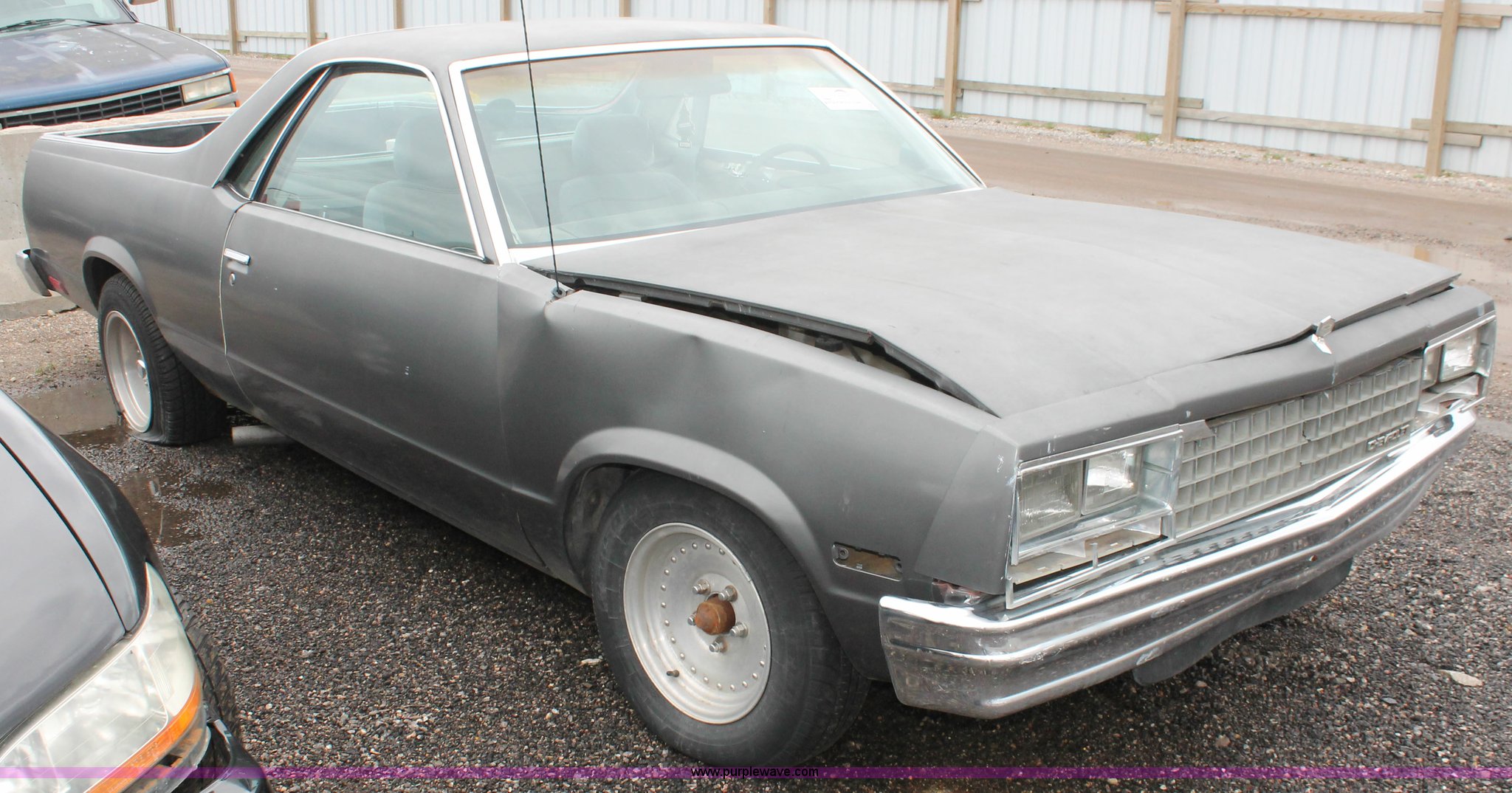 Purple Wave is selling a used Wrecked and Abandoned in Kansas. This item is a 1982 Chevrolet El Camino with the following: Mileage unknown, 4.4L V8 OHV gas engine, Automatic transmission, Keys, Aluminum wheels, P195/75R14 tires, Tire flat, Interior/exterior cosmetic damage, Case# 13C012684