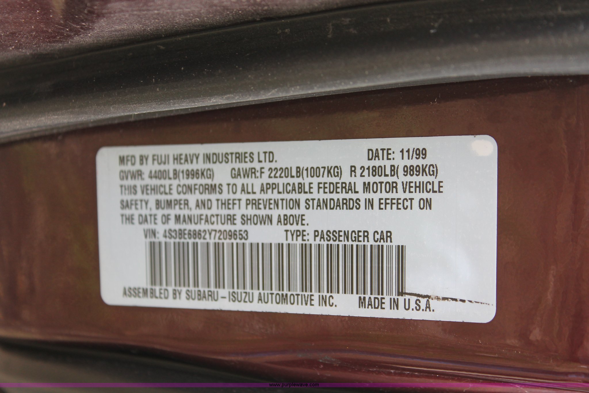 Purple Wave is selling a used Wrecked and Abandoned in Kansas. This item is a 2000 Subaru Outback Limited with the following: Mileage unknown, 2.5L H4 SOHC 16V gas engine, Automatic transmission, AM/FM/cassette, Power seats, Leather interior, Sunroof, Keys, P225/60R16 tires, Front end damage, Paint peeling, Case# 13C14799
