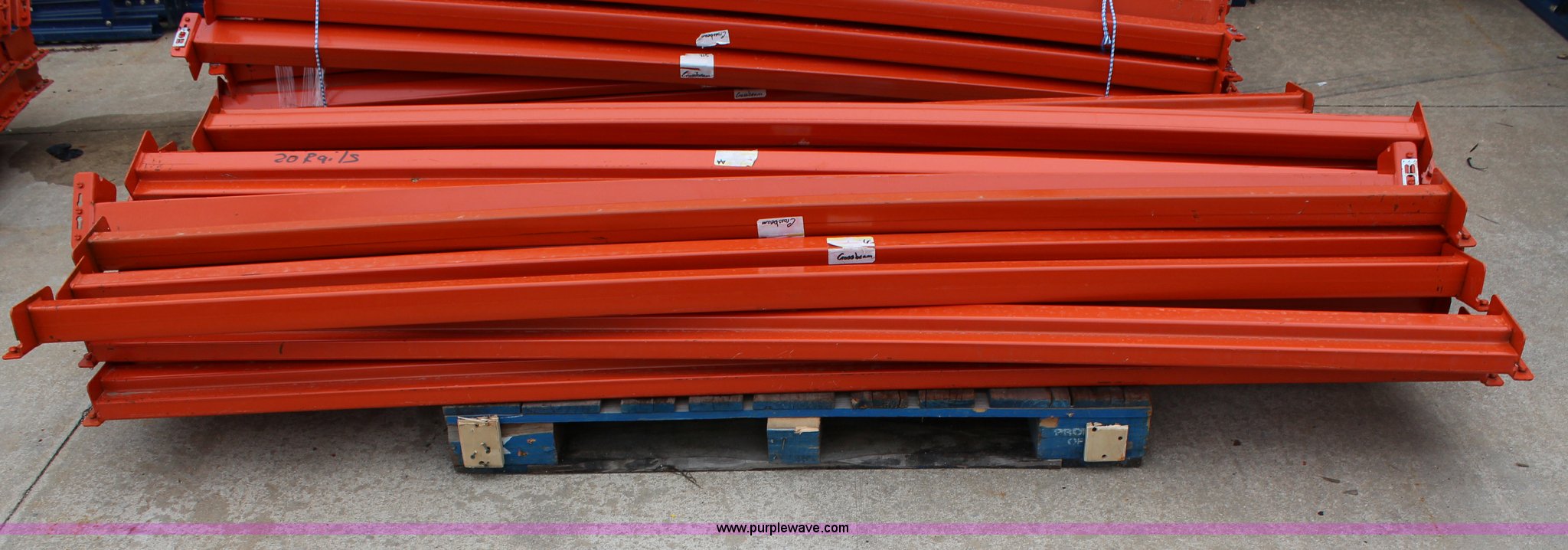 Purple Wave is selling a used Pallet Racking in Kansas. This item is a (20) 8'L pallet racking cross beams with the following: (20) 8'L pallet racking cross beams. Shipping quotes available. TAP Enterprises, Inc.. 650 N Lincoln St.. Spring Hill, KS 66083