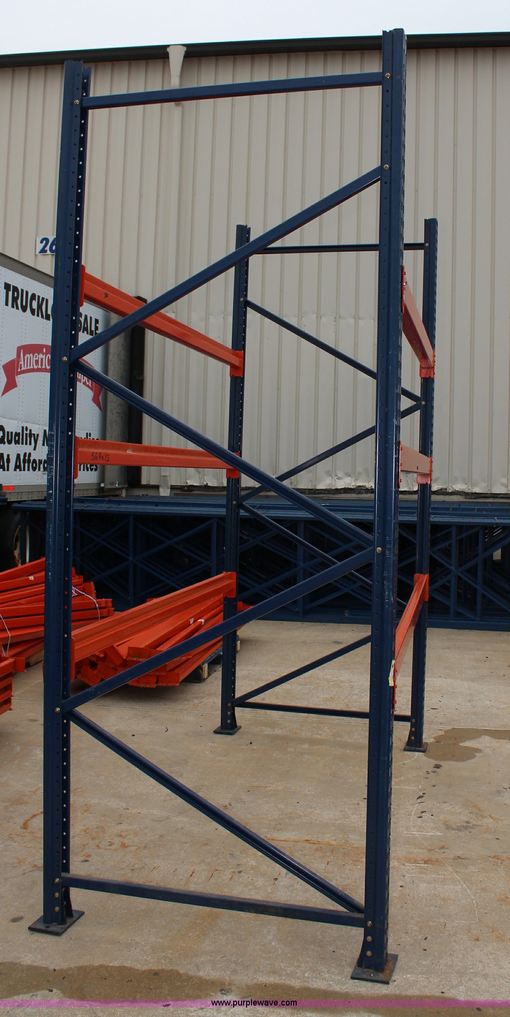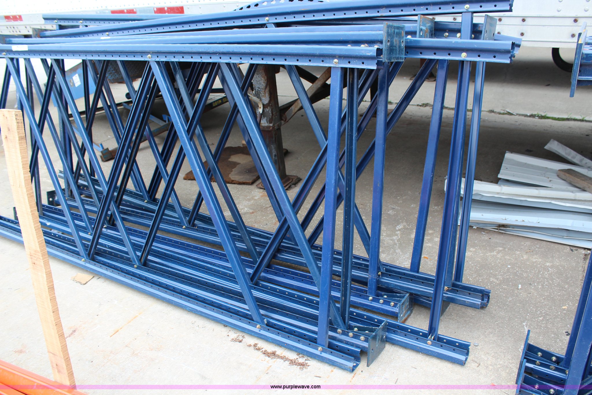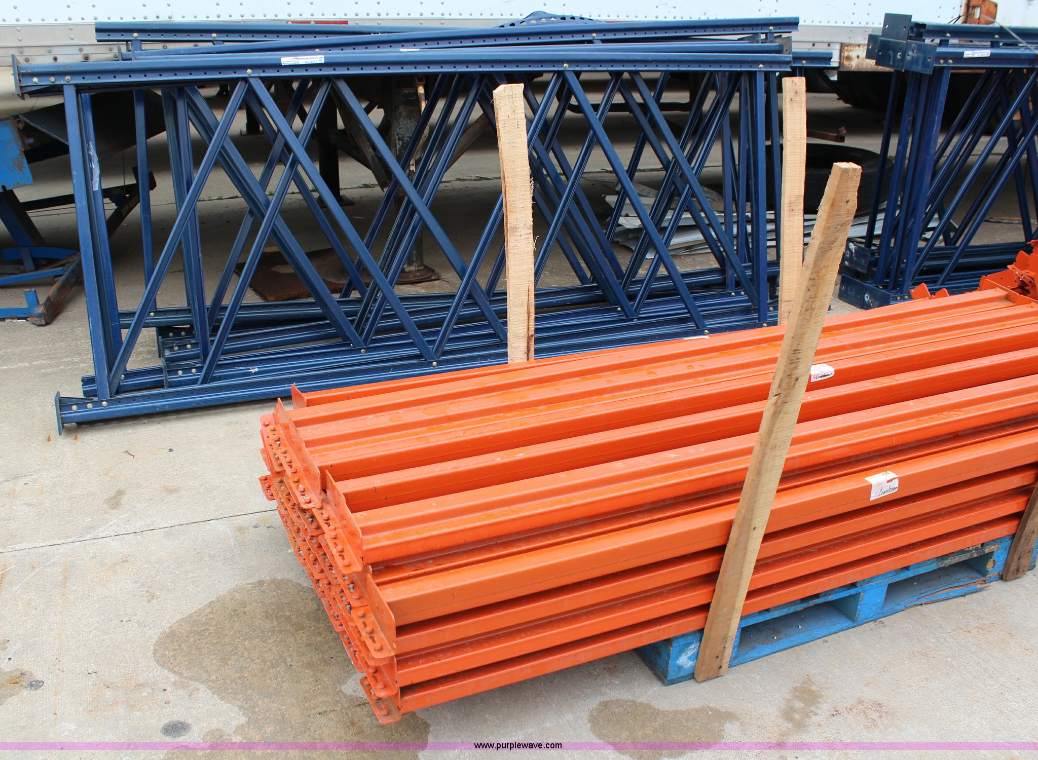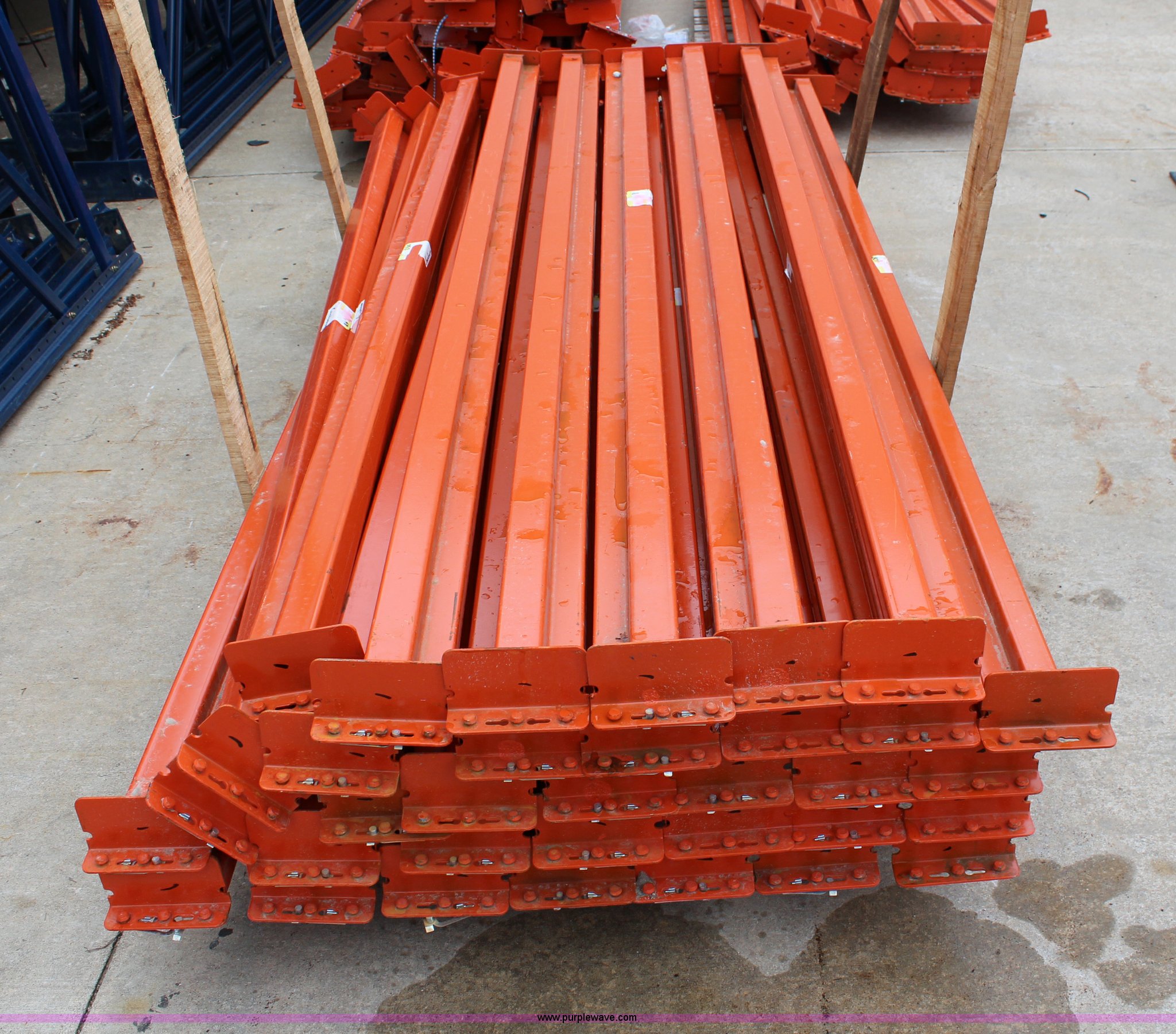 Purple Wave is selling a used Pallet Racking in Kansas. This item is a Pallet racking with the following: (8) uprights, 10' x 4', (40) cross beams, 8'L, Tear drop style