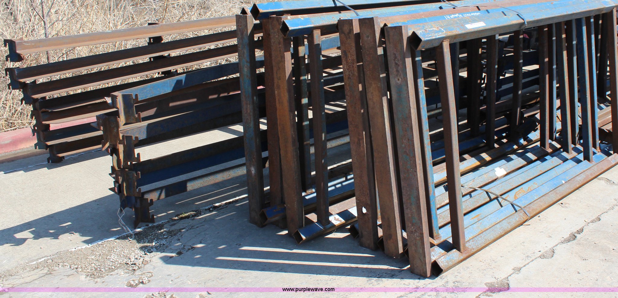 Purple Wave is selling a used Pallet Racking in Kansas. This item is a Drive in pallet racking with the following: (14) 19'H uprights, (14) 11'L cross members