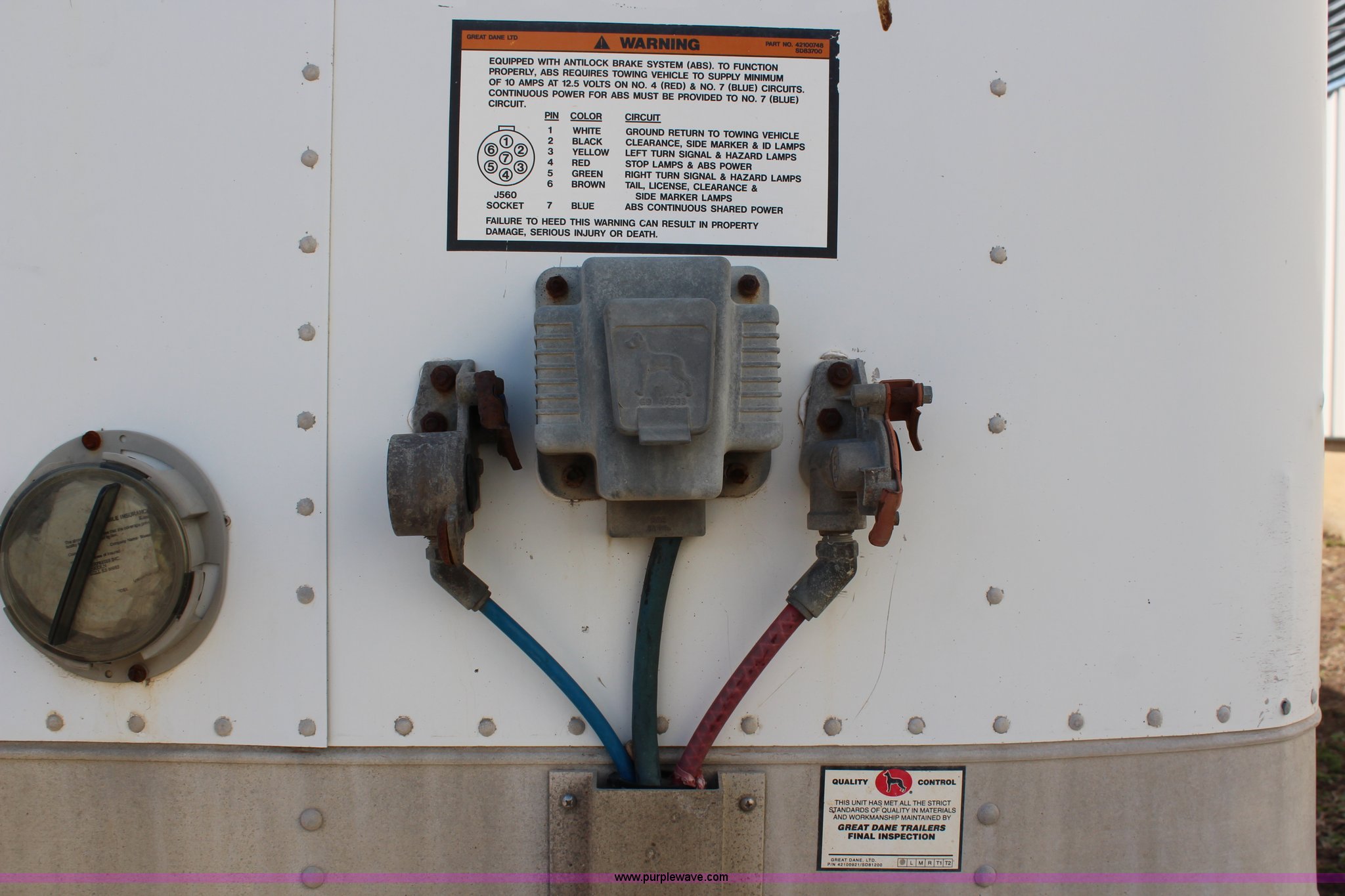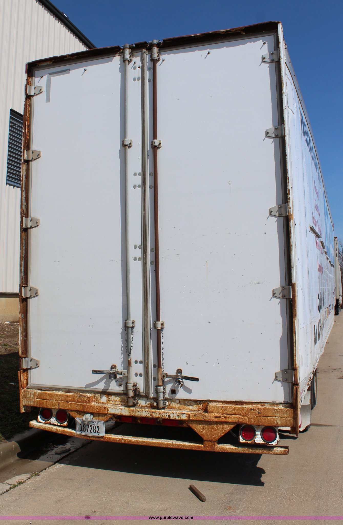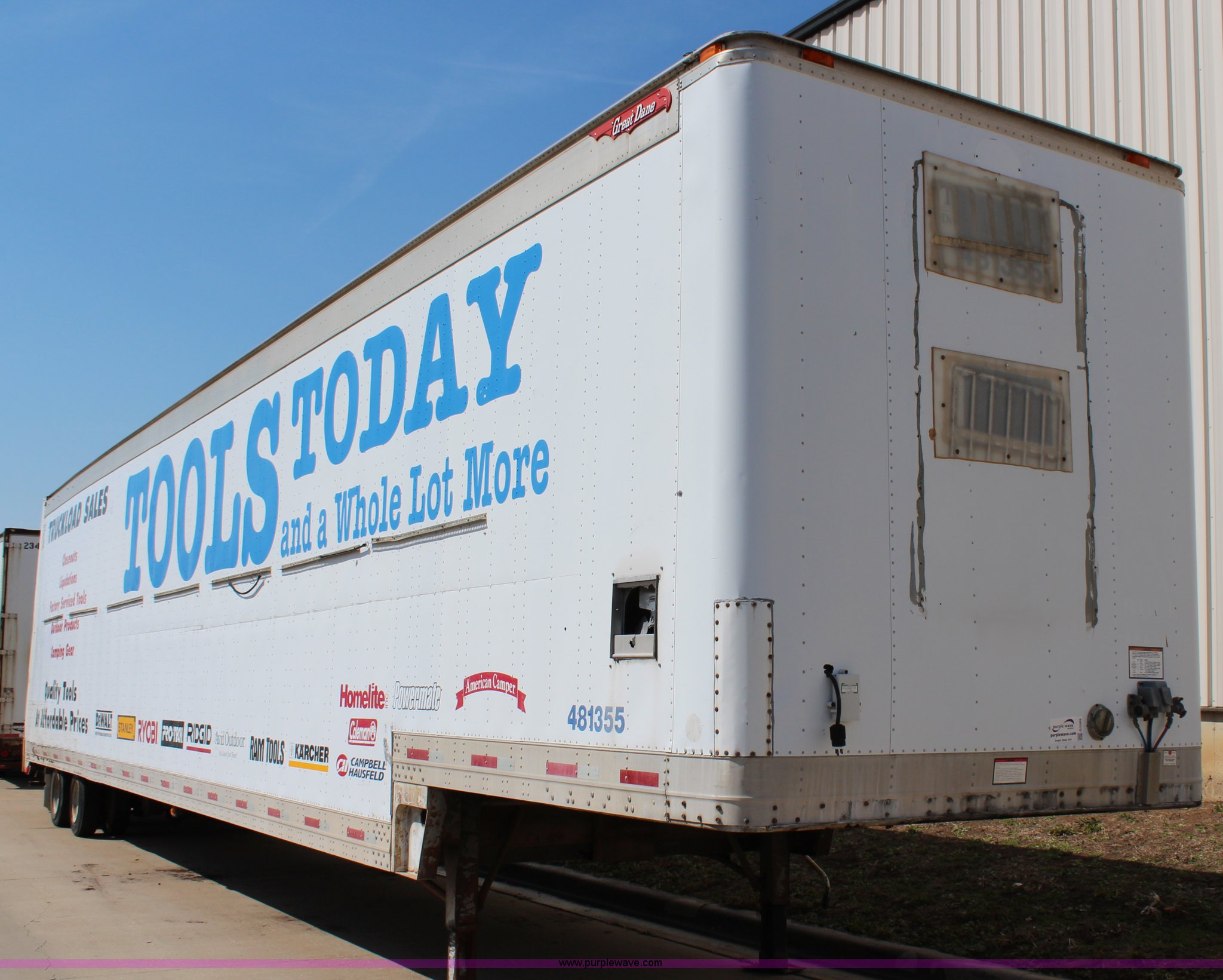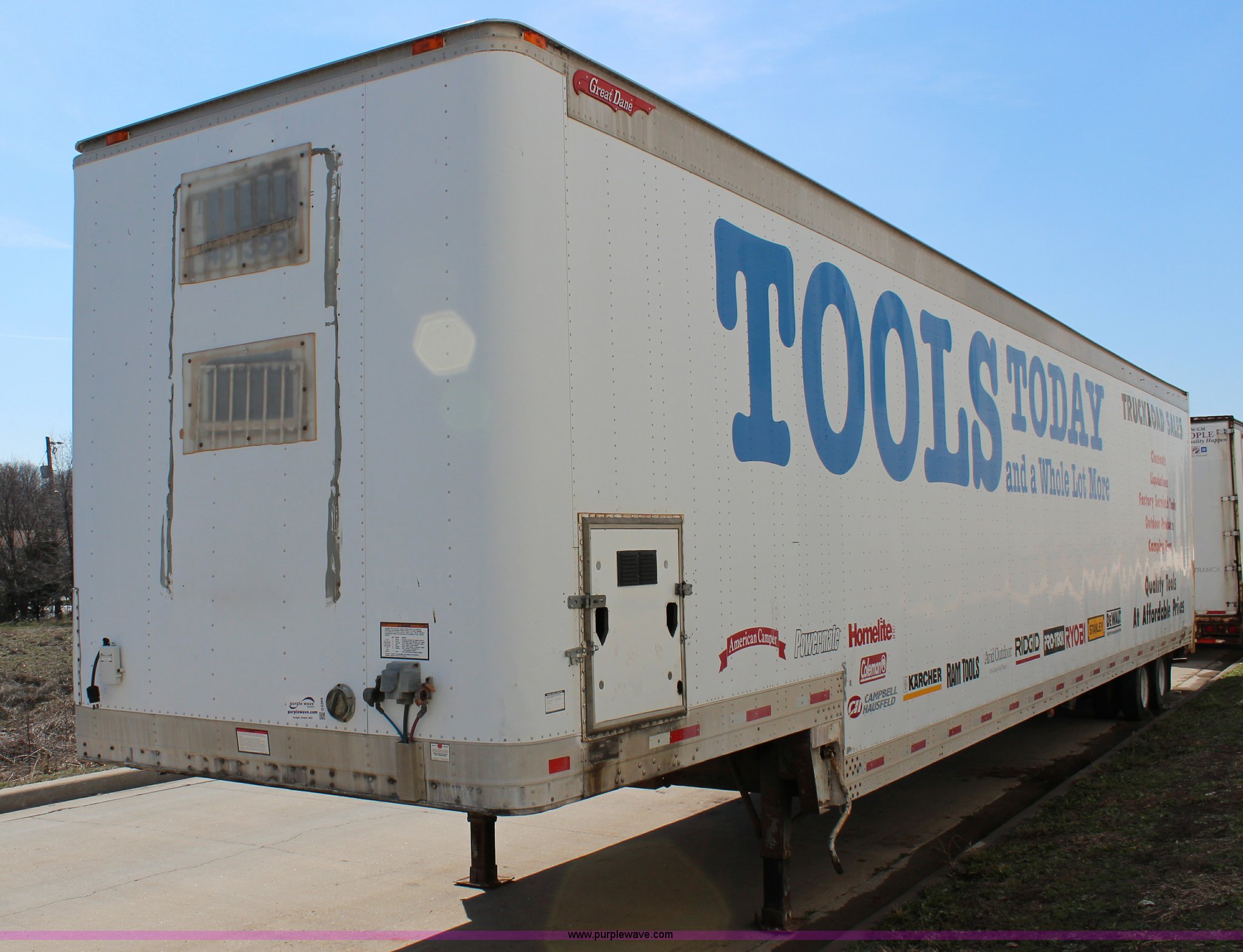 Purple Wave is selling a used Dry Van Trailer in Kansas. This item is a 1999 Great Dane drop van trailer with the following: Insulated walls and roof, Interior shelving and lighting, Swinging doors, Air suspension, Air brakes, 215/75R17.5 tires, GVWR 55,000 lbs, GAWR 18,160 lbs