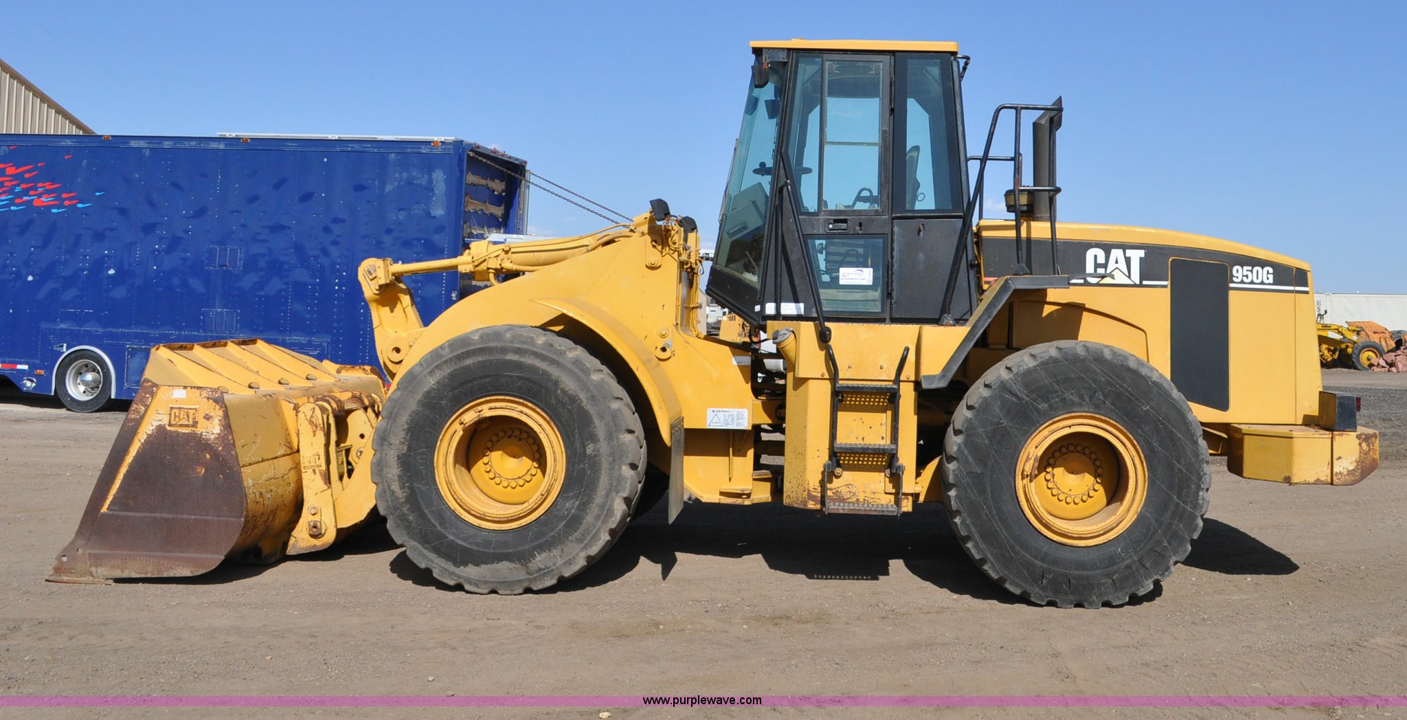 Purple Wave is selling a used Wheel Loader in Colorado. This item is a 1999 Caterpillar 950G wheel loader with the following: 8,314 actual hours, Caterpillar 3126T diesel engine, 180 HP, Autoshift four speed transmission, Ride control, AC and heat, Air suspension seat, Windshield wipers, Two stick loader control, 9.5'W bucket, Bolt on edge, Hydraulic quick coupler, 77 gallon fuel capacity, 23.5R25 tires, 39,200 lbs. base operating weight, Item G6018 Balderson forks fit this unit, Serial 5FW01061