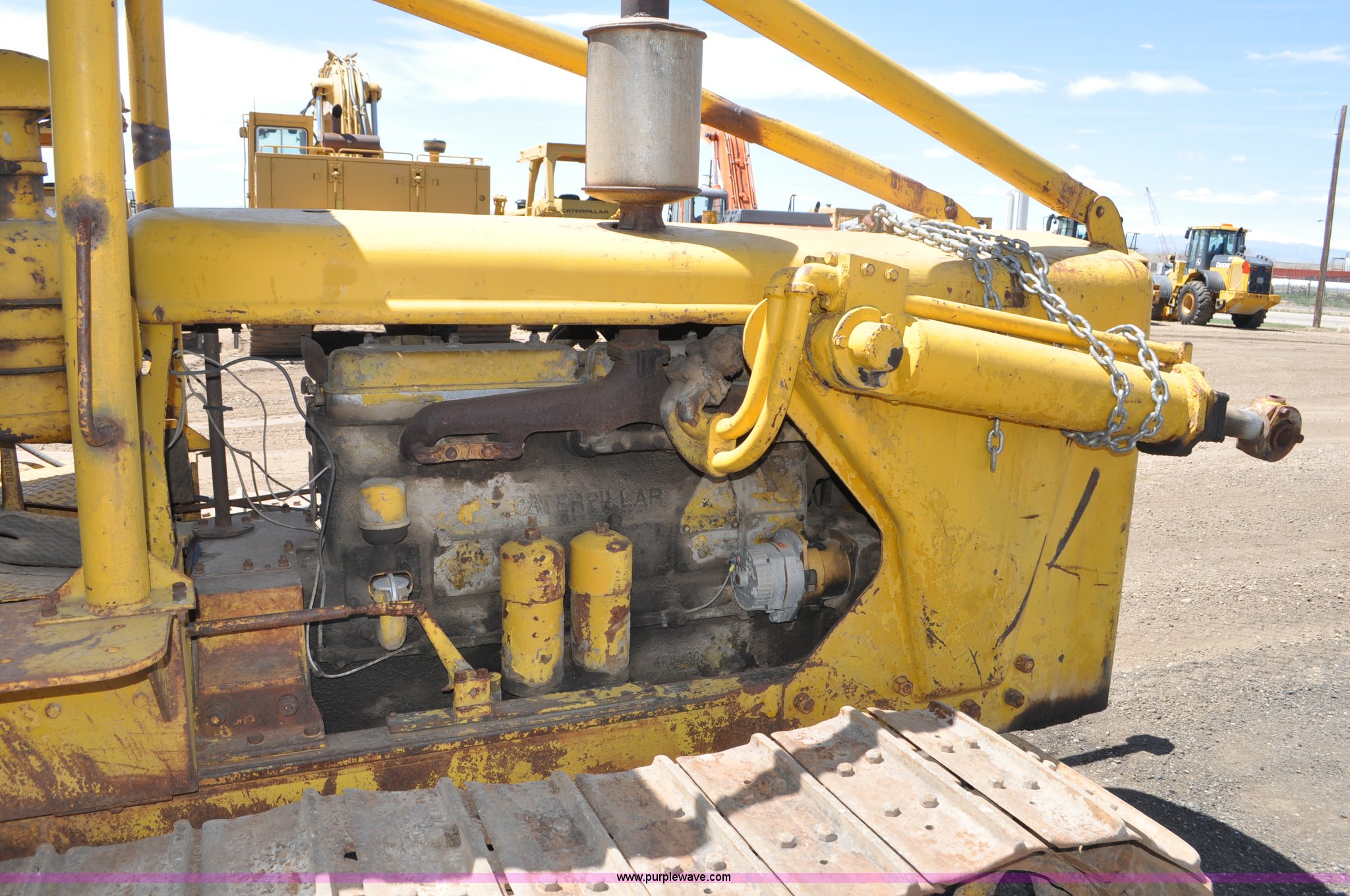 Purple Wave is selling a used Crawler Dozer in Colorado. This item is a 1951 Caterpillar D6 dozer with the following: 1,419 hours on meter, Caterpillar six cylinder diesel engine, Direct drive, 5F-4R gears, Canopy, Clutch brake, Rear draw bar, (6) bottom rollers, 18"W single grouser tracks, Serial 9U9542