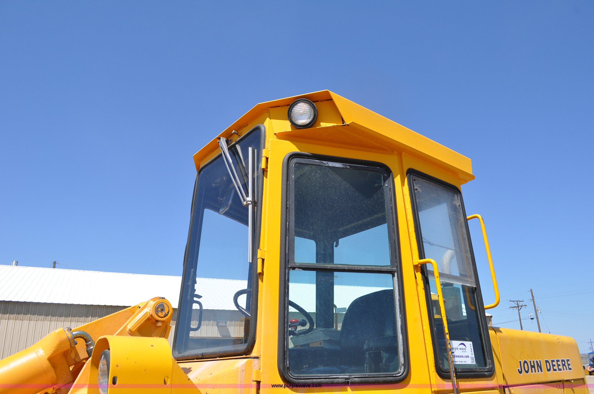 Purple Wave is selling a used Wheel Loader in Colorado. This item is a 1985 John Deere 544C wheel loader with the following: 7,765 hours on meter, John Deere 6414TD six cylinder turbo diesel engine, Serial TO6414T118472, Enclosed cab, Heat, Front and rear windshield wipers, Suspension seat, Work lights, GP 8' bucket, Bolt-on edge, Two yd. capacity, Rear counter weights, 19,475 lbs. base operating weight, Serial DW544CB506459