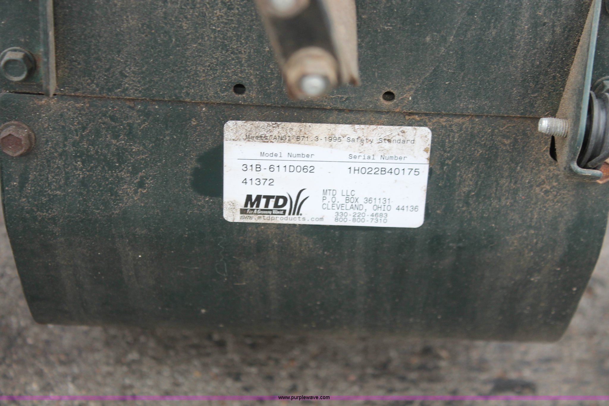 Purple Wave is selling a used Lawn and Garden in Kansas. This item is a MTD Yard Machines snow blower with the following: Model 31B-611D06241342, Tecumseh Snow King gas engine, 5 HP, 5F-2R gears, 22" clearing width, 12" impeller, Two stage, Manual rotating discharge chute, Serial 1H022B40175