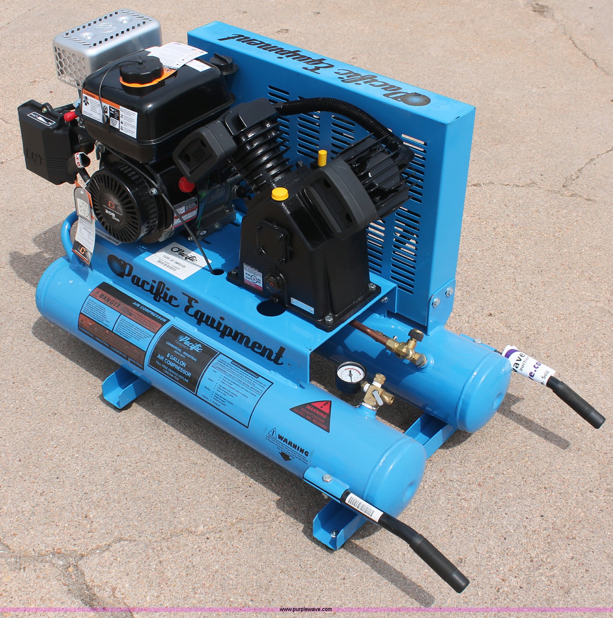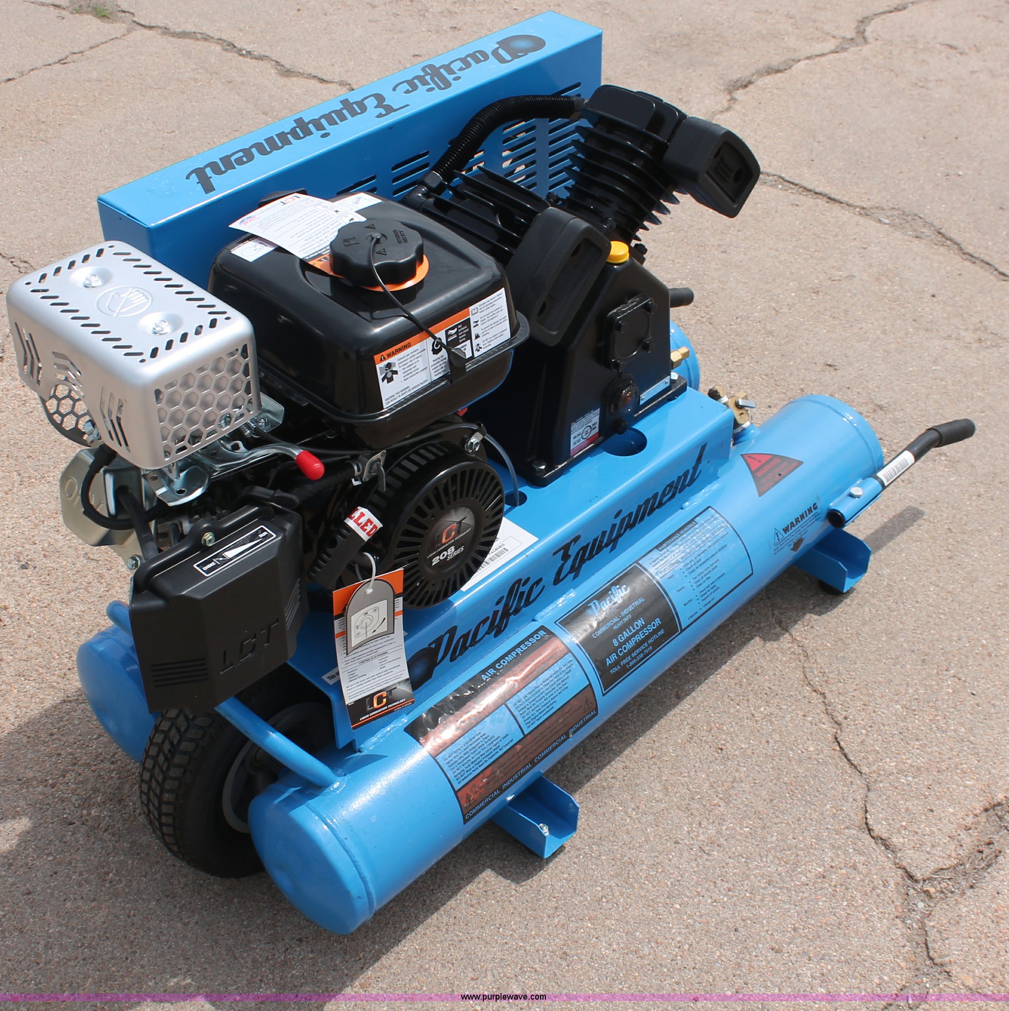 Purple Wave is selling a used Air Compressor in Kansas. This item is a Pacific PAC-2T eight gallon air compressor with the following: LCT 208 series gas engine, 125 psi, Unused, Serial PAC06066