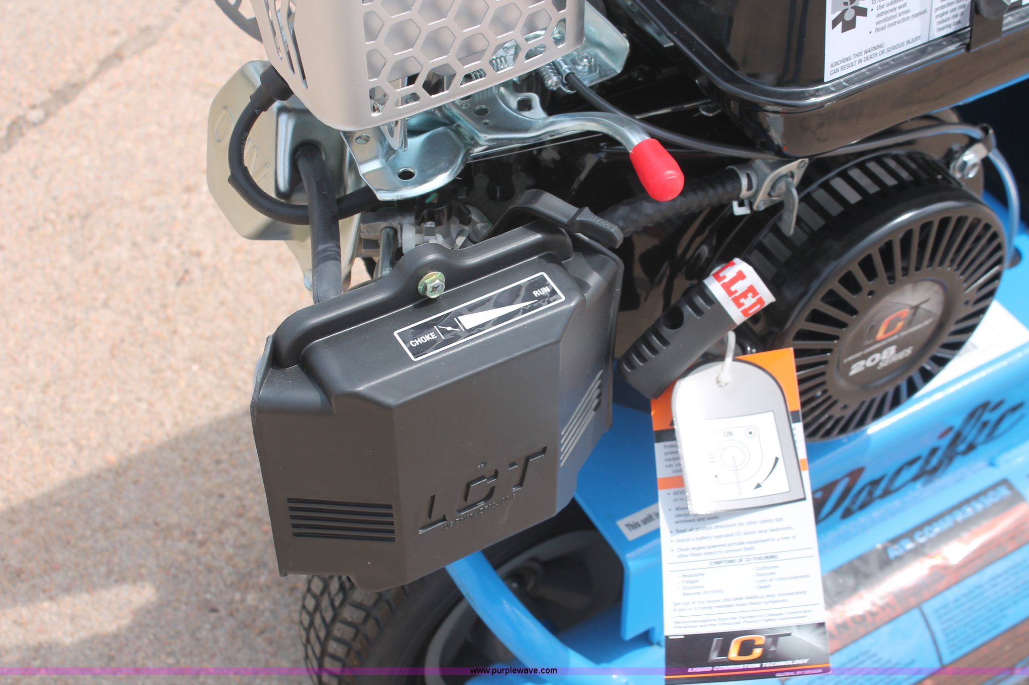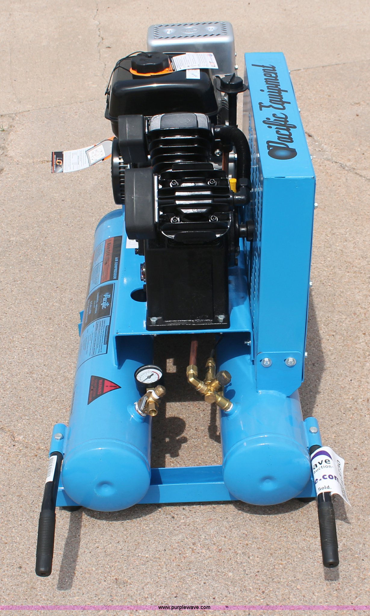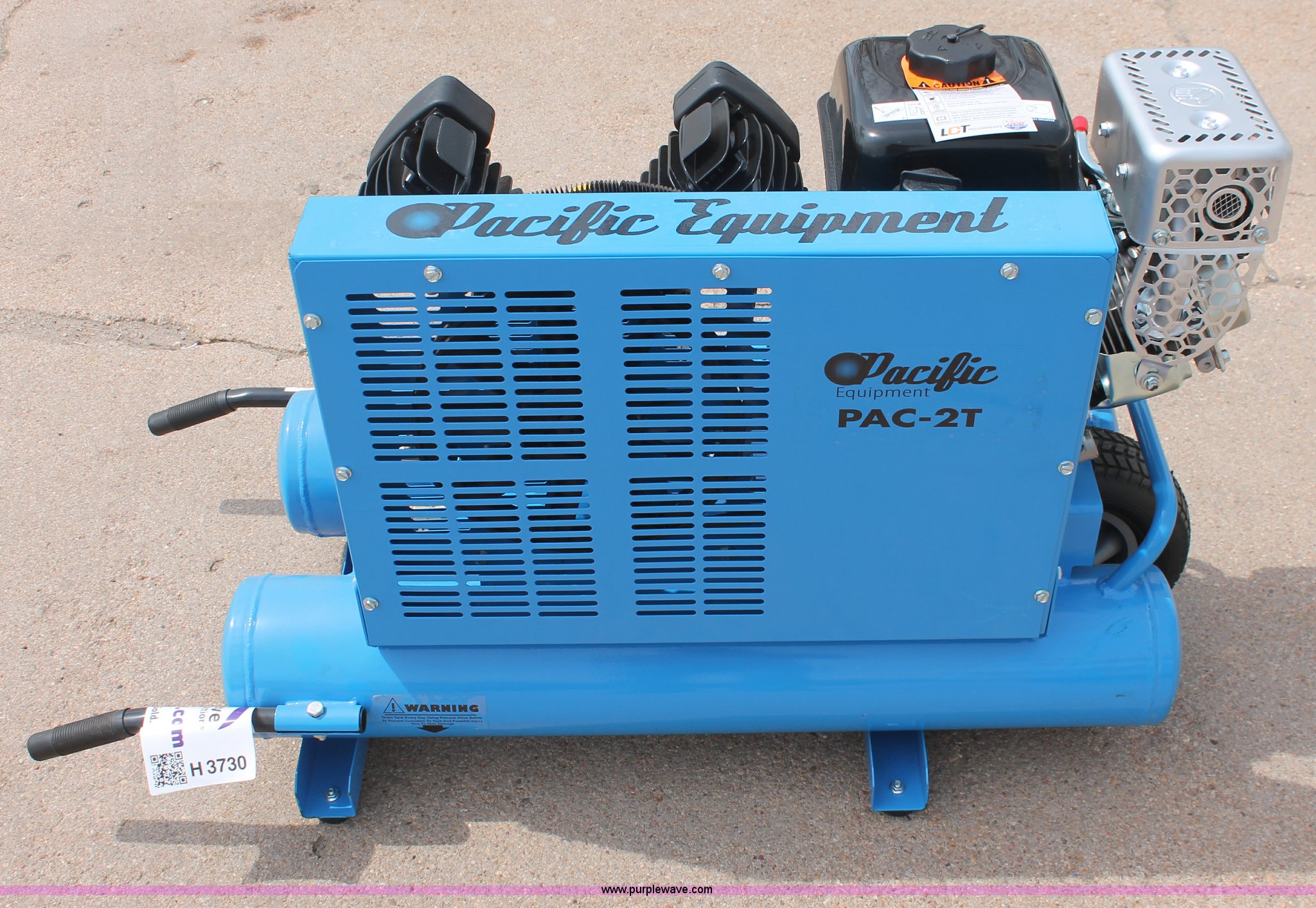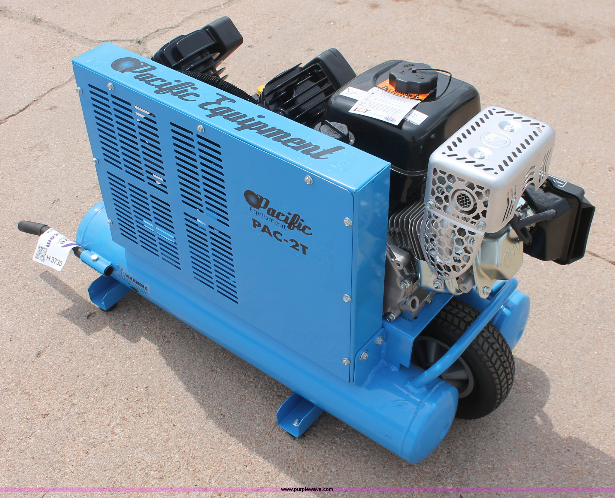 Pacific PAC-2T eight gallon air compressor. LCT 208 series gas engine, 125 psi, Unused, Serial PAC06066. Shipping quotes available. 139 S Kansas. Haven, KS 67543