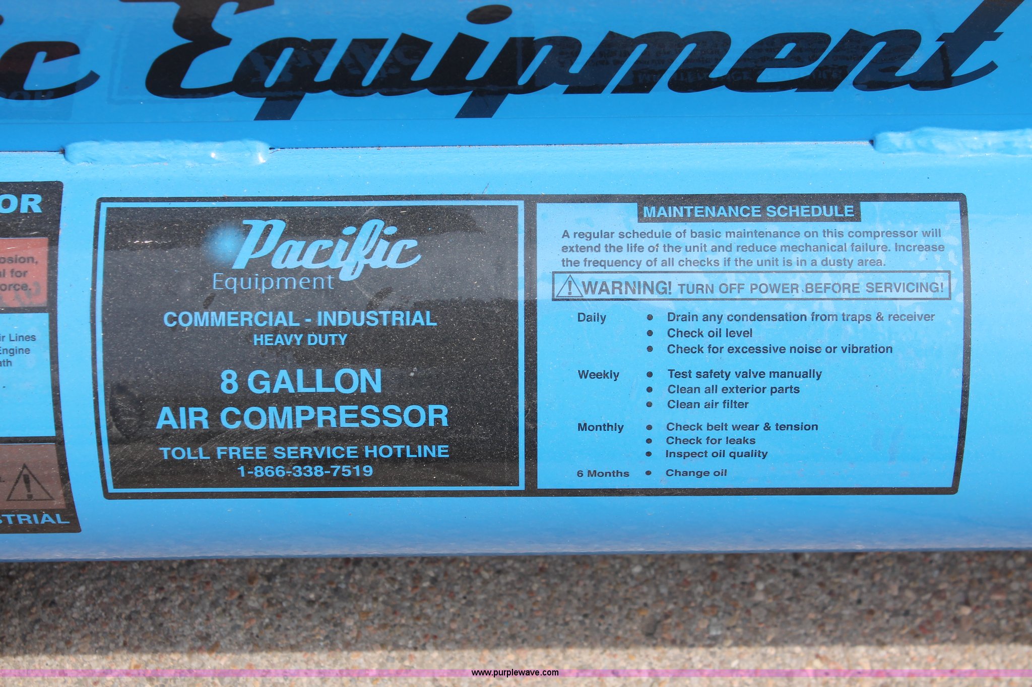 Pacific PAC-2T eight gallon air compressor has sold in Haven, Kansas for $660. Item H3730 sold on May 1st, 2013.