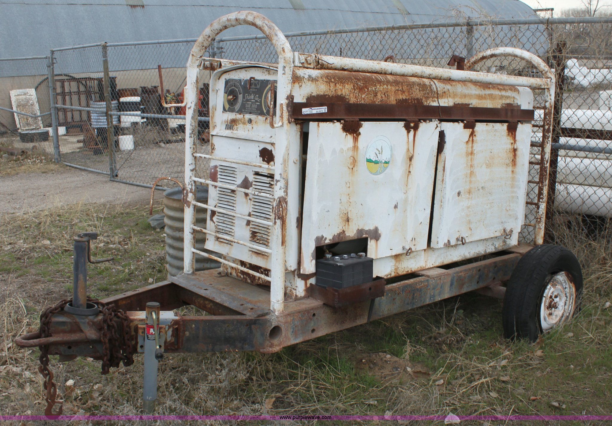 Purple Wave is selling a used Welder (Manual) in Kansas. This item is a Lincoln Electric SAE300 arc welder with the following: Six cylinder gas engine, 40V, Pintle hitch, 15" tires, Unit is inoperable, Serial A360127