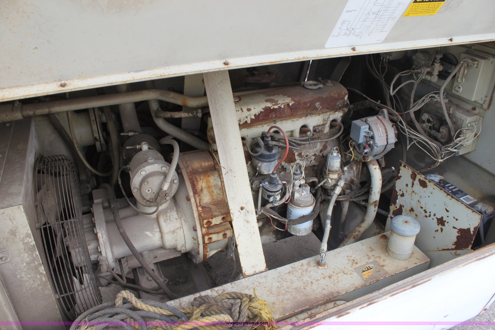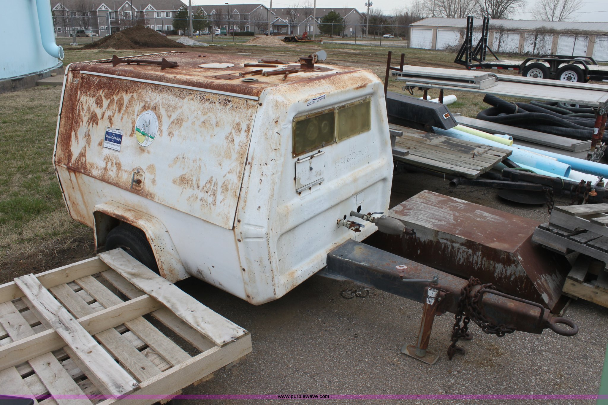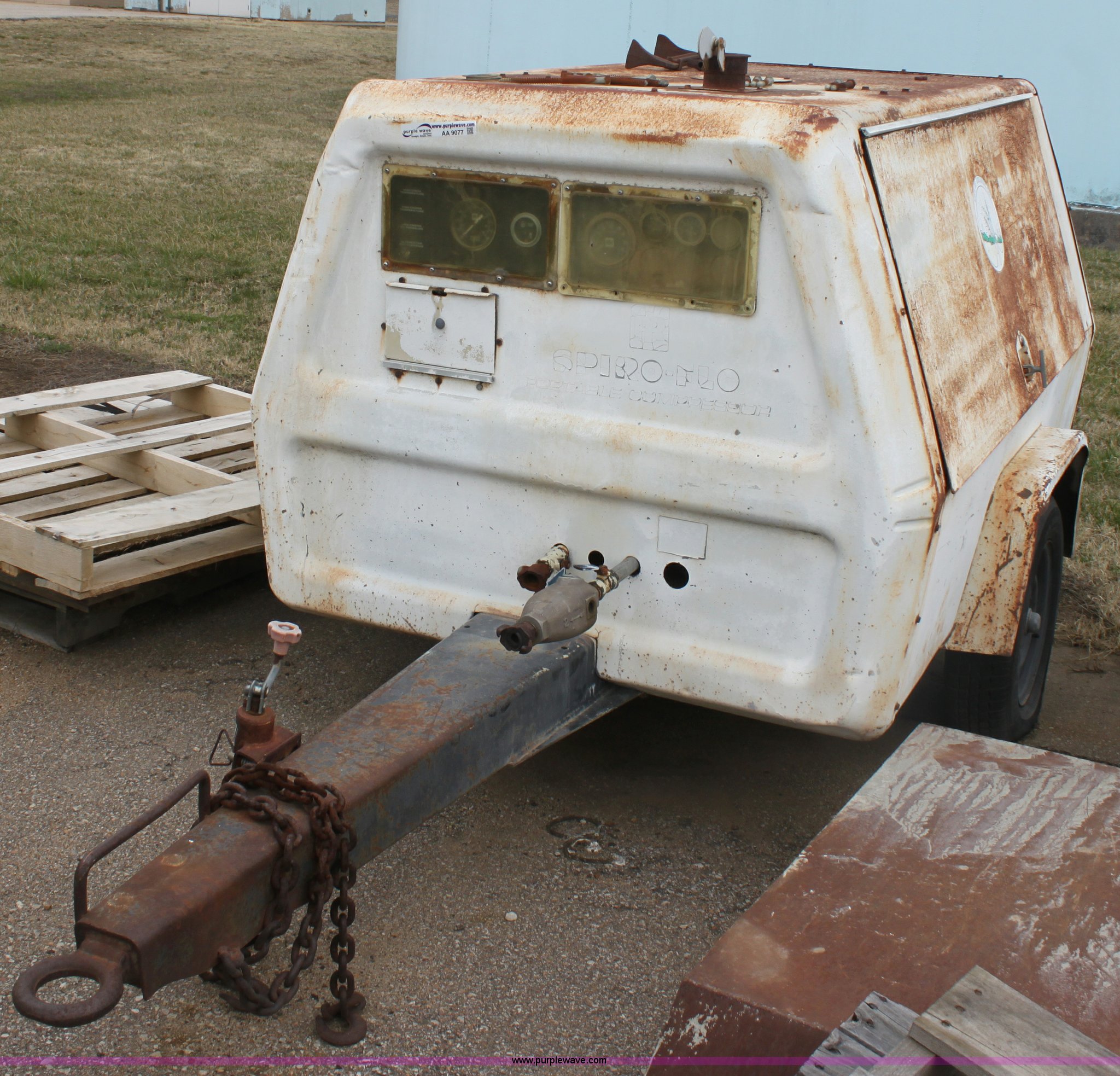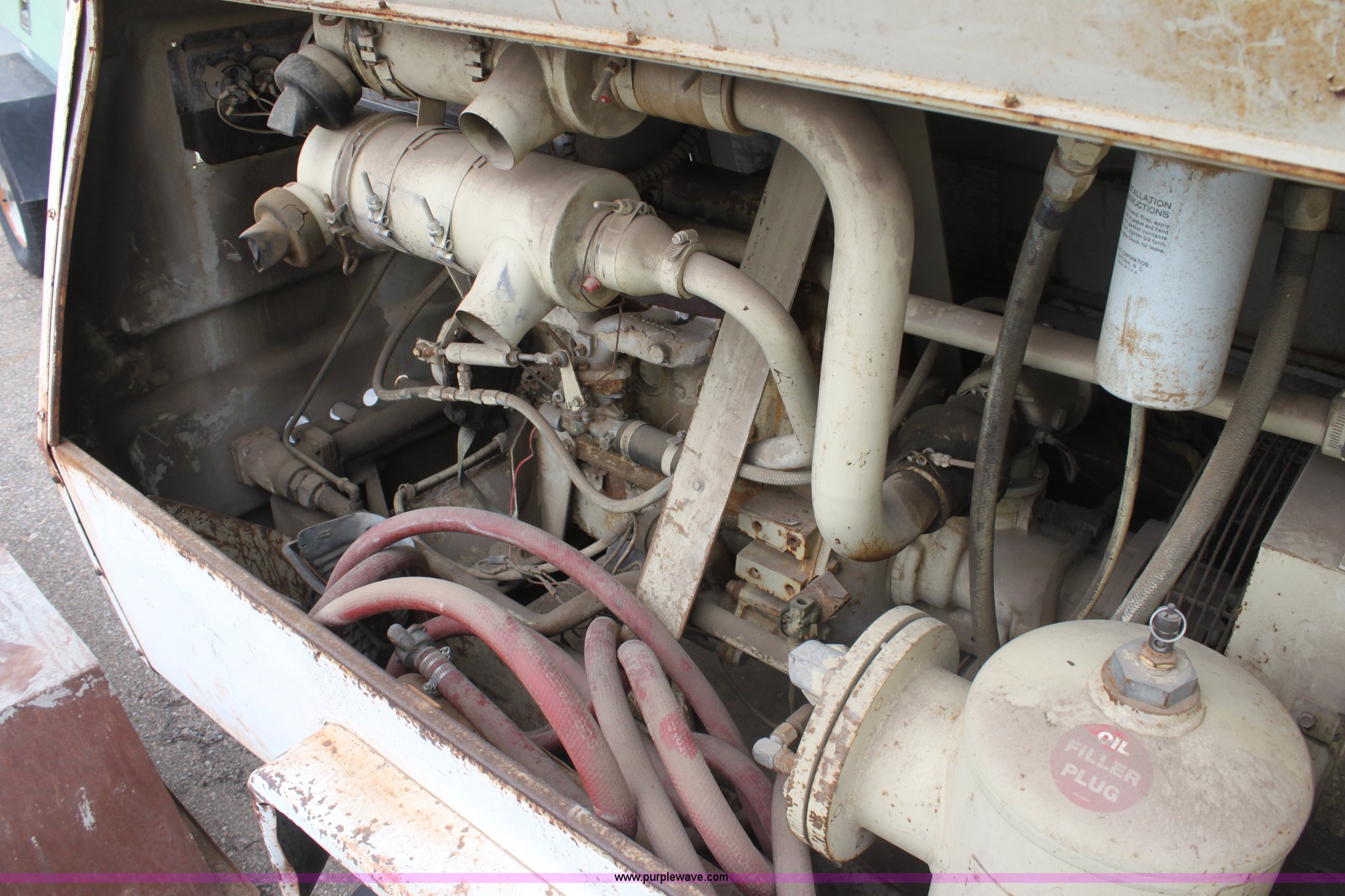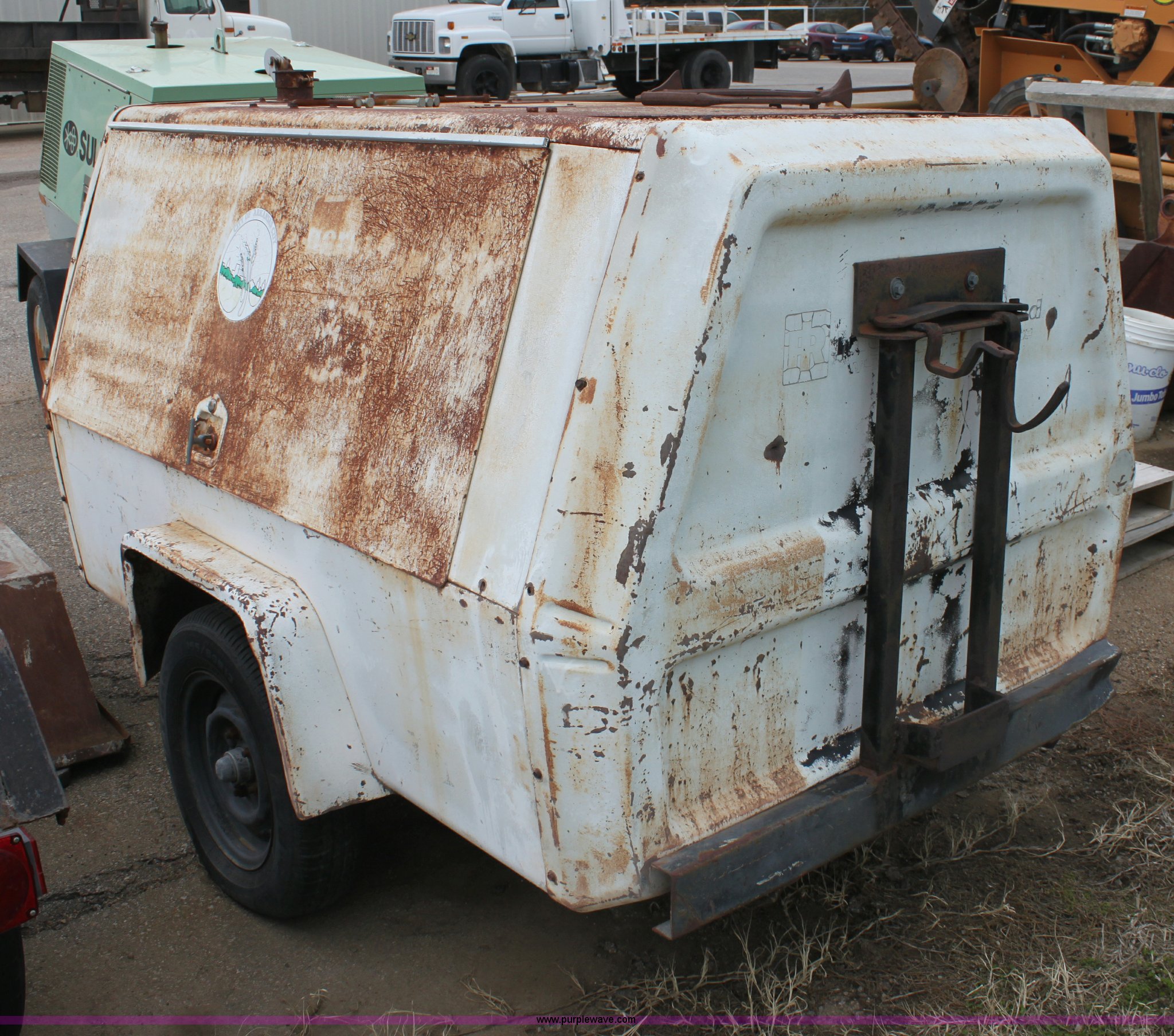 Purple Wave is selling a used Air Compressor in Kansas. This item is a Ingersoll Rand P-100A-WW air compressor with the following: White G1600X118 four cylinder gas engine, 100 CFM, Pintle hitch, 195/80R13 tires, Engine is inoperable