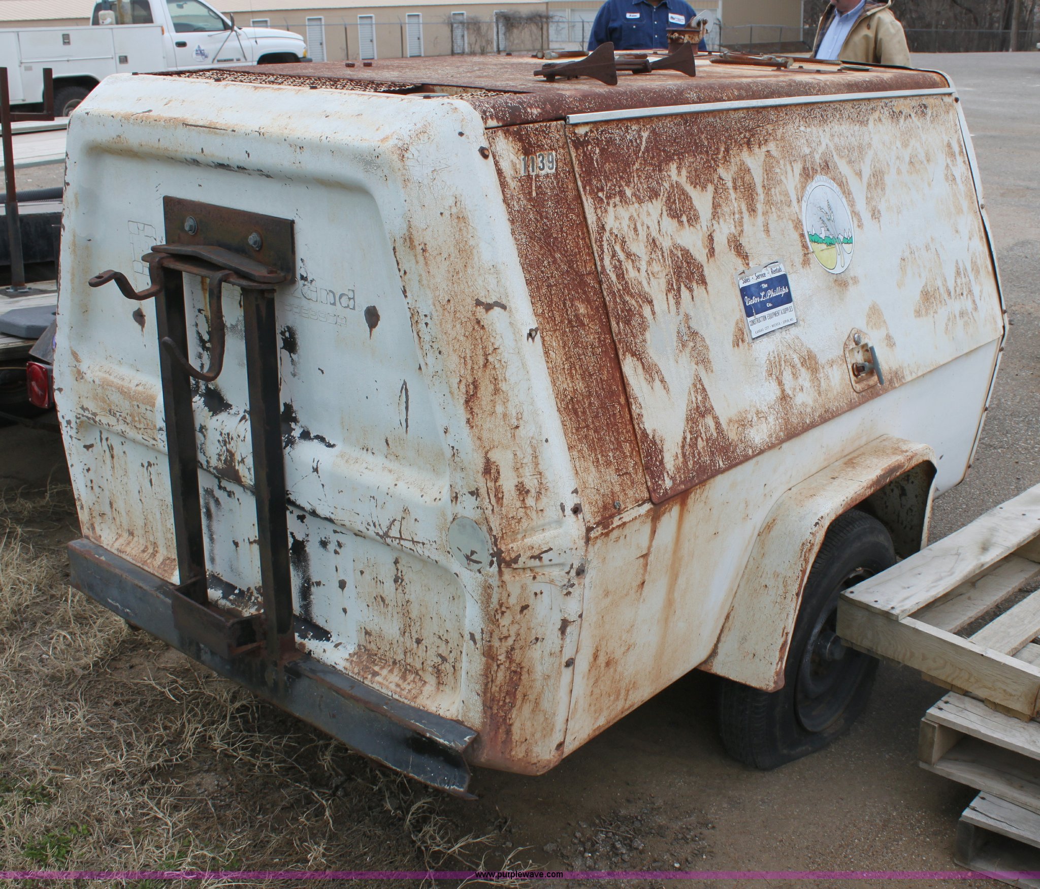 Ingersoll Rand P-100A-WW air compressor. White G1600X118 four cylinder gas engine, 100 CFM, Pintle hitch, 195/80R13 tires, Engine is inoperable. Shipping quotes available. City of Arkansas City. Arkansas City, KS 67005
