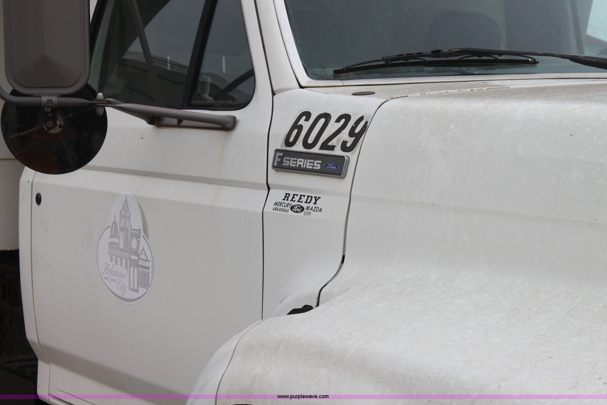 1996 Ford F800 dump truck. 64,729 miles on odometer, 4,440 hours on meter, Cummins 5.9L L6 diesel engine, Automatic transmission, Heil steel dump bed, Hydraulic brakes, 9.00-20 tires, Brakes leaking, Unit# 6029. 1FDNF80CXTVA07781. Shipping quotes available. City of Arkansas City. Arkansas City, KS 67005