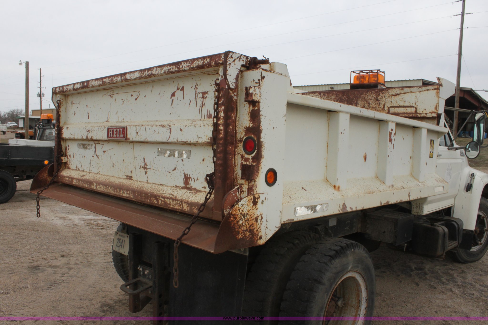 Purple Wave is selling a used Construction Dump Truck in Kansas. This item is a 1996 Ford F800 dump truck with the following: 64,729 miles on odometer, 4,440 hours on meter, Cummins 5.9L L6 diesel engine, Automatic transmission, Heil steel dump bed, Hydraulic brakes, 9.00-20 tires, Brakes leaking, Unit# 6029